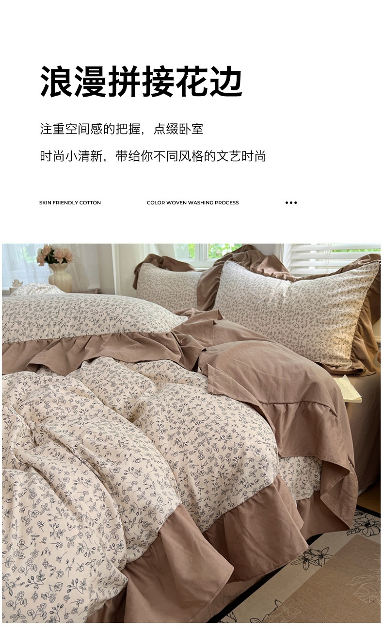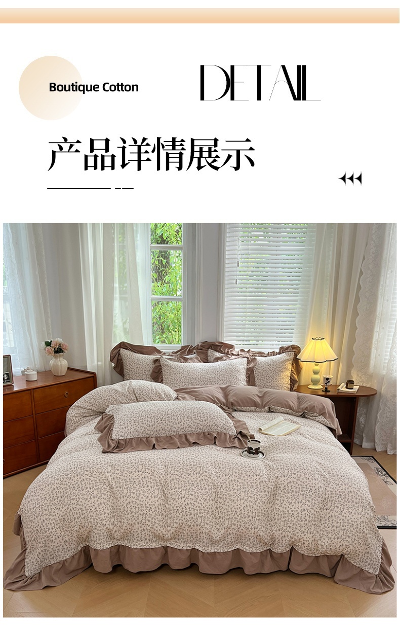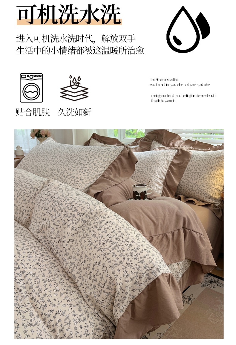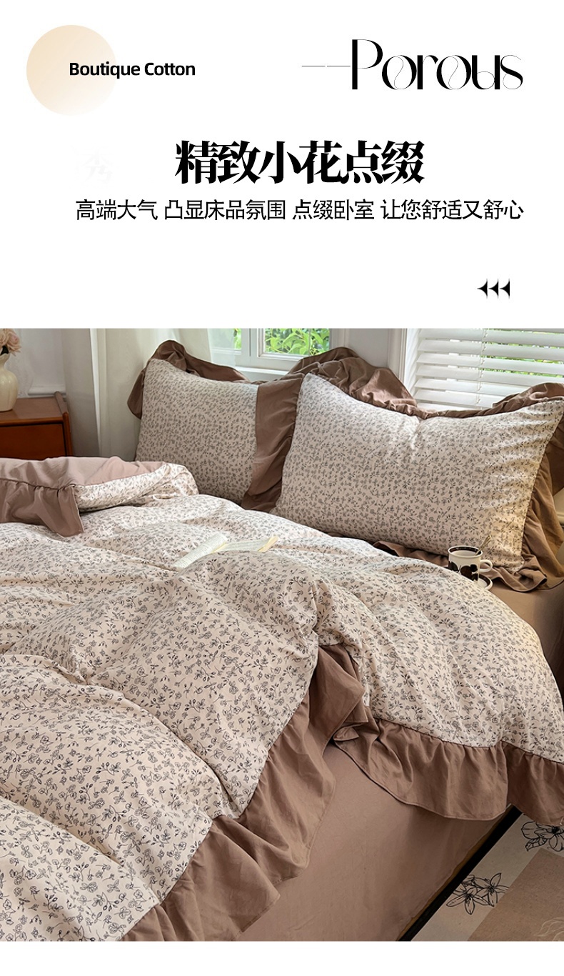 商品名称:梦舒羽 2025新款水洗珍珠棉花边四件套学生宿舍套件复古风四件套 柏林梦境-咖