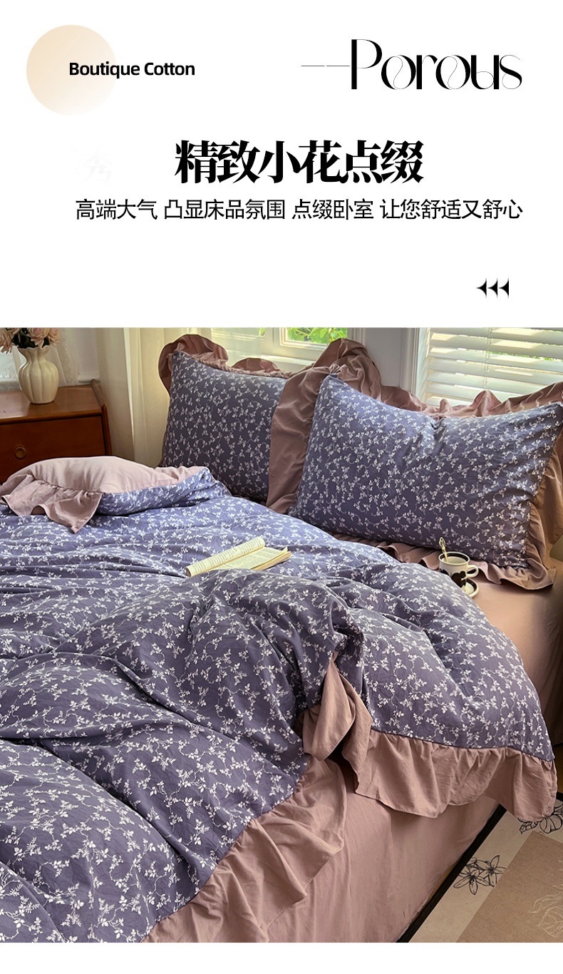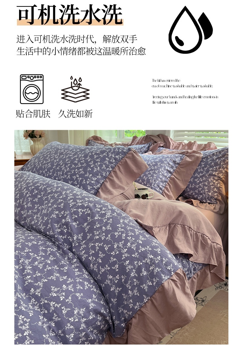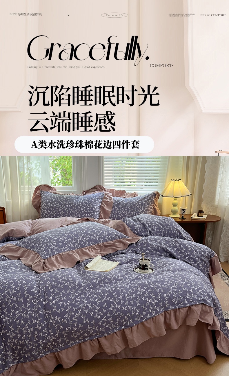 商品名称:梦舒羽 2025新款水洗珍珠棉花边四件套学生宿舍套件复古风四件套 紫藤花语