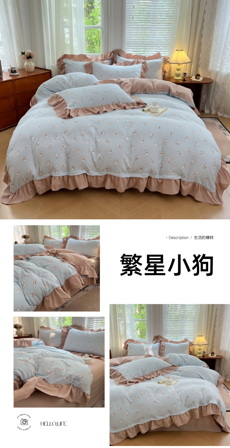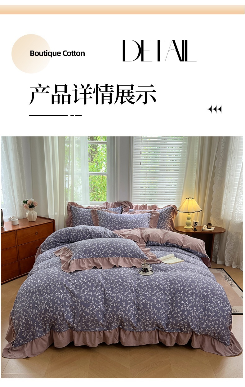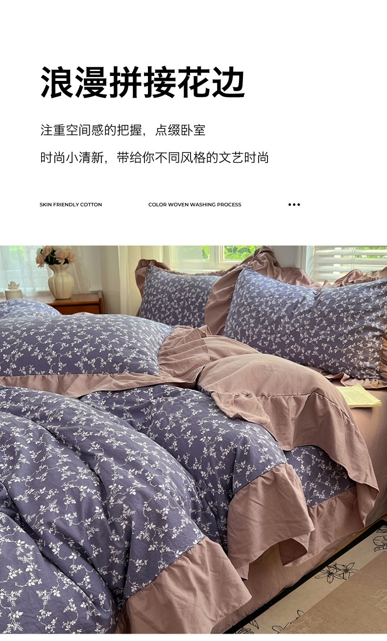 商品名称:梦舒羽 2025新款水洗珍珠棉花边四件套学生宿舍套件复古风四件套 紫藤花语