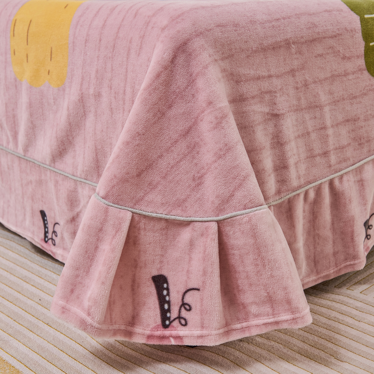 尚品凤凰2025新款高克重印花牛奶绒四件套-工艺款 南瓜-粉