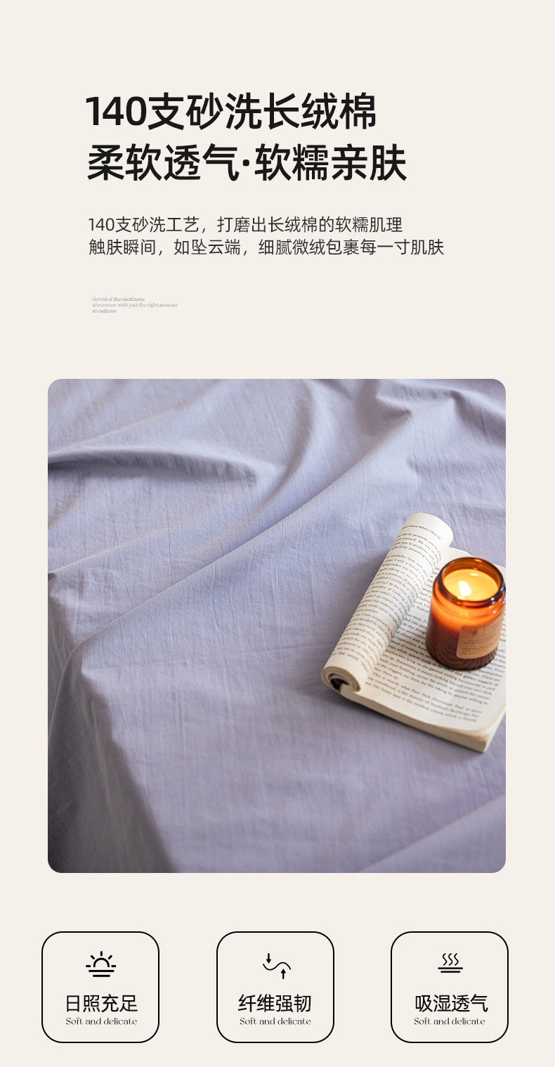 (总)轩和家居 2025新款全棉高支旧感砂洗长绒棉单被套,组合,薄樱粉,淡黄色,豆沙色,霁兰色,落栗棕,墨染灰,暮烟灰,浅云白,青绿色,秋麦色,松石绿,天空蓝,雾海蓝,细雨灰