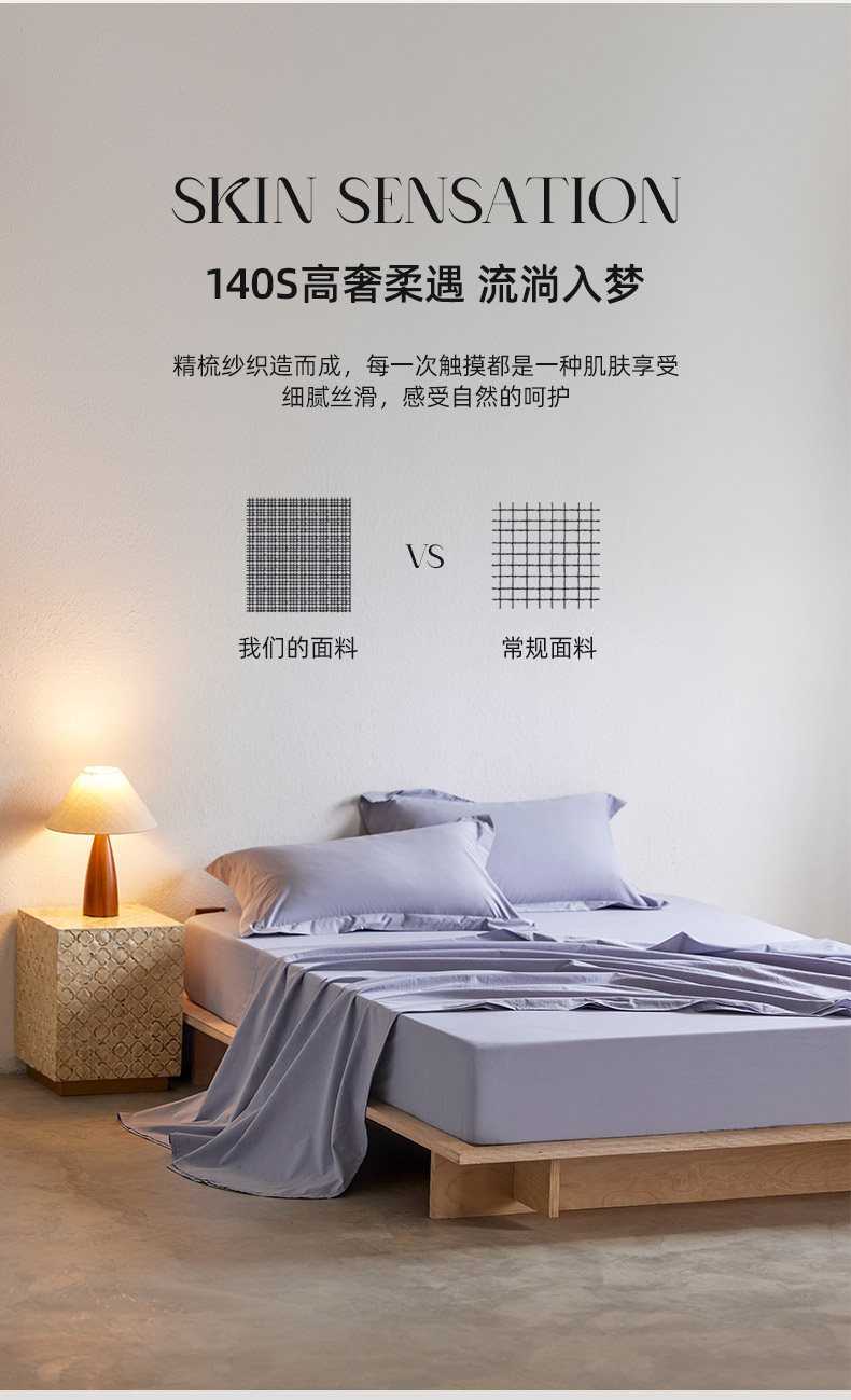 • 91家纺网 家纺一手货源 找家纺 轩和家居 2025新款70S砂洗长绒棉单床笠 云水
