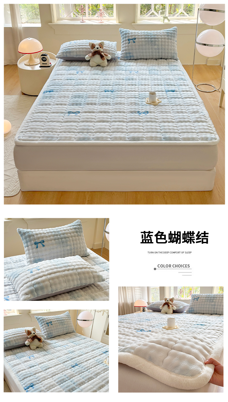 当前位置: 91家纺网 > 商品网购 > 床垫/床褥 > 普通床垫 > 2025新款印花泡泡兔毛绒床垫学生宿舍床褥软垫 蓝色蝴蝶结