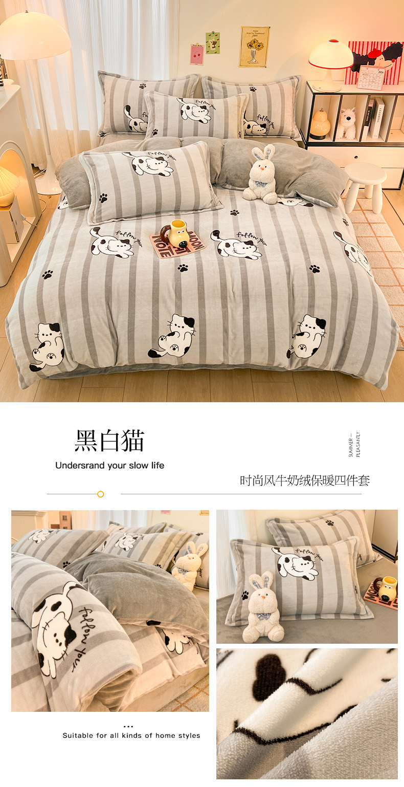 当前位置: 91家纺网 > 商品网购 > 床品套件 > 四件套 > 牛奶绒四件套 > 倾慕 2026新款高克重时尚印花牛奶绒系列 黑白猫