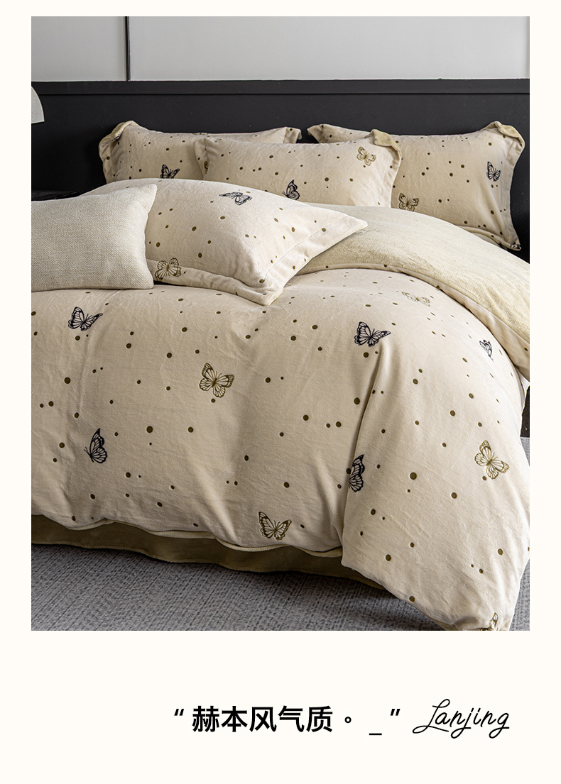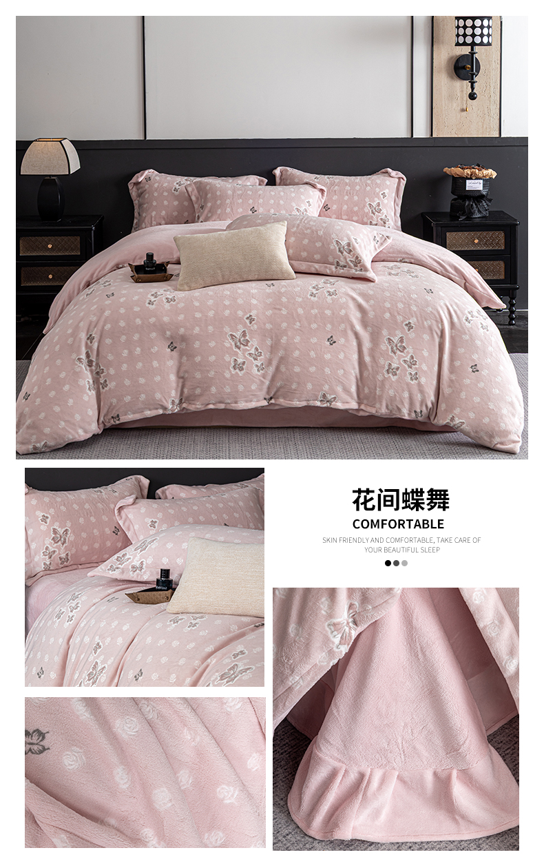 (总)罗优家纺 2025新款柔暖皱幔款暖绒四件套,浅粉,浅灰,浅蓝,浅杏