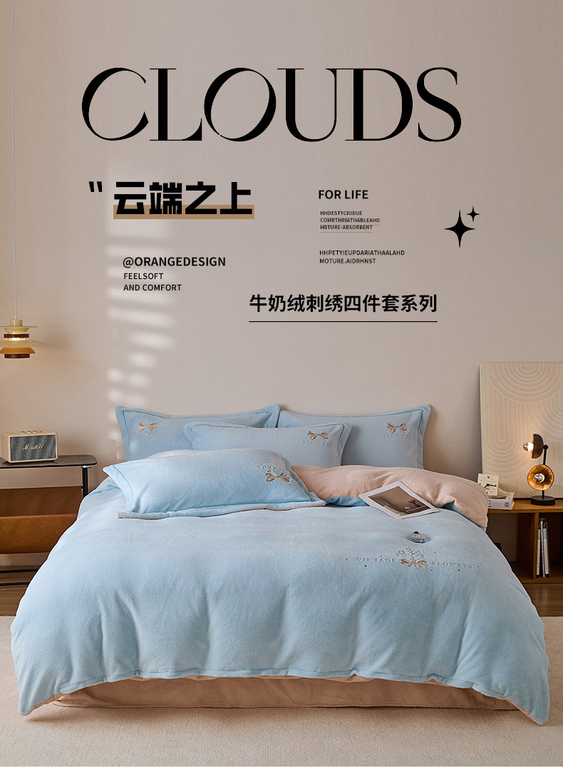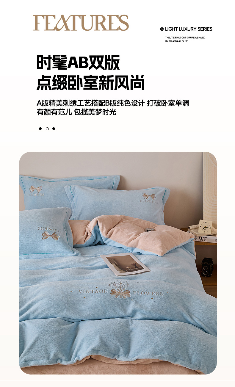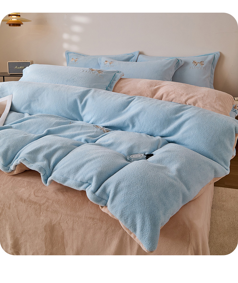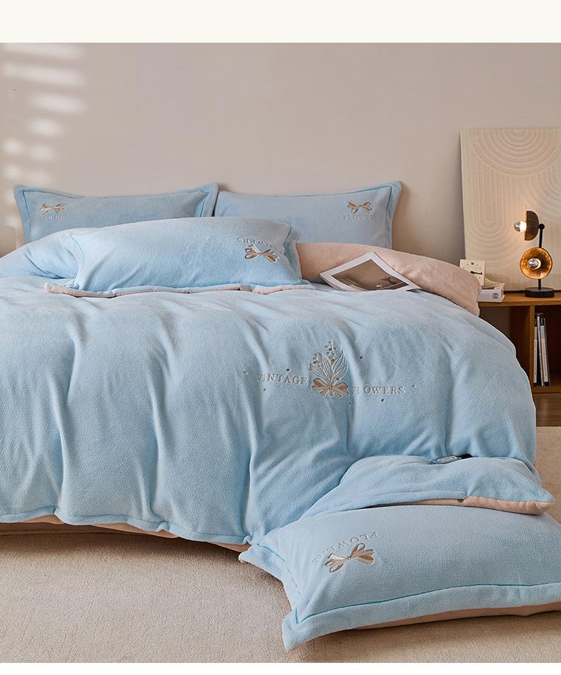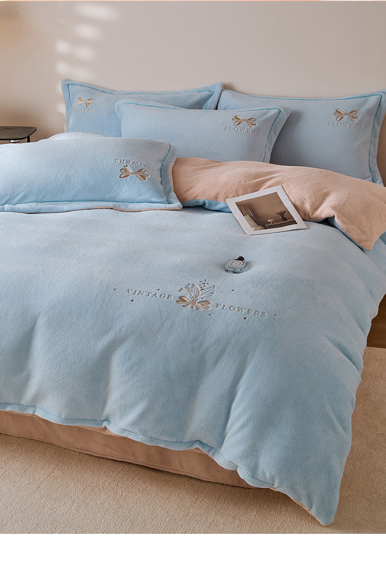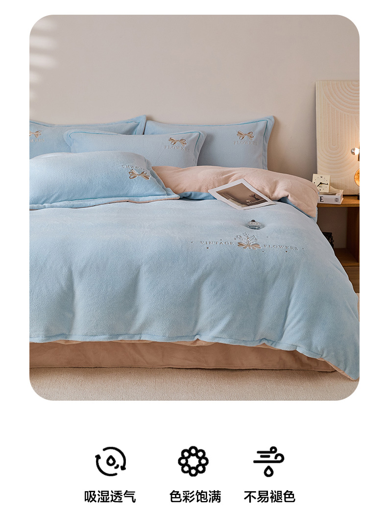 当前位置: 91家纺网 > 商品网购 > 床品套件 > 四件套 > 其它四件套 > 锦罗绣 2025新款雪尼绒艾尼绒230克全消光绣花系列四件套 清新蓝+卡其