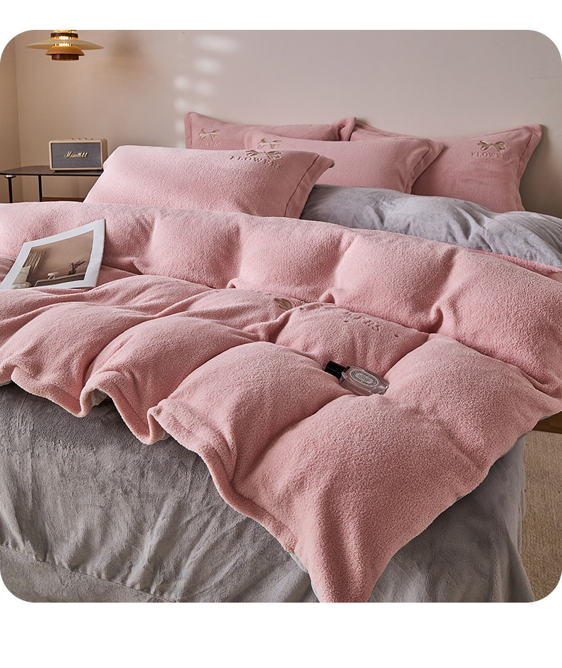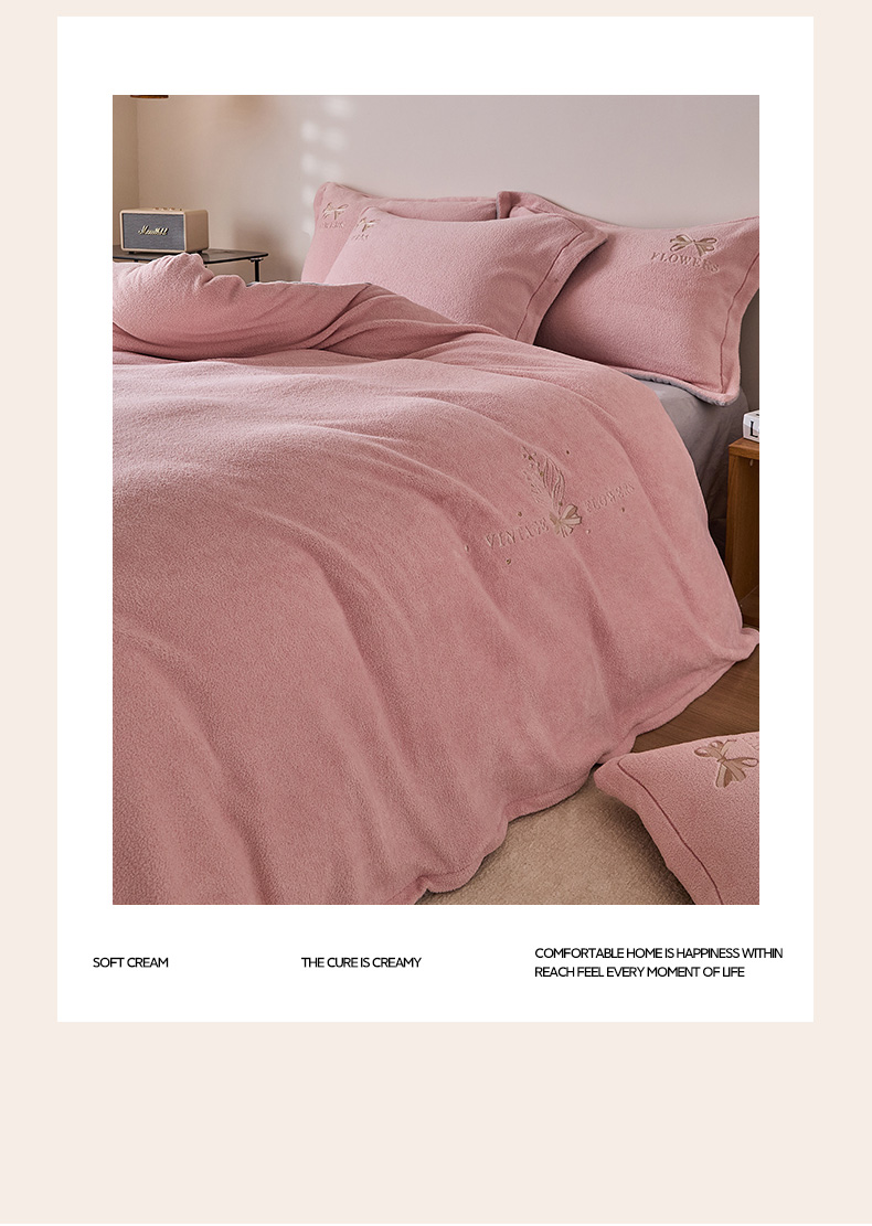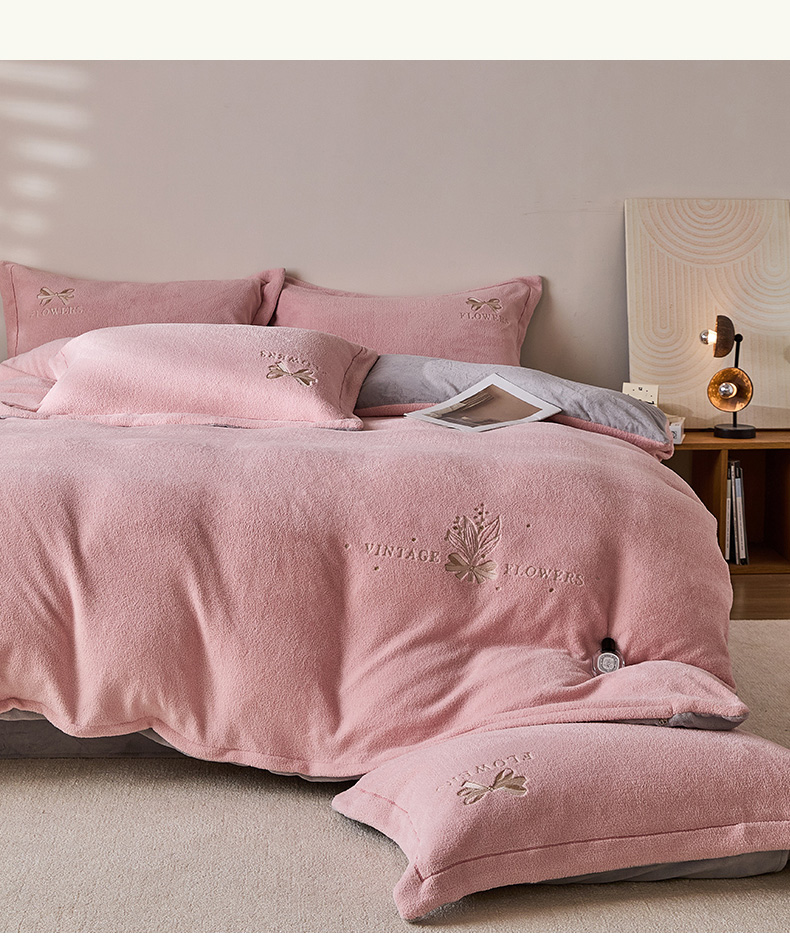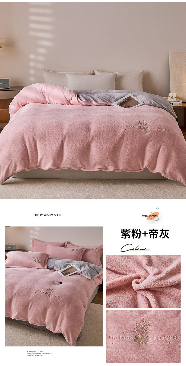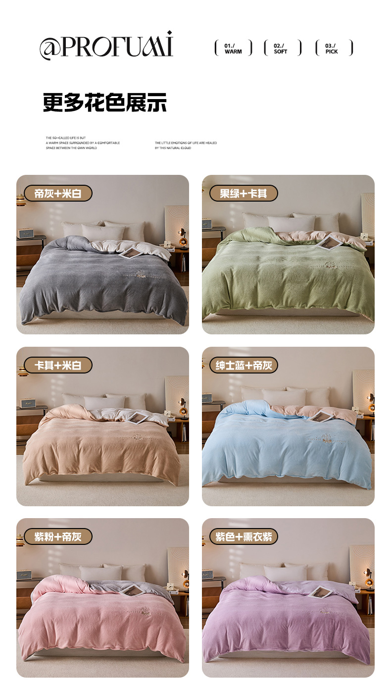 • 91家纺网 家纺一手货源 找家纺 锦罗绣 2025新款雪尼绒艾尼绒230克全消光绣花系列单被套  玉粉+帝灰