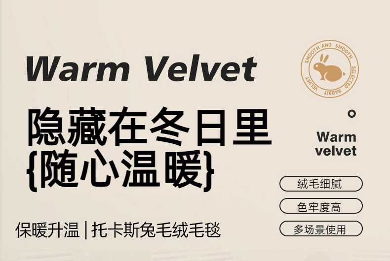 商品名称:贝拉梦家纺 2025新款加厚保暖托卡斯兔毛绒毛毯多功能毯子保暖盖毯毯子 可可奶棕