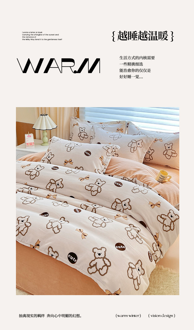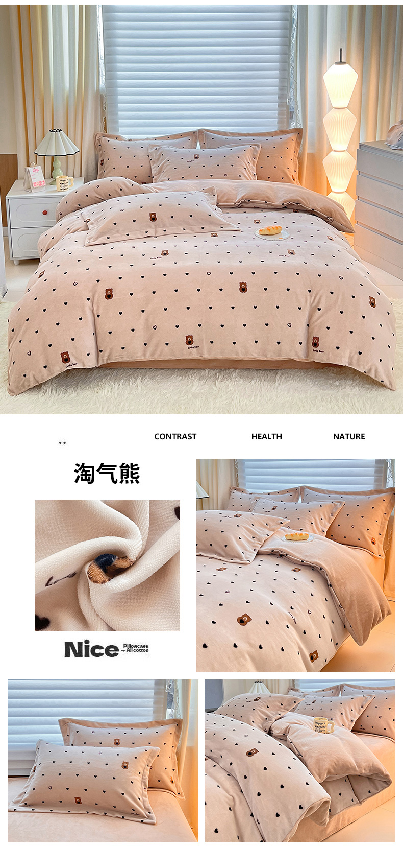 当前位置: 91家纺网 > 商品网购 > 床品套件 > 四件套 > 牛奶绒四件套 > 锦罗绣 2025新款230克牛奶绒印花四件套 奶香小熊
