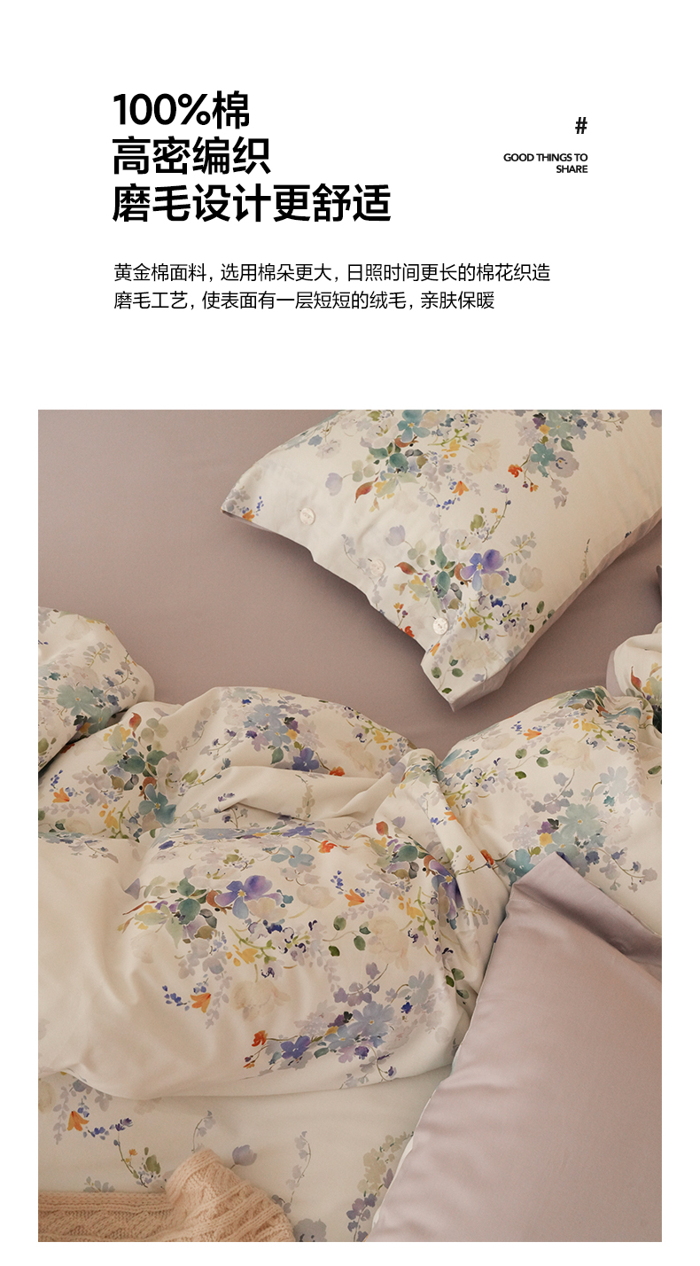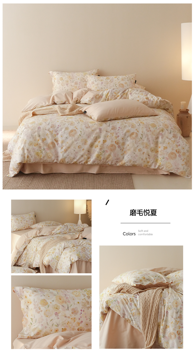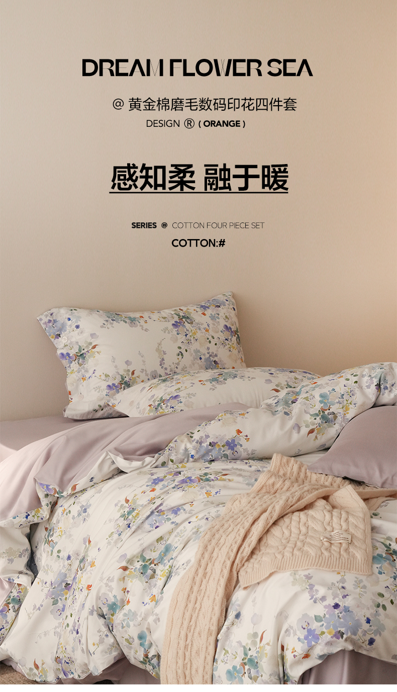 三味舒屋 2025新款黄金棉磨毛数码印花四件套 磨毛漫野