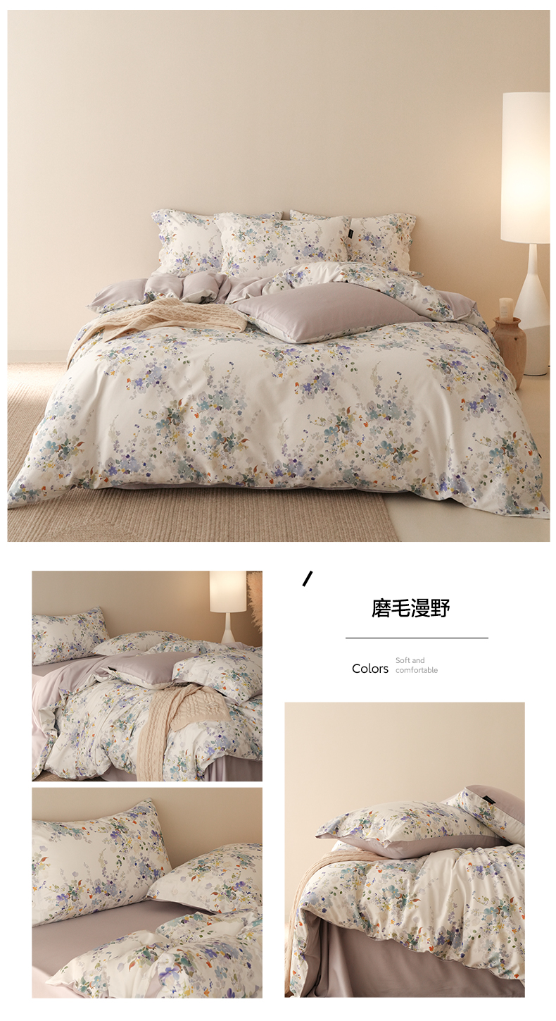 商品名称:三味舒屋 2025新款黄金棉磨毛数码印花四件套 磨毛漫野