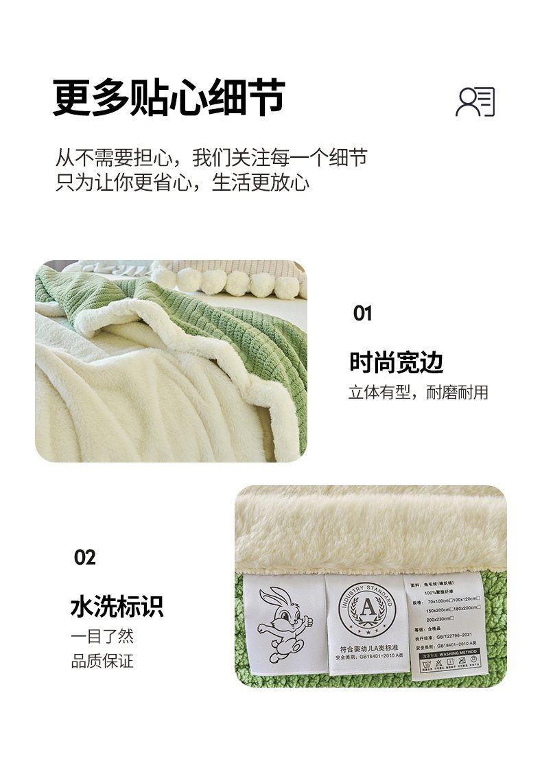 商品名称:畅畅家纺 2025新款A面编织绒B面兔毛绒纯色春秋冬毛毯盖毯 抹茶绿