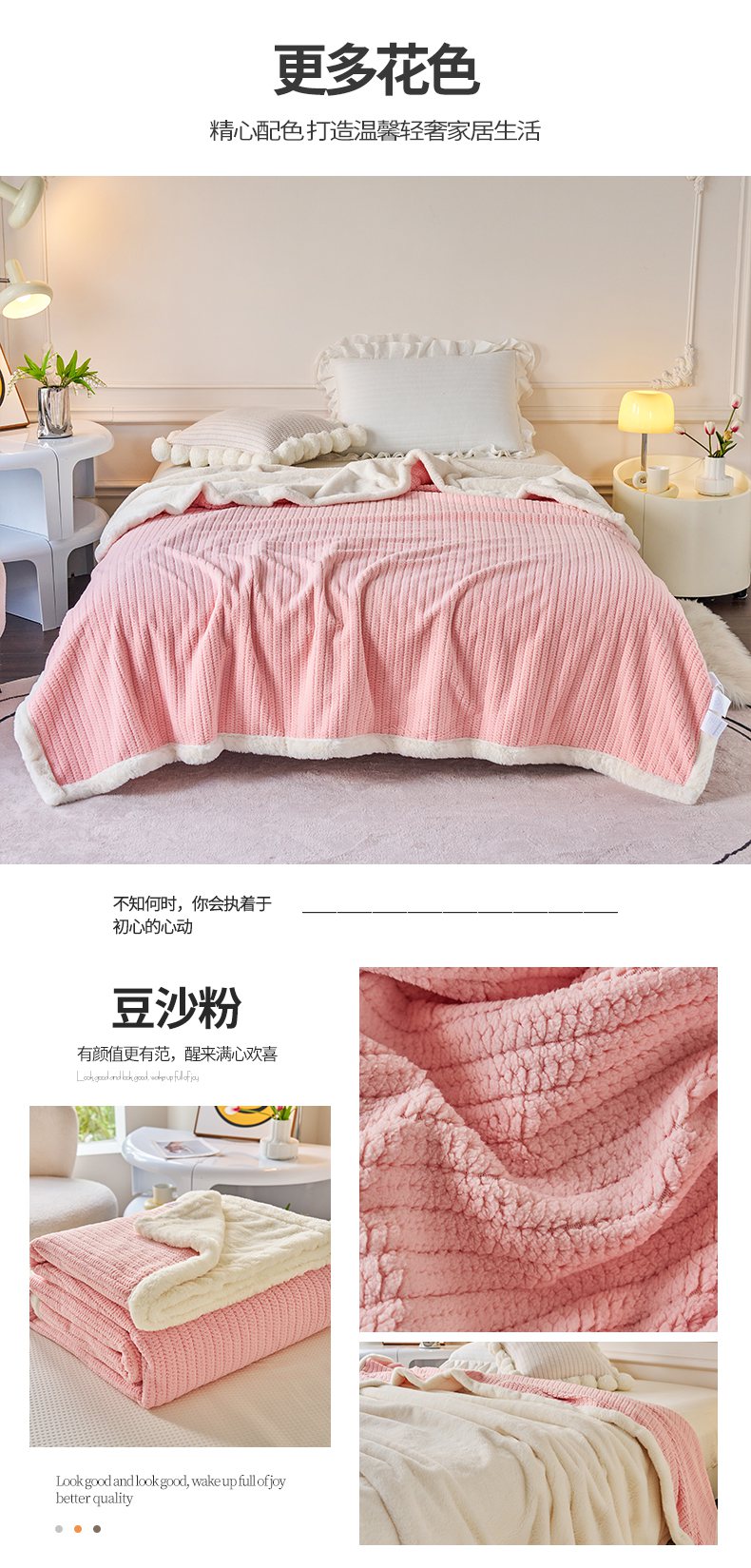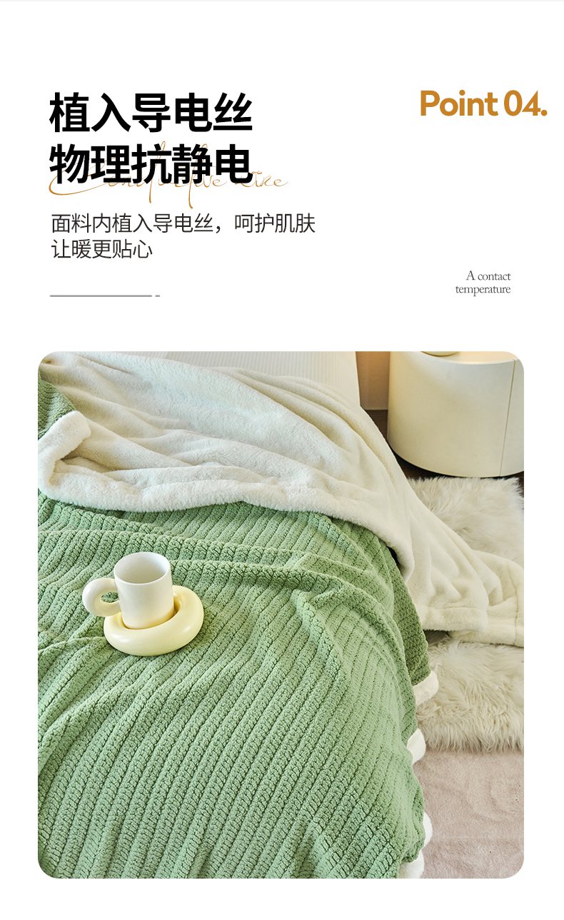 畅畅家纺 2025新款A面编织绒B面兔毛绒纯色春秋冬毛毯盖毯 抹茶绿