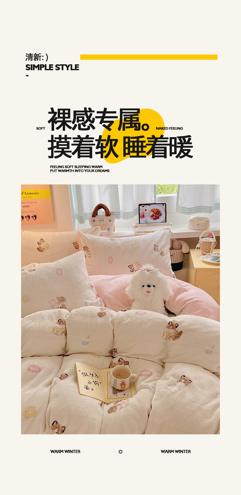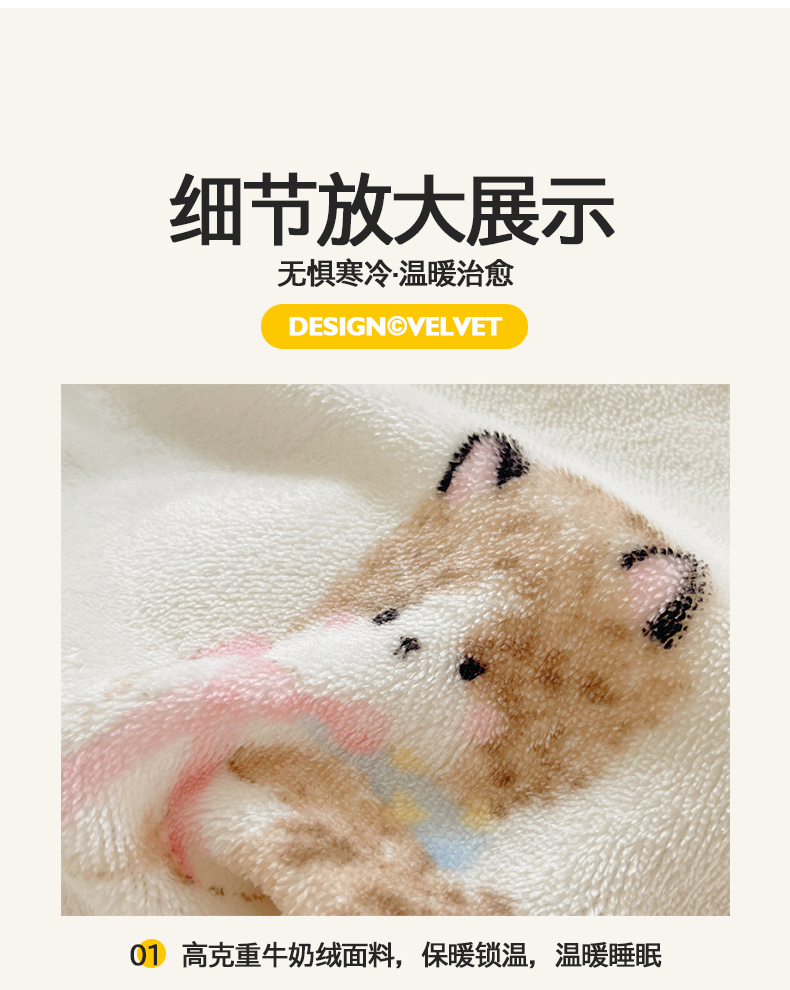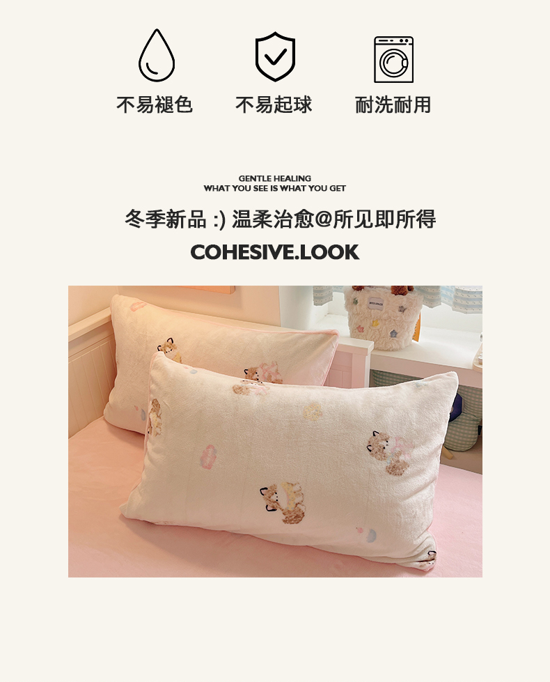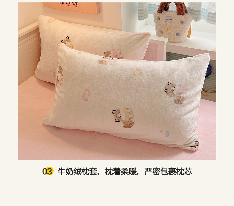 商品名称:金爱家 2025新款A类ins小清新少女奶油卡通可爱加厚牛奶绒四件套 绒-奶粉喵