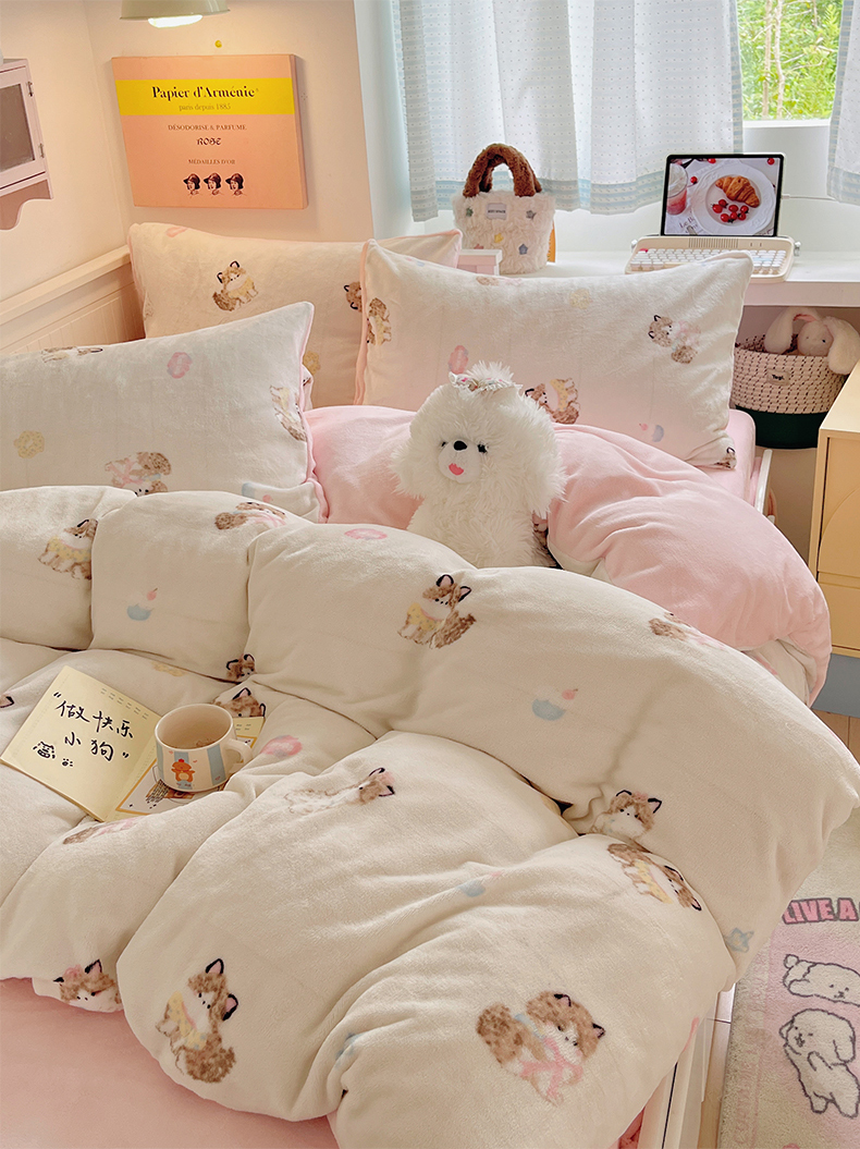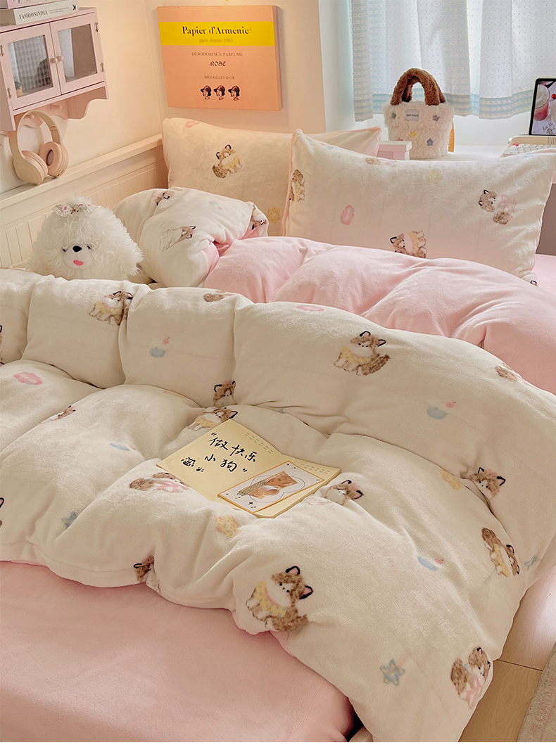 金爱家 2025新款A类ins小清新少女奶油卡通可爱加厚牛奶绒四件套 绒-奶粉喵