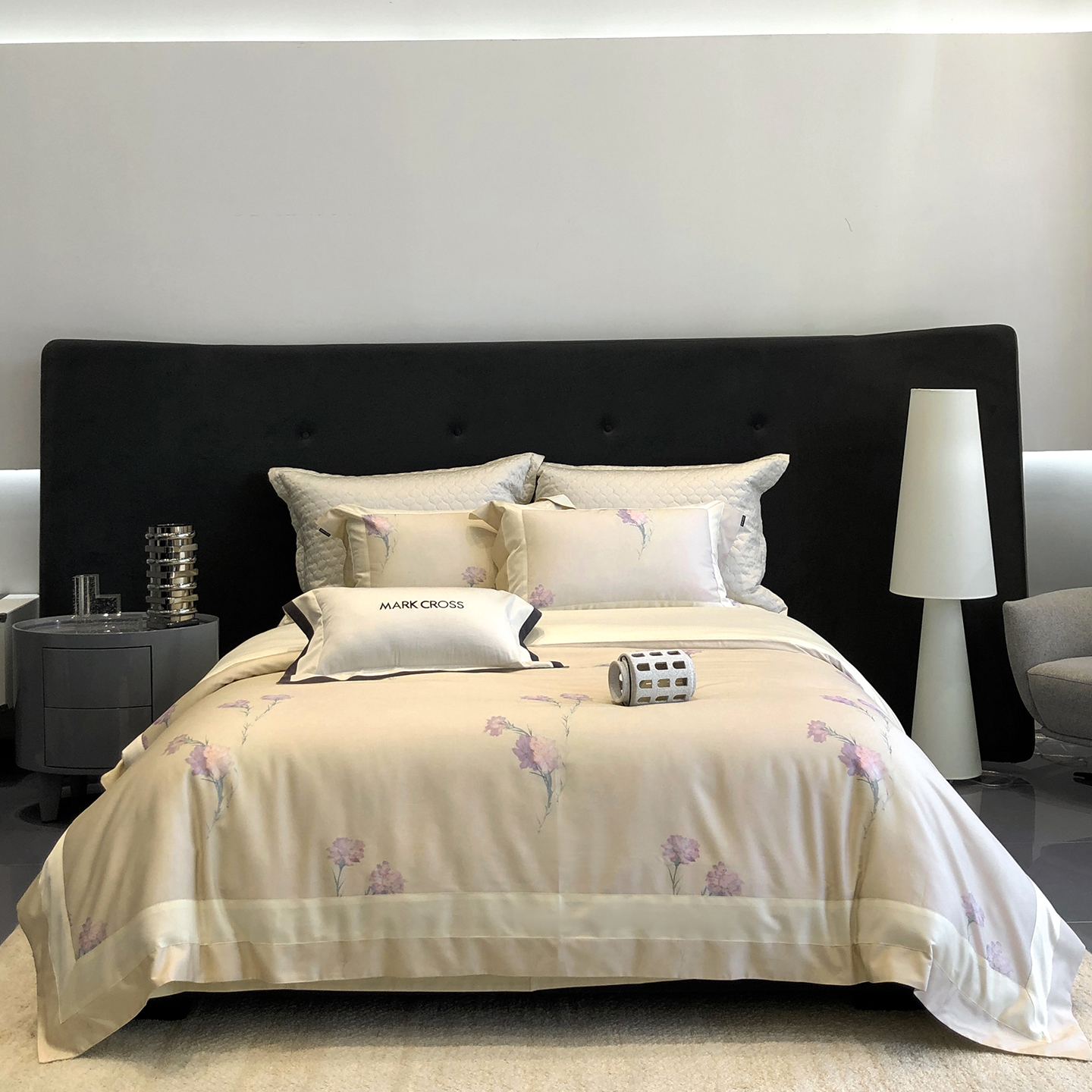 (总)佳汐蓝家纺 2026新款新疆长绒棉全棉纯棉轻奢五线刺绣四件套,初雪白,稻谷米,冷釉灰,汐雾蓝,薰衣紫,釉粉,朱砂红