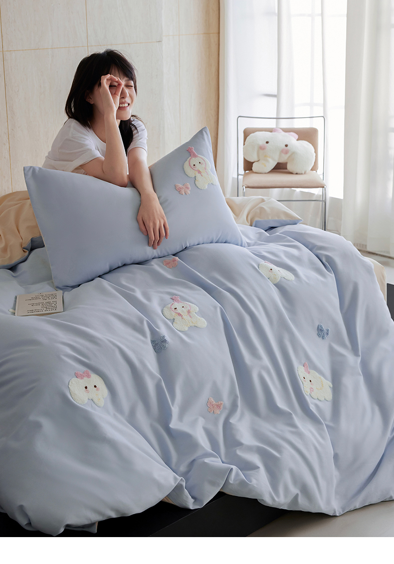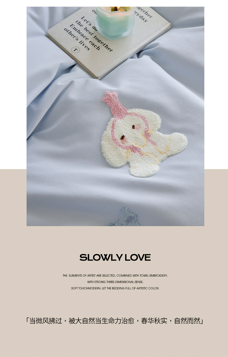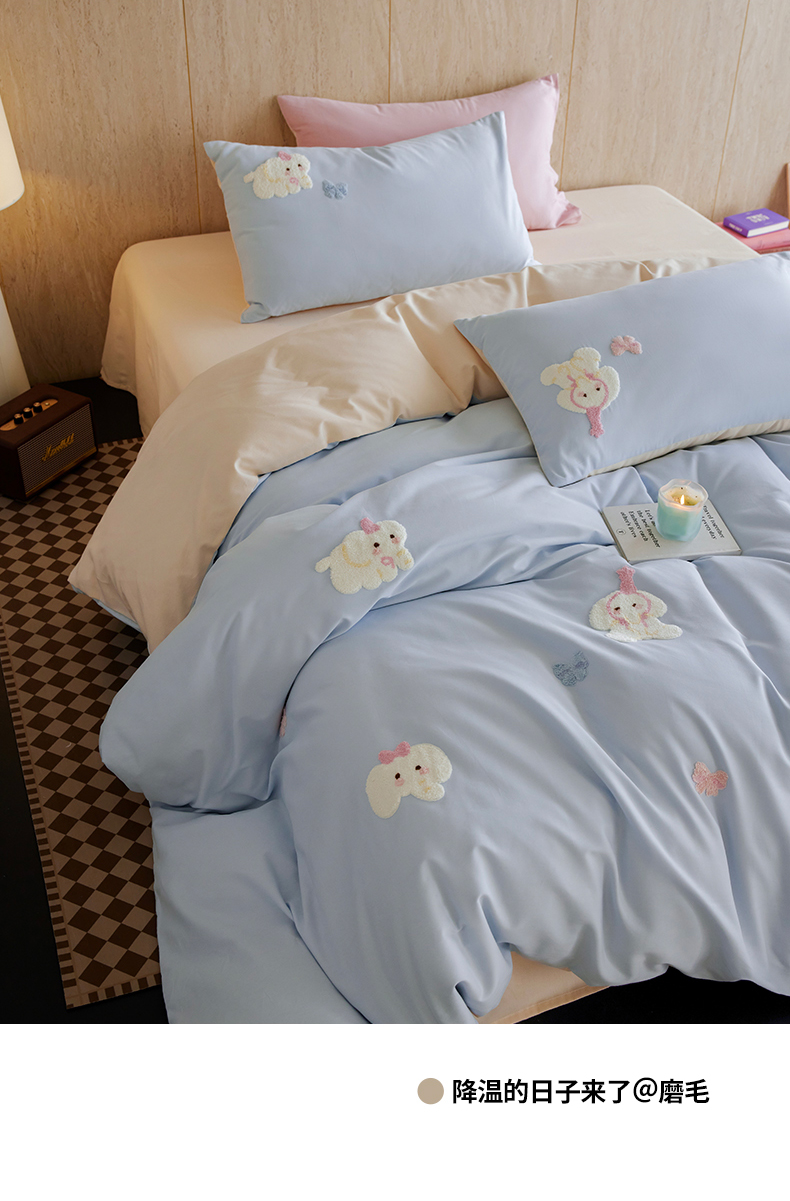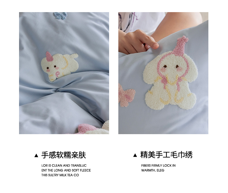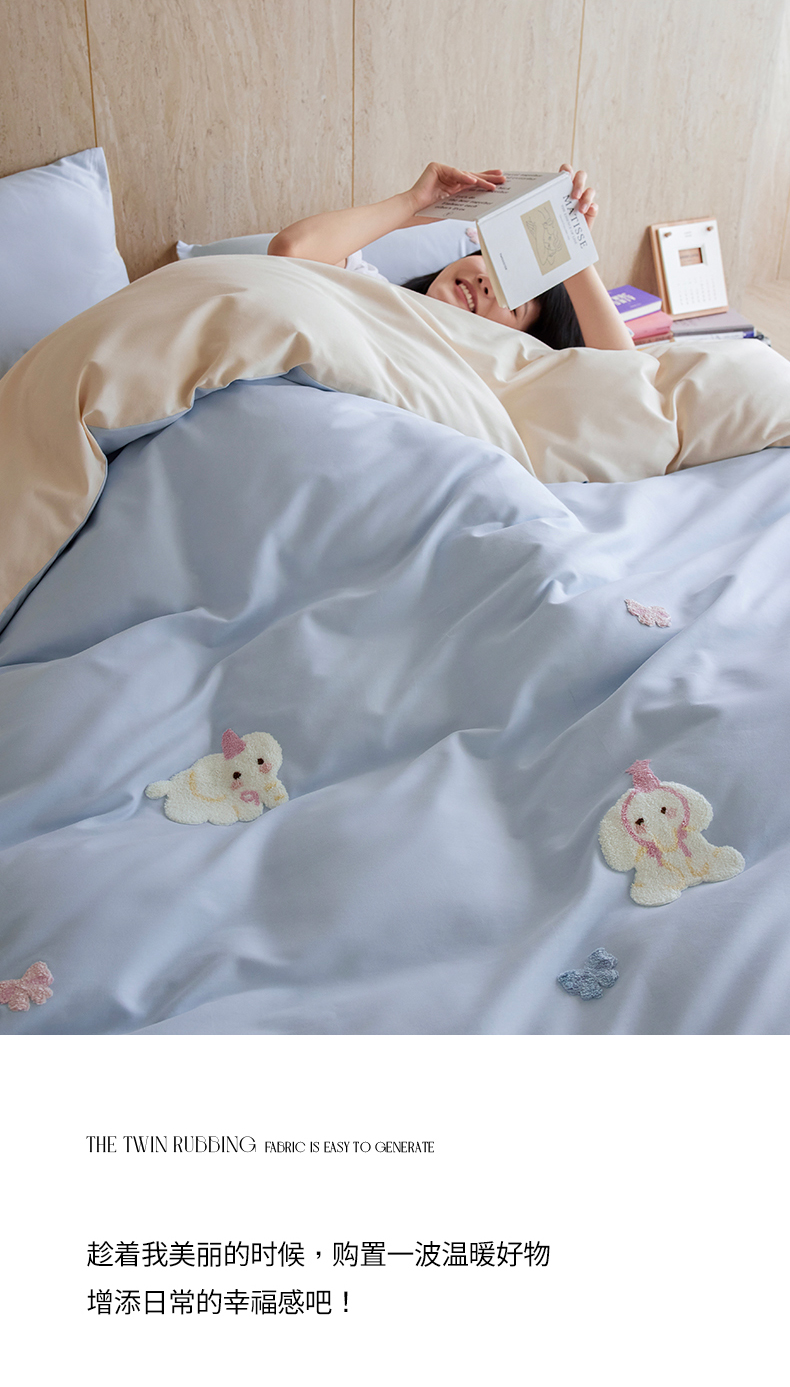 当前位置: 91家纺网 > 商品网购 > 床品套件 > 四件套 > 磨毛活性四件套 > 风向标家纺 202新款贡缎磨毛60s绣花四件套-元气系列 蓝粉小象