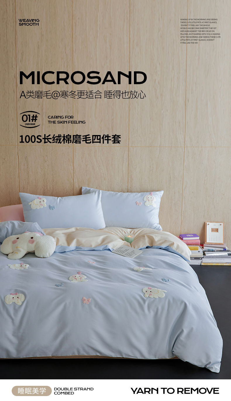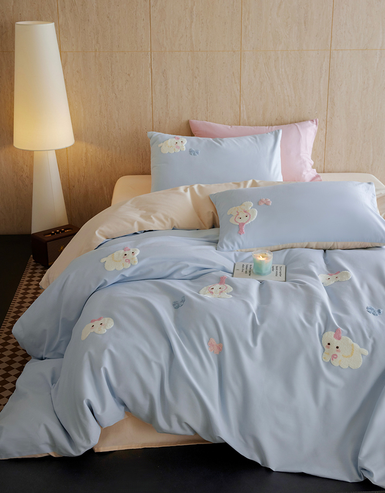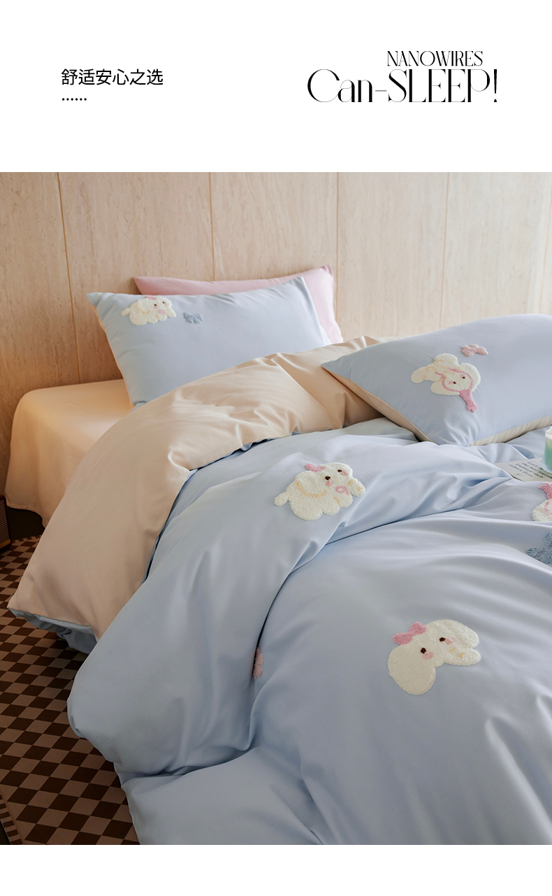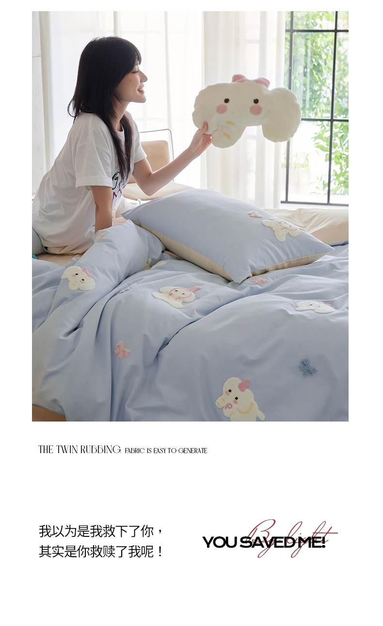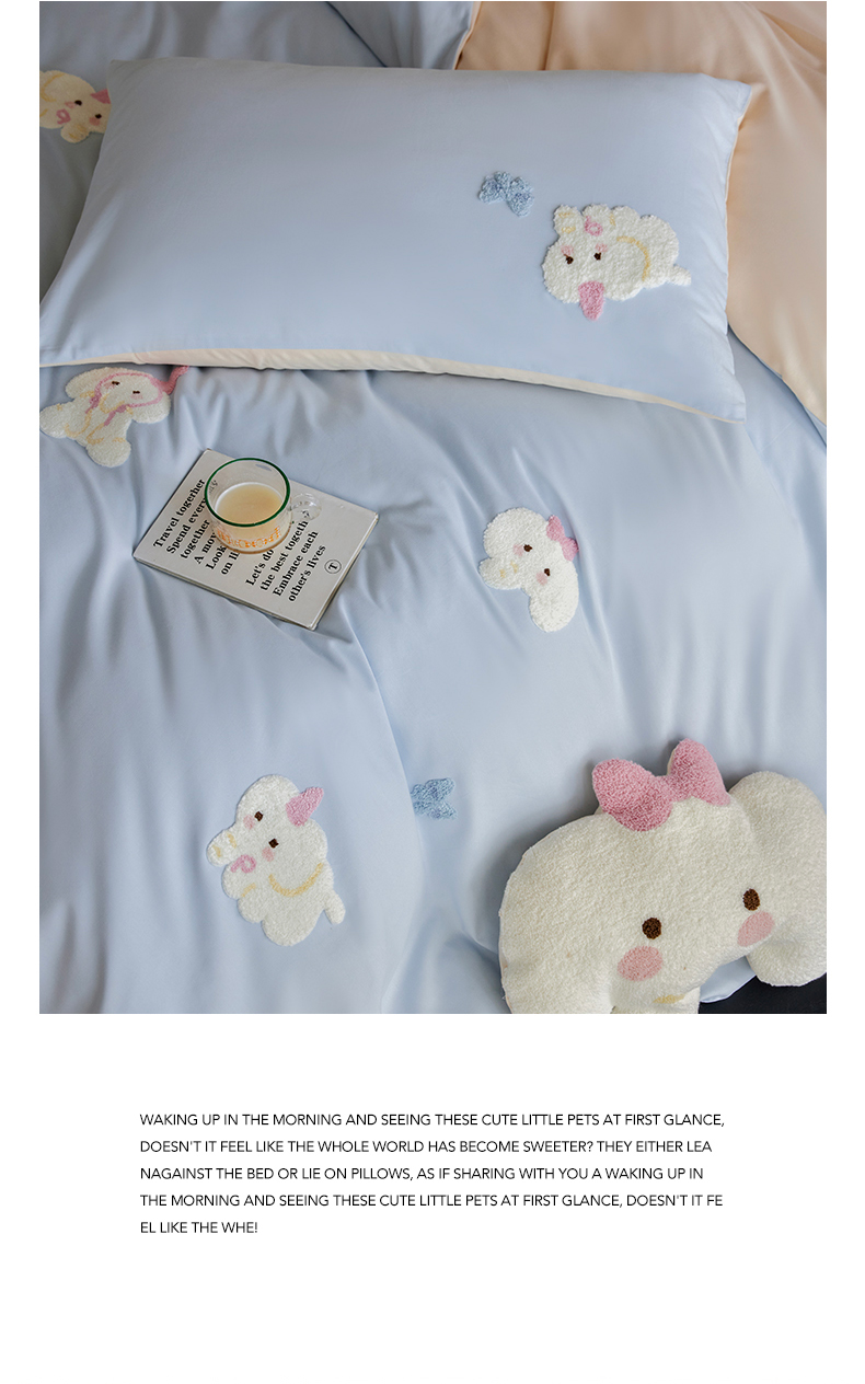 当前位置: 91家纺网 > 商品网购 > 床品套件 > 四件套 > 磨毛活性四件套 > 风向标家纺 202新款贡缎磨毛60s绣花四件套-元气系列 蓝粉小象