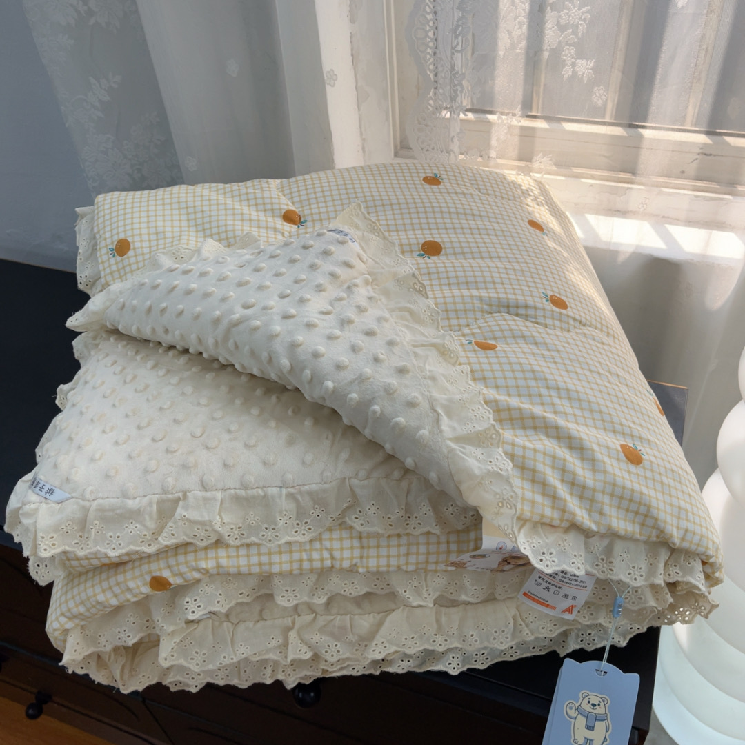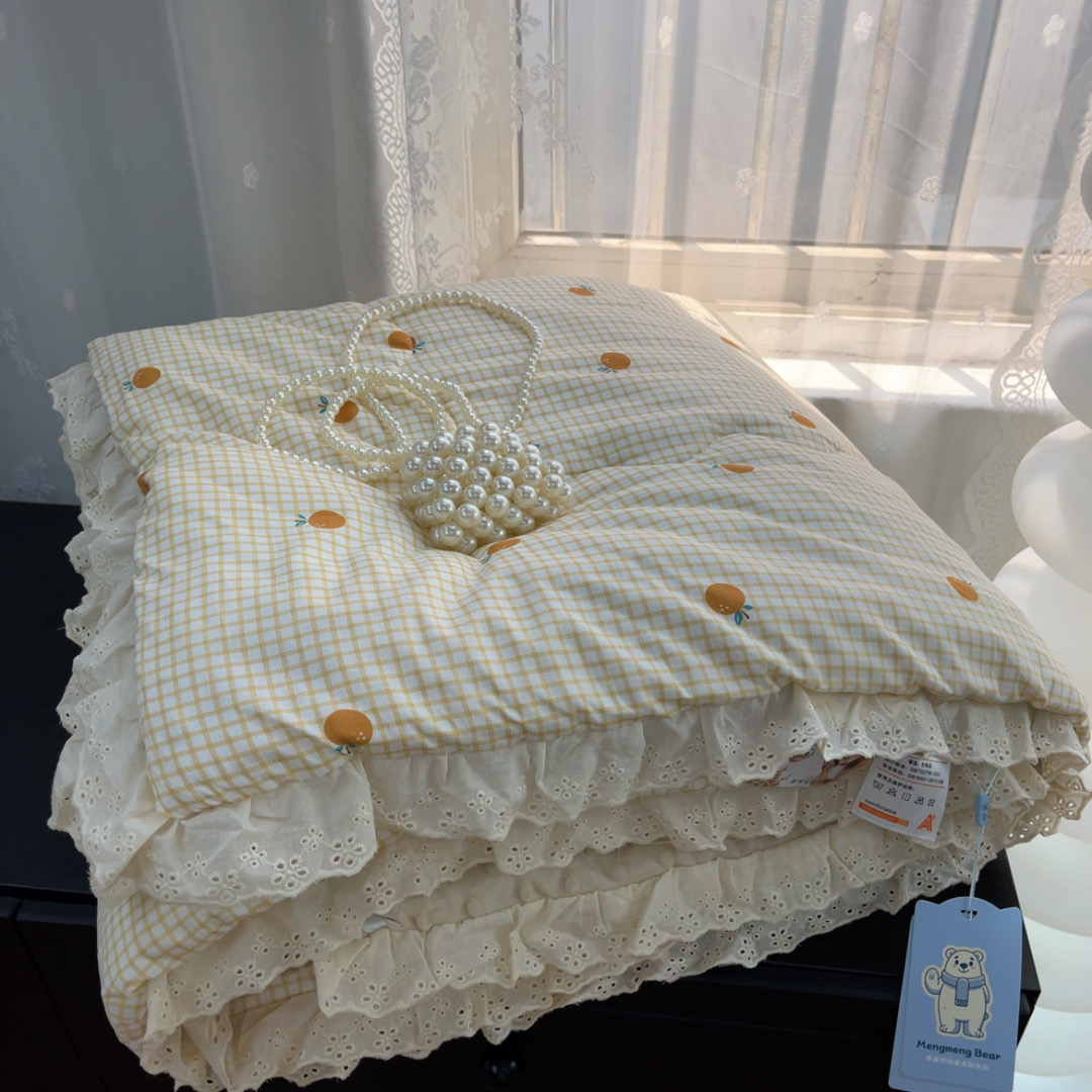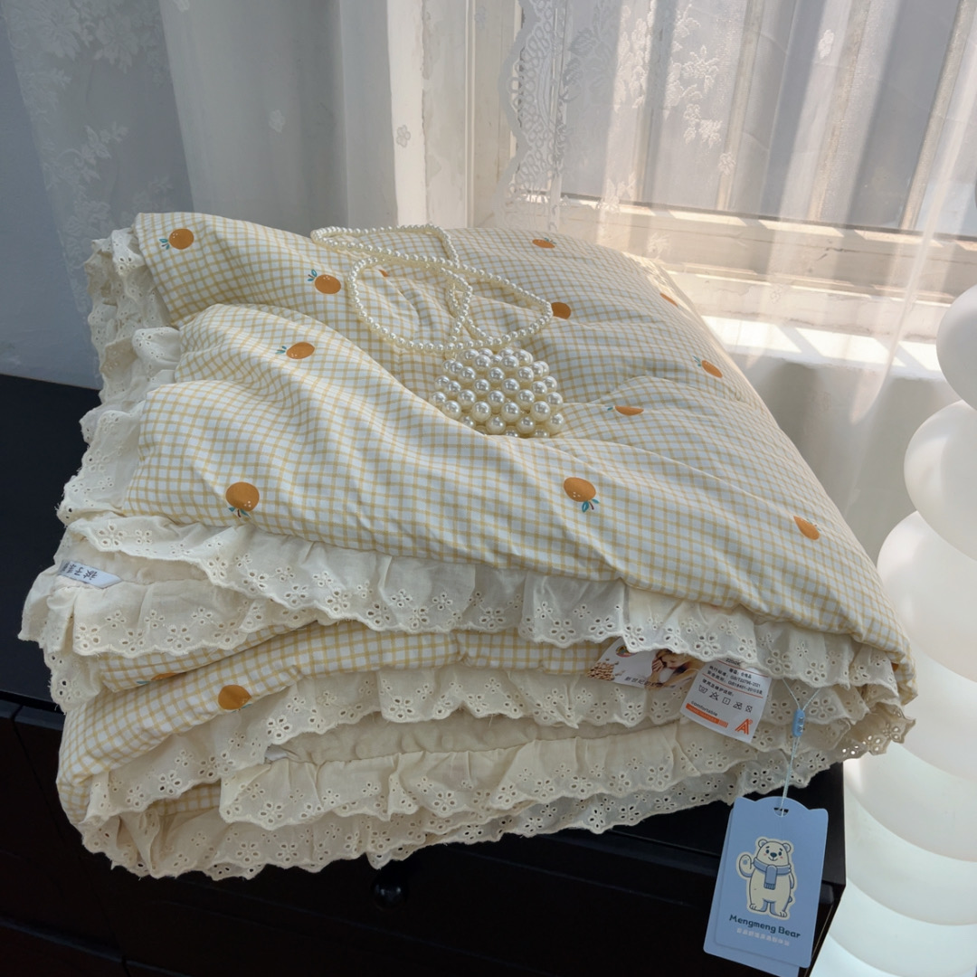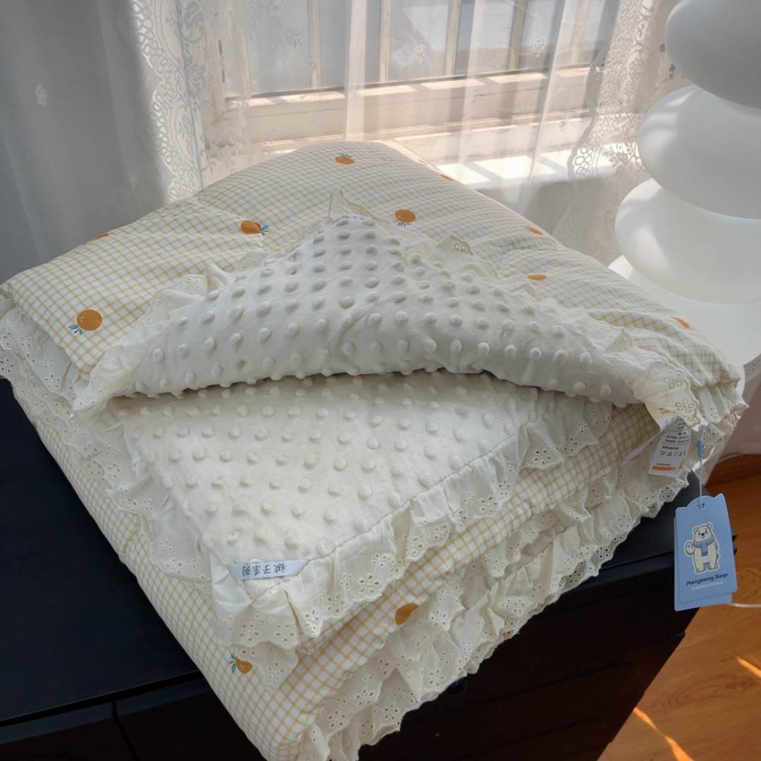 商品名称:暖居 2025新款纯棉花边款春秋豆豆被四季通用 小橘子