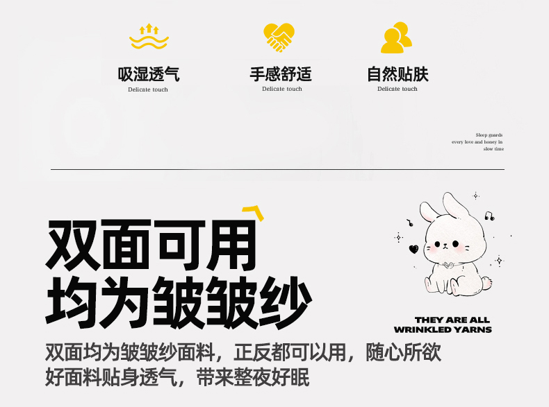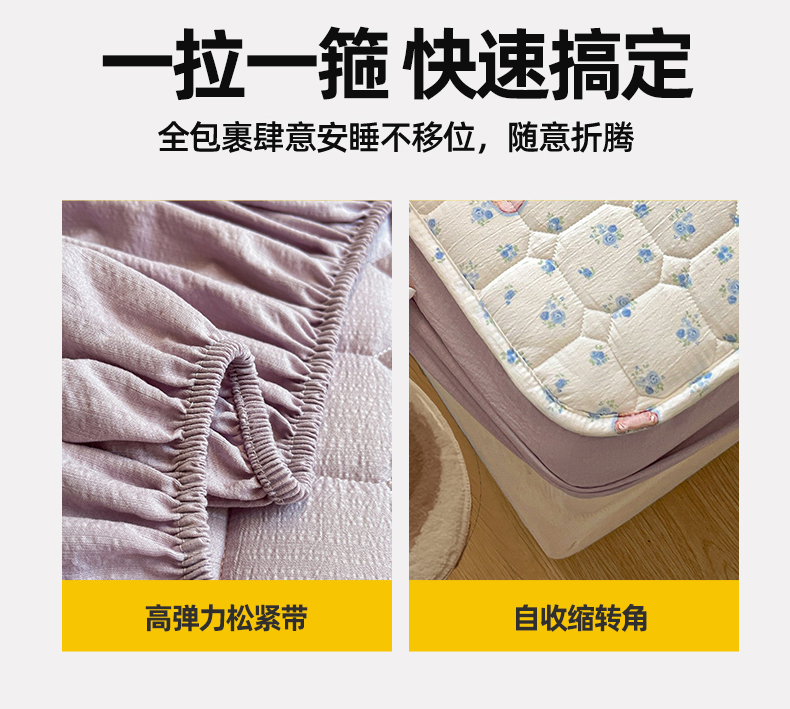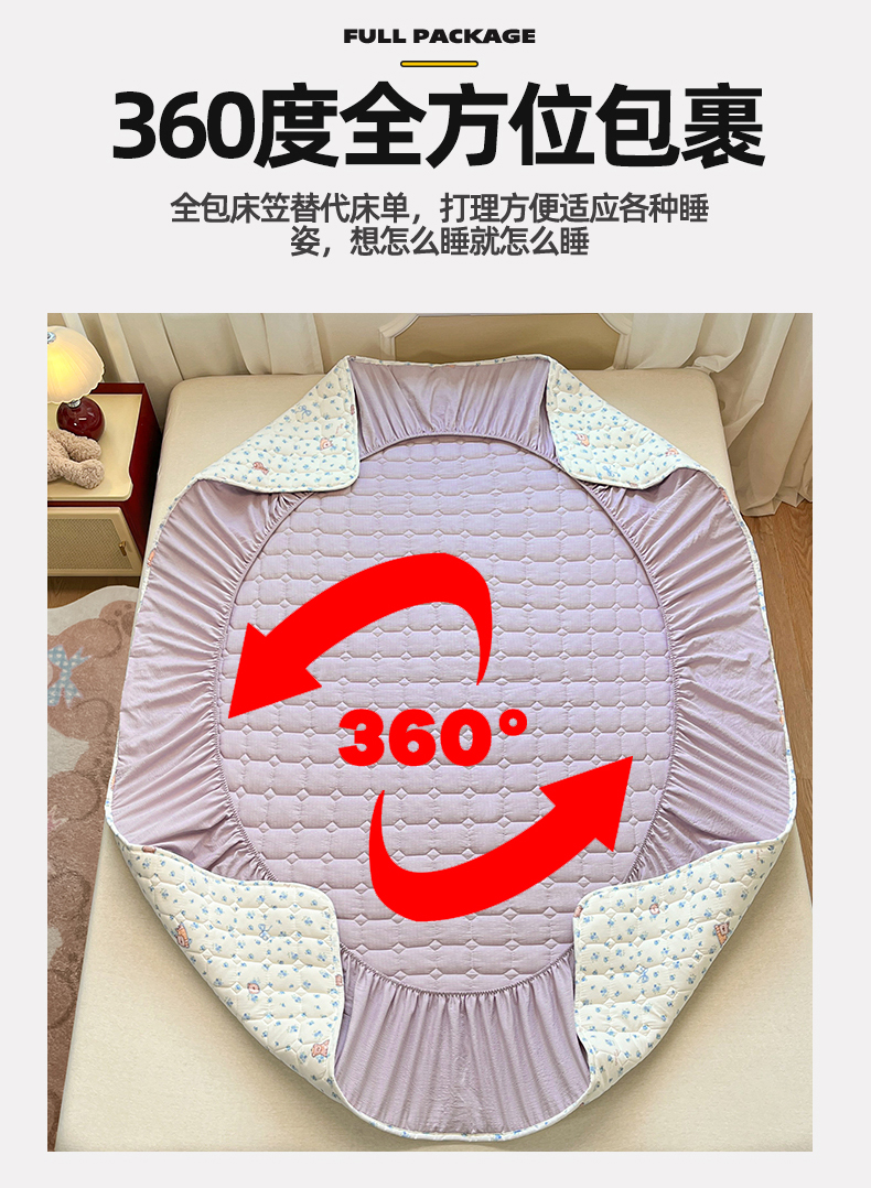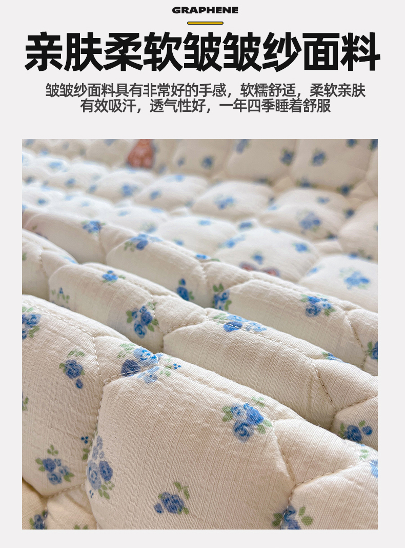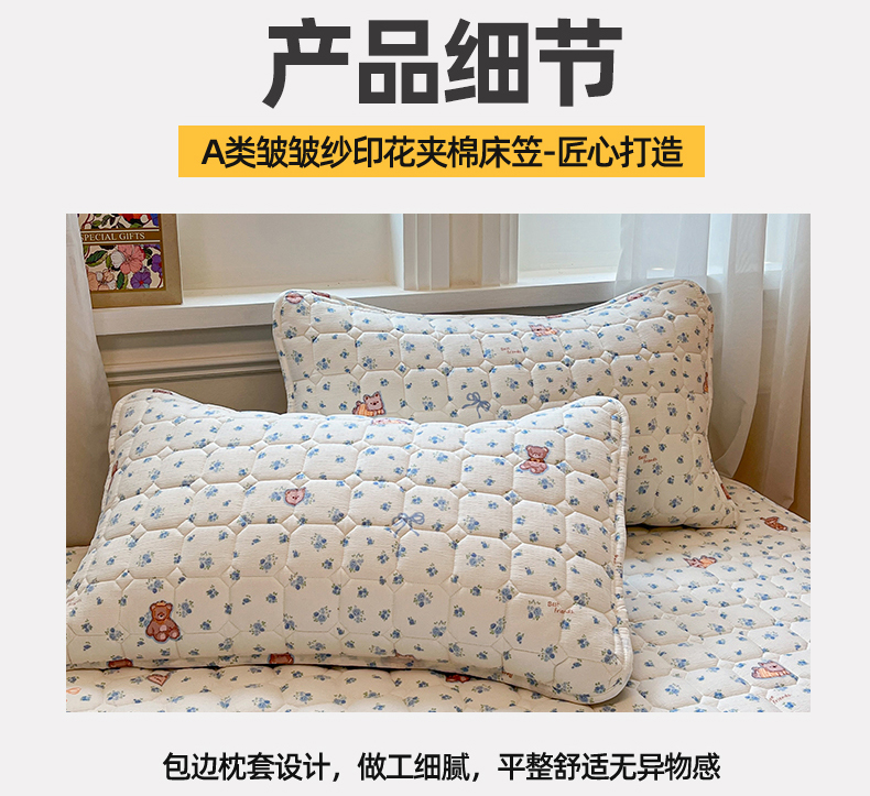 商品名称:布卢姆床垫 2025新款A类皱皱纱印花夹棉床笠 快乐家族