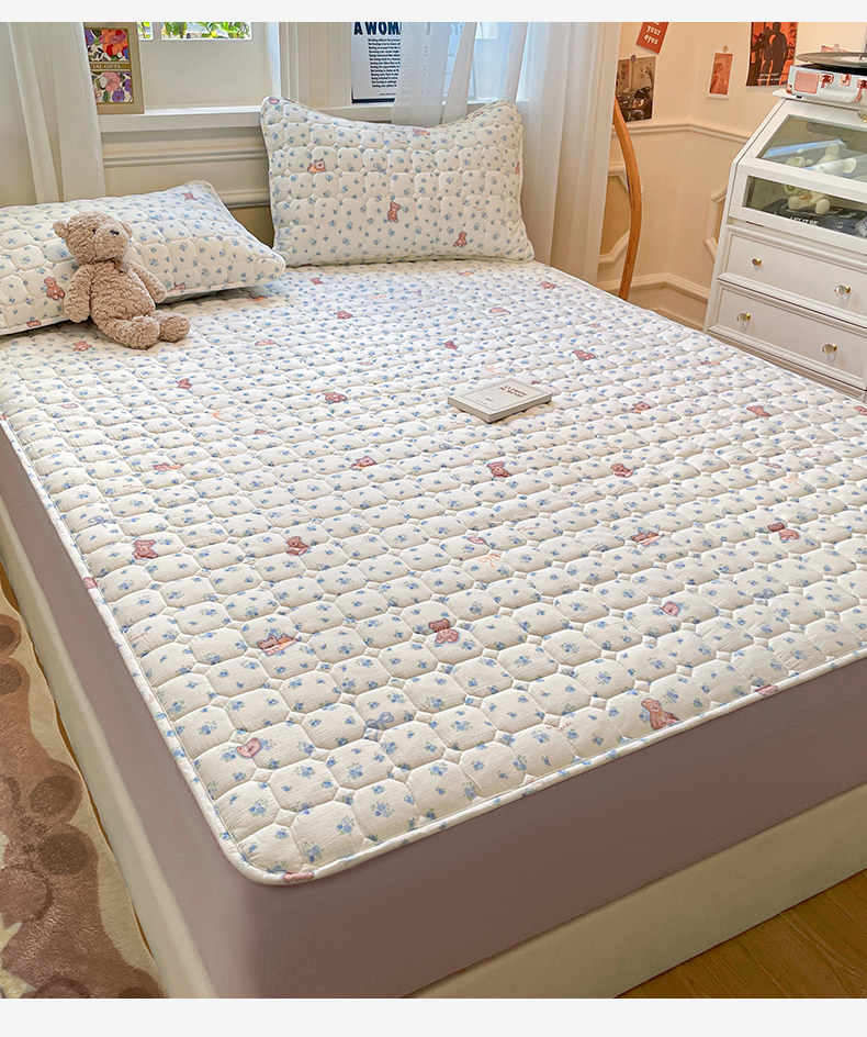 (总)布卢姆床垫 2025新款A类抗菌印花牛奶绒夹棉床笠,爱如星尘,春暖花开,飞天小象,童趣星海,粉粉蕾丝熊,叶畔兔语,花在云端,蓝色星光