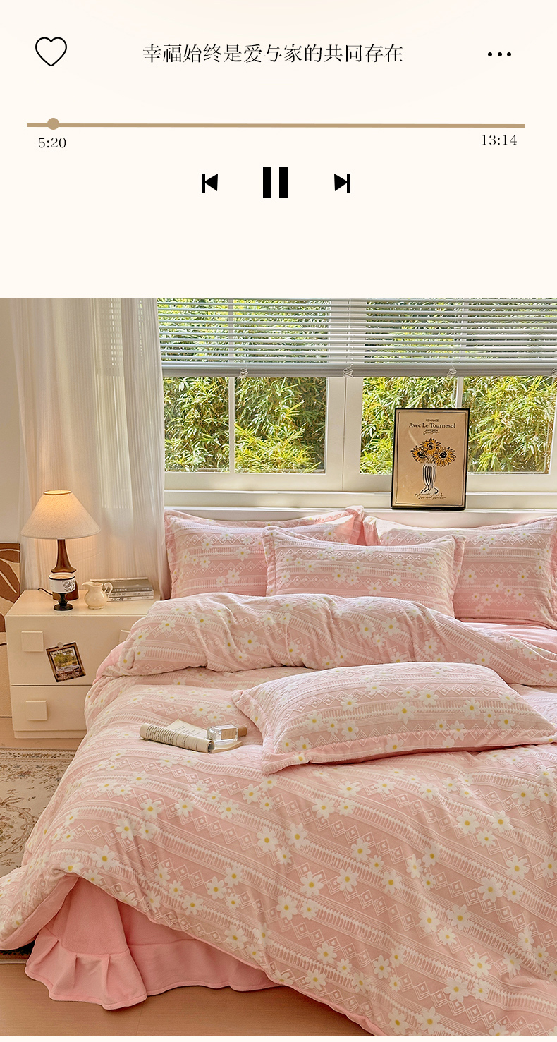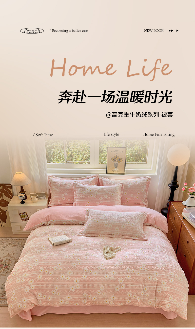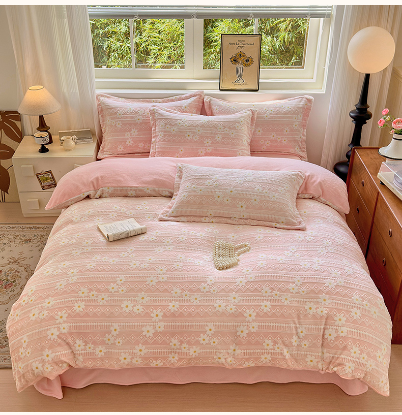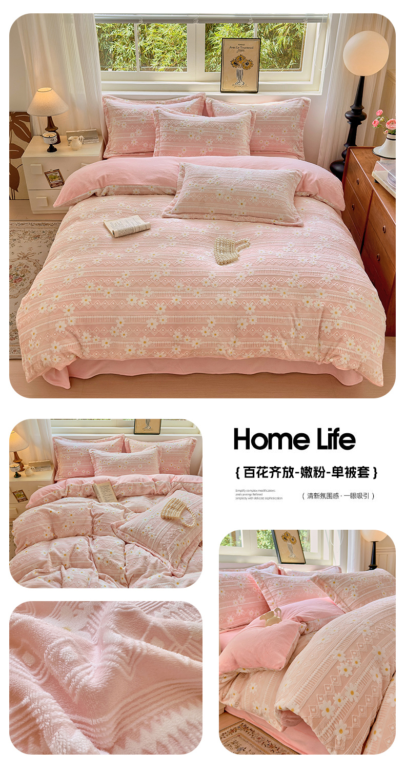 商品名称:娜娜 2025新款高克重牛奶绒百花齐放系列单品被套 百花齐放-嫩粉