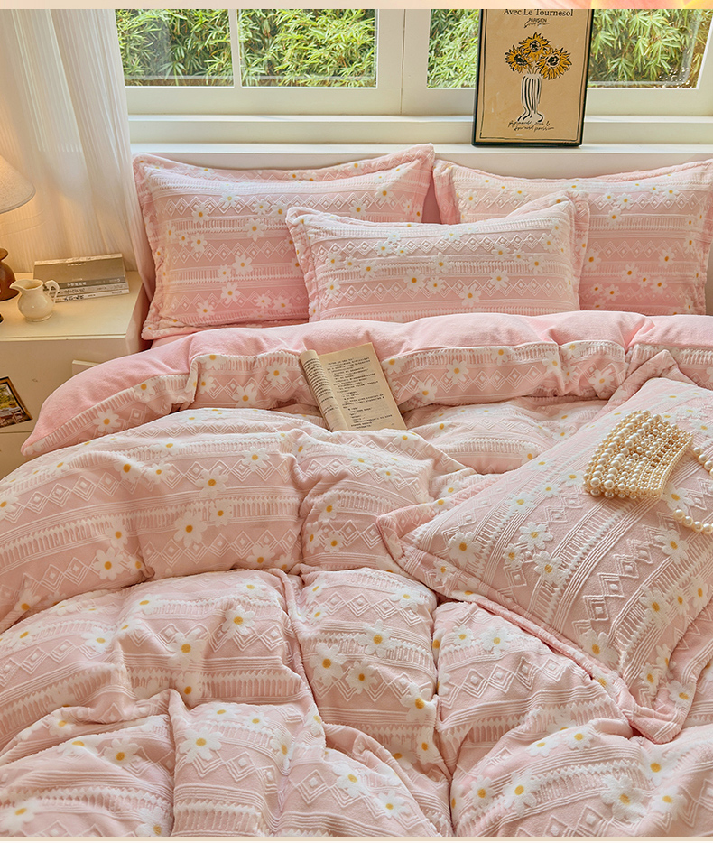 (总)娜娜 2025新款雕花牛奶绒烂花小翠菊单床笠系列,繁花-淡雅粉,繁花-淡雅黄,繁花-淡雅蓝