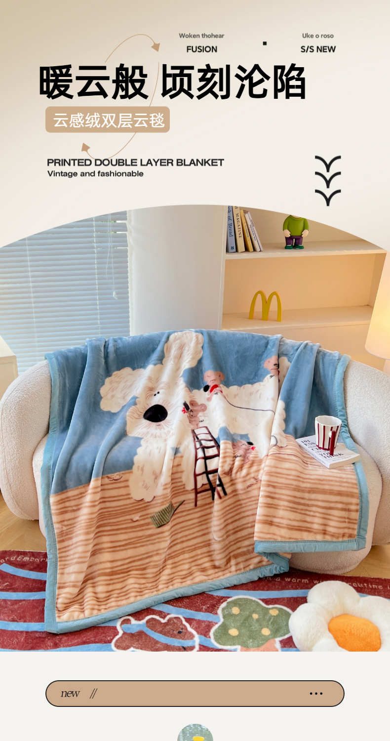 凯轩毛毯网销专供 2025新款双层学生云毯毛毯保暖毯 西高地