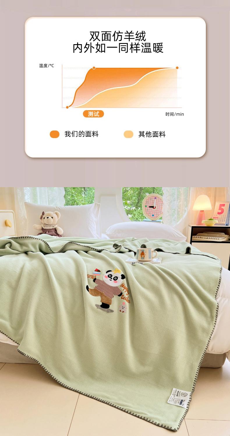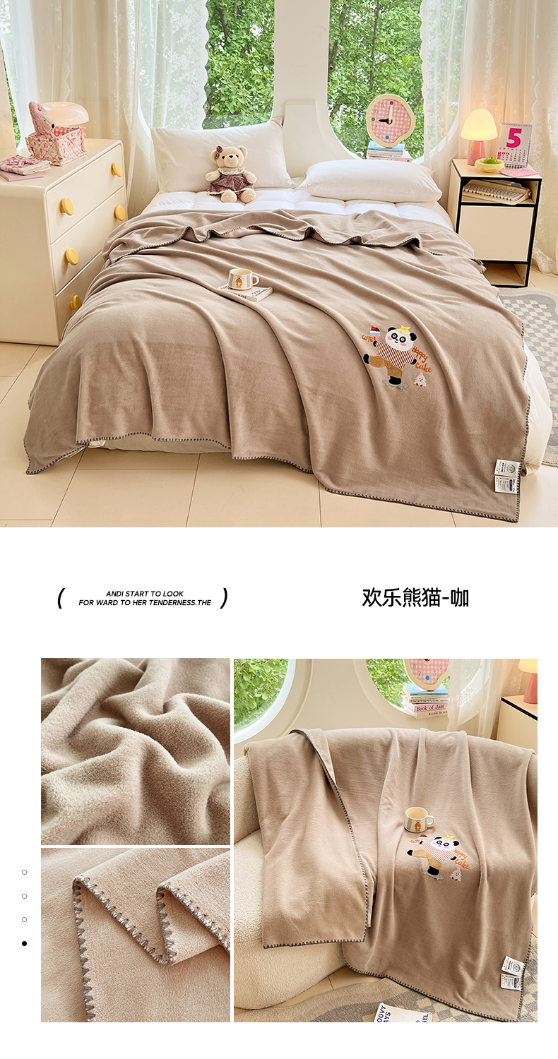 (总)凯轩毛毯网销专供 2025新款仿羊绒贴布绣毛毯毯子,欢乐熊猫-粉,欢乐熊猫-灰,欢乐熊猫-咖,欢乐熊猫-蓝,欢乐熊猫-绿,欢乐熊猫-米白
