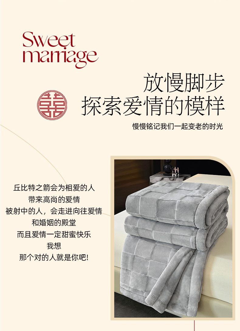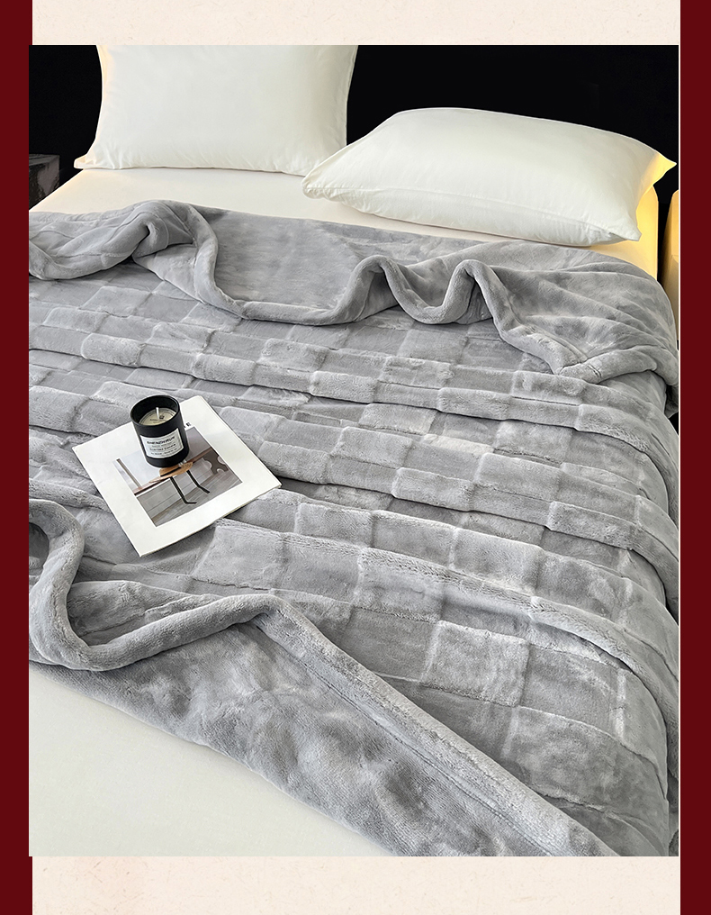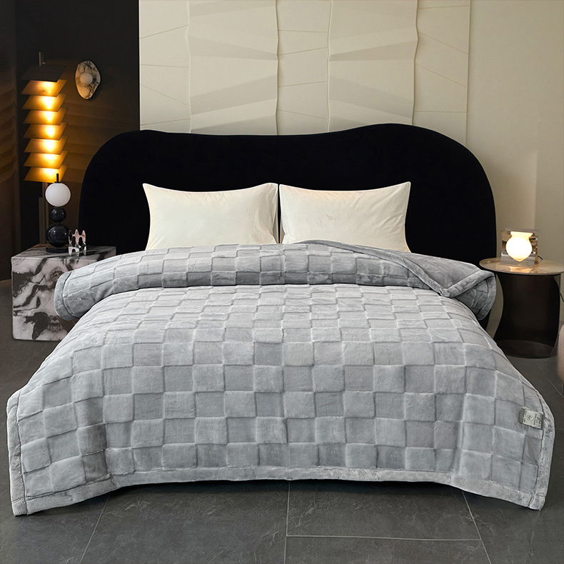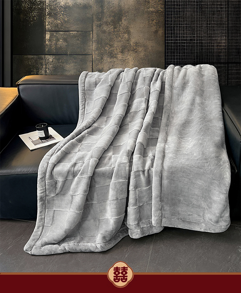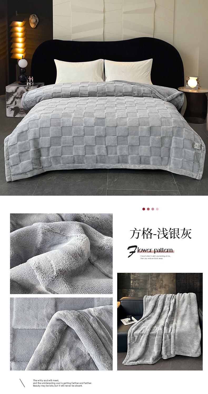 商品名称:凯轩毛毯网销专供 2025新款方格精品婚庆云毯毛毯 方格-浅银灰