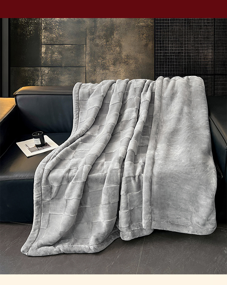 凯轩毛毯网销专供 2025新款方格精品婚庆云毯毛毯 方格-浅银灰