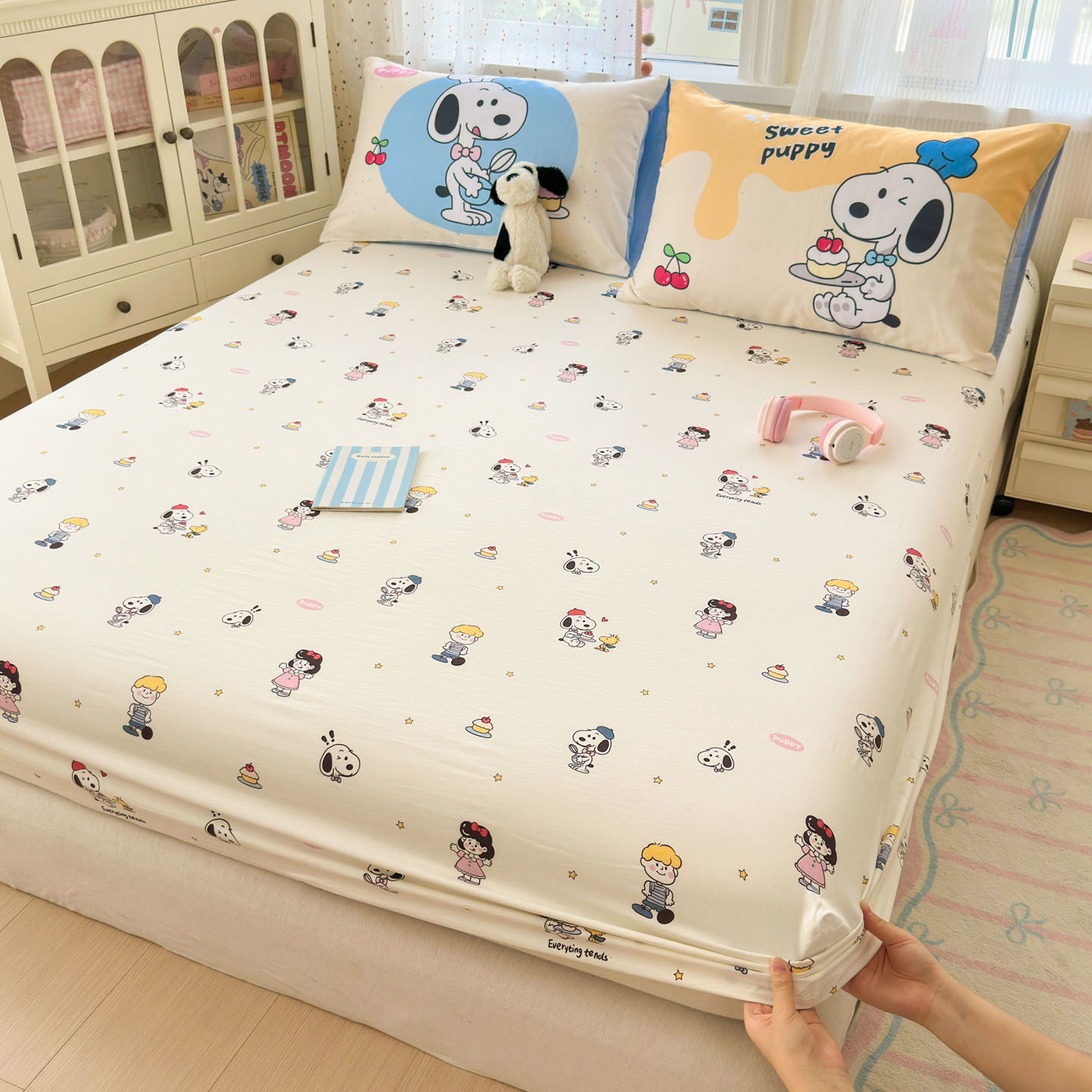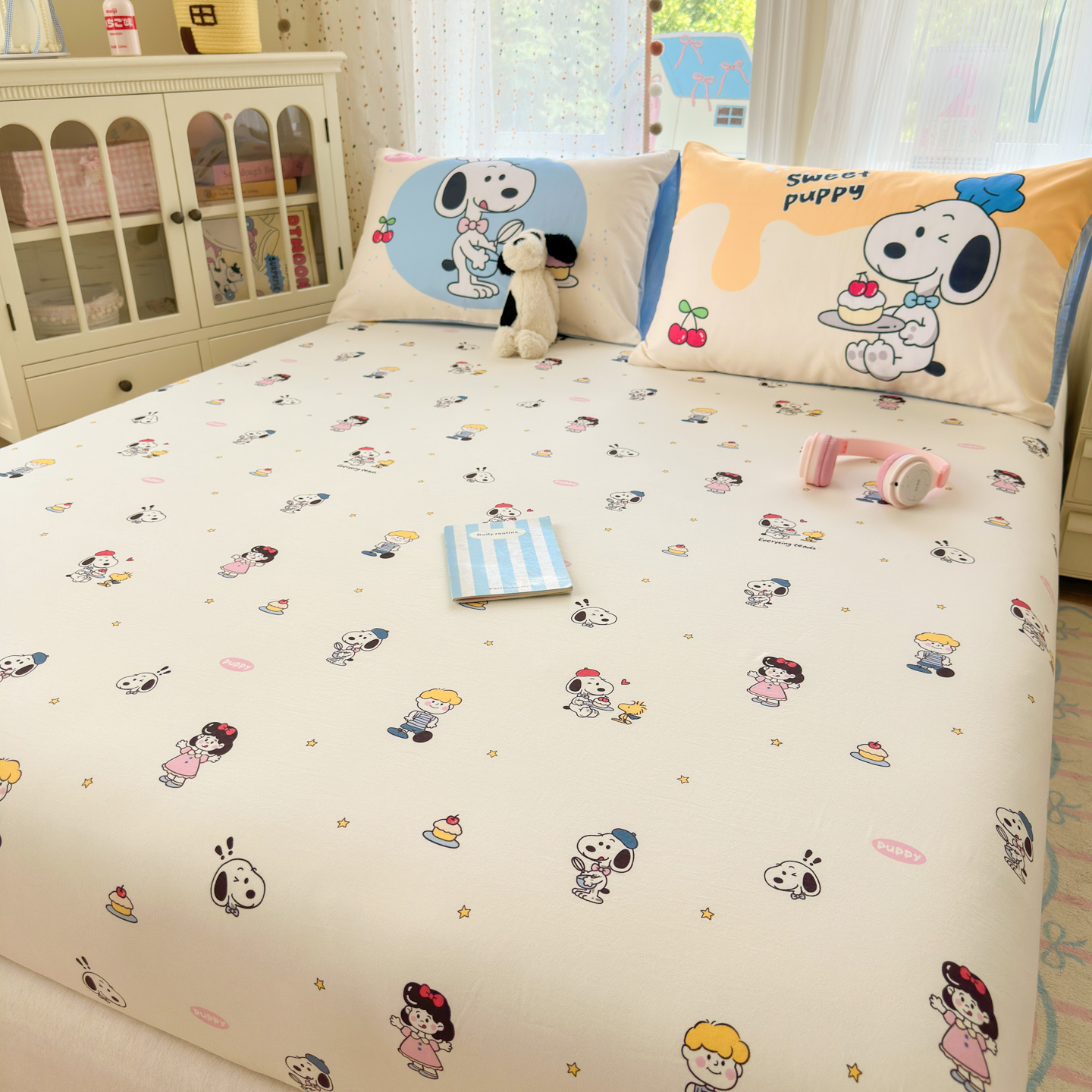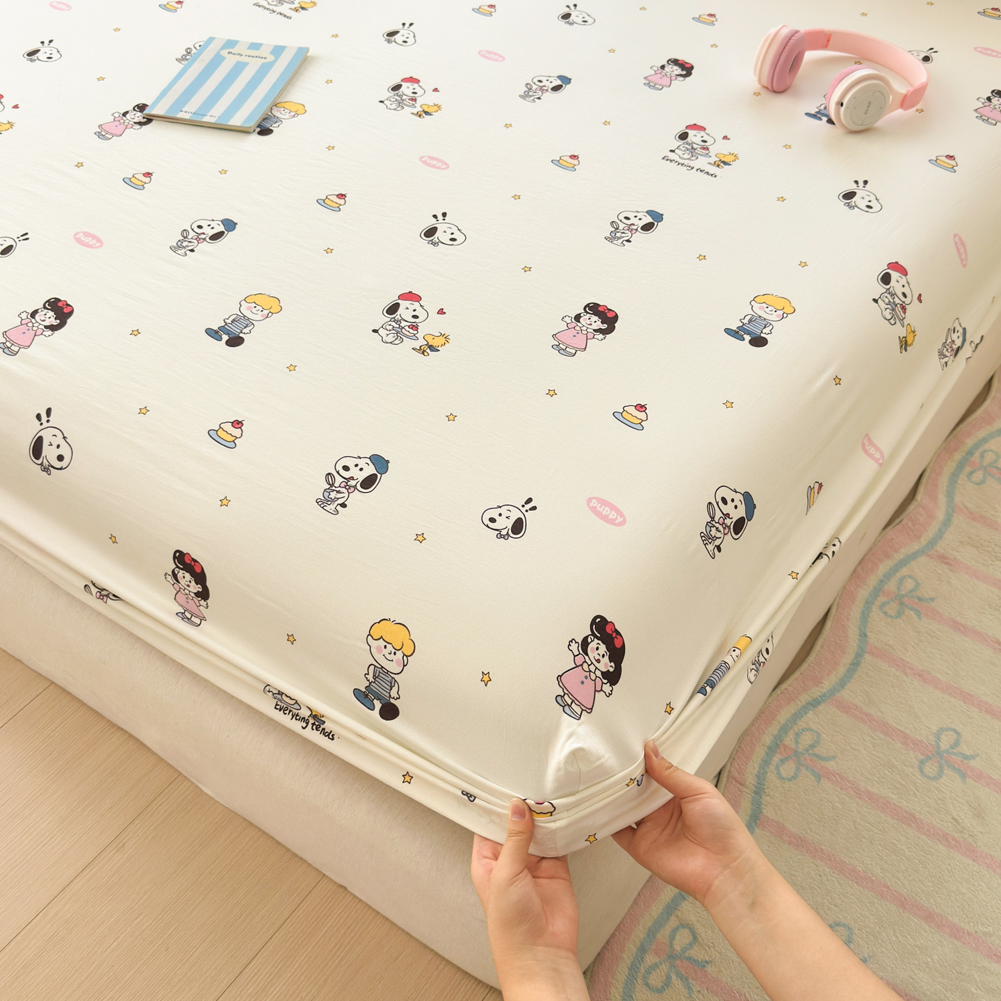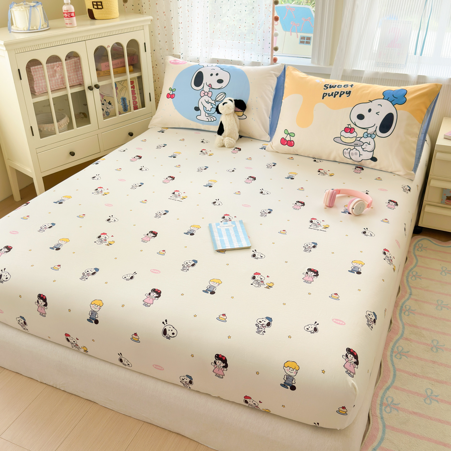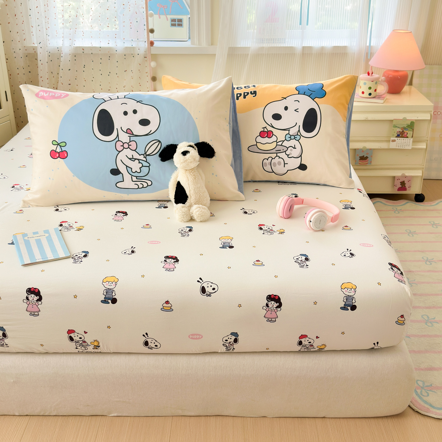 一霖家纺 2025新款云朵棉小清新印花床笠系列 单床笠-小努比