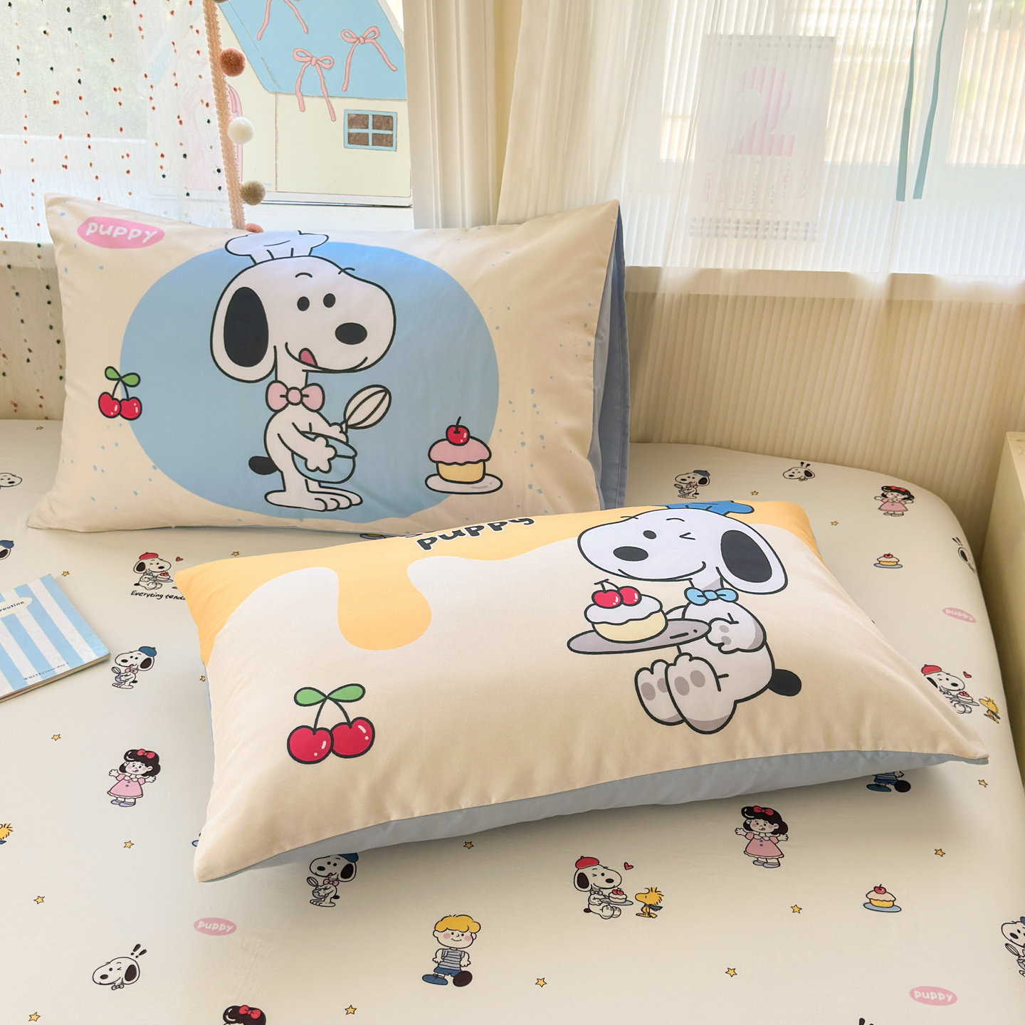• 91家纺网 家纺一手货源 找家纺 一霖家纺 2025新款云朵棉小清新印花床笠系列 单床笠-小努比