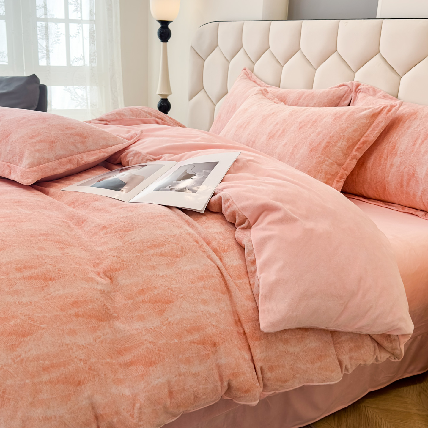 喜四方 2025新款超细旦婴儿宝宝绒印花四件套 德芙-粉