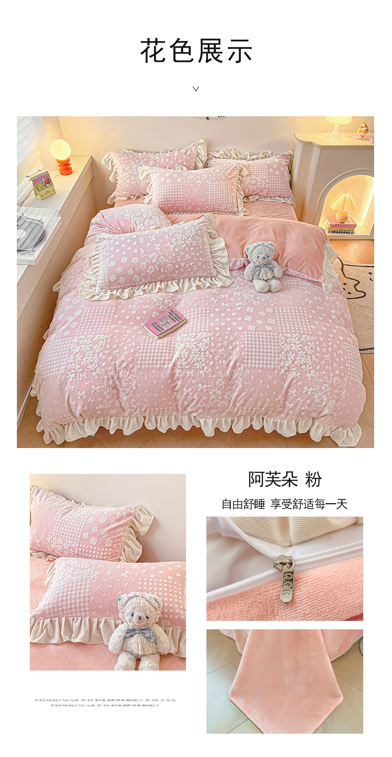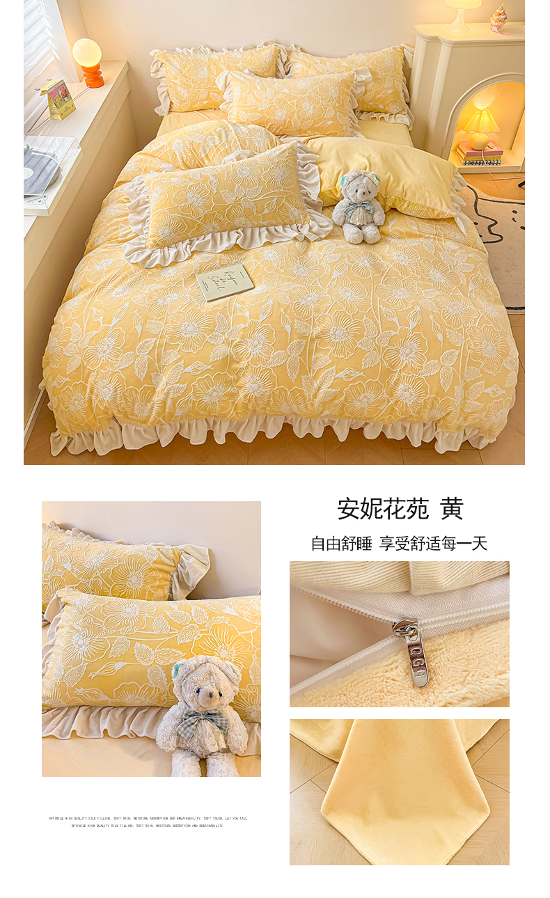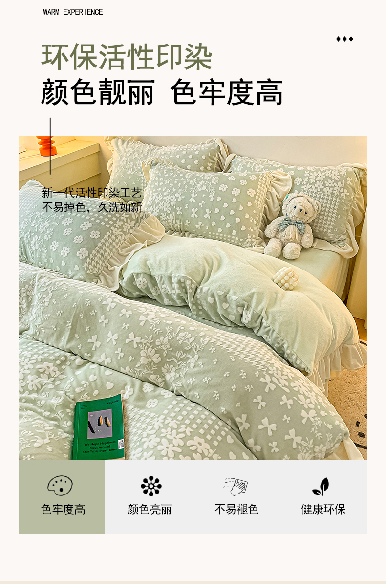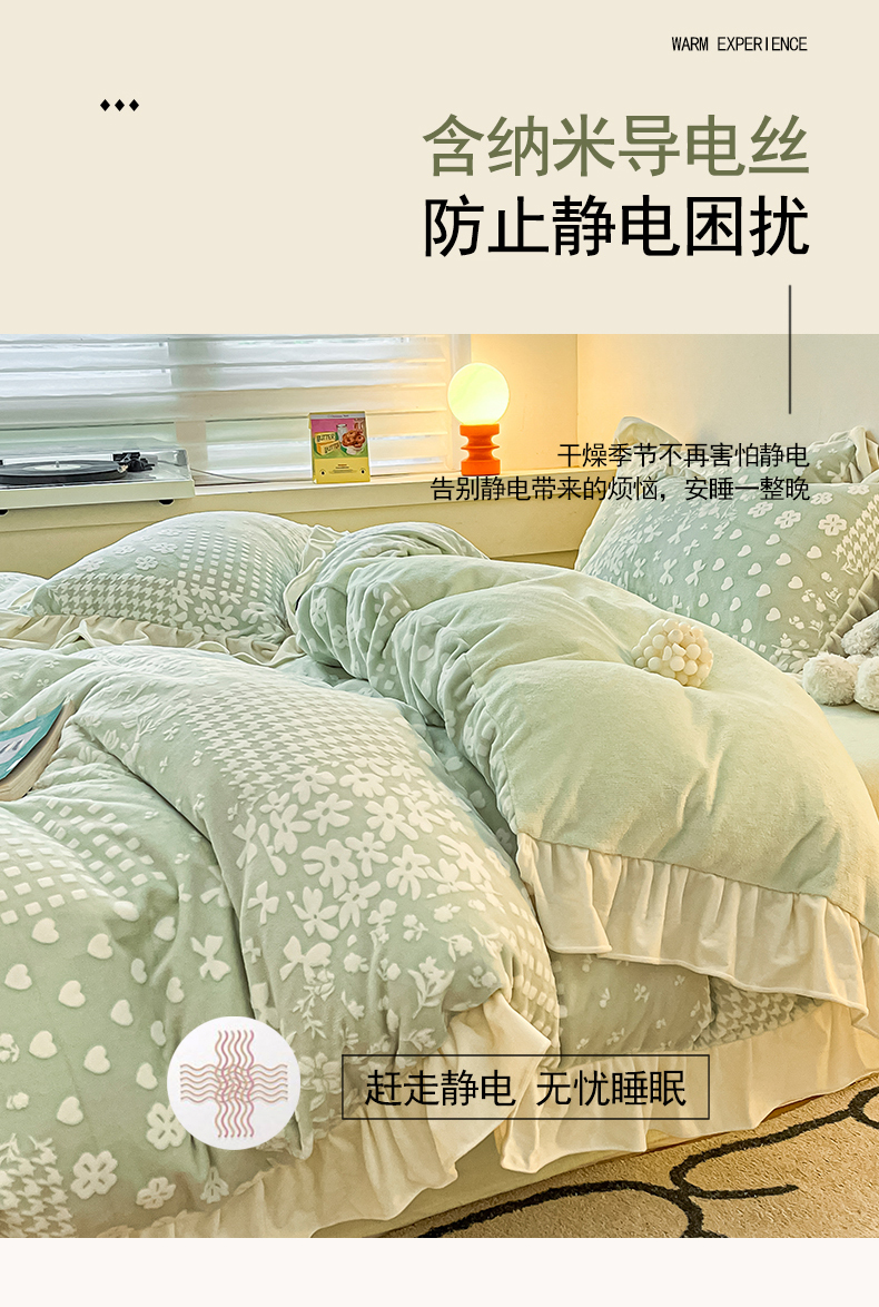 当前位置: 91家纺网 > 商品网购 > 床品套件 > 四件套 > 牛奶绒四件套 > 琪格格纺织 2025新款全消光小清新花边款雕花牛奶绒四件套 雕花绒花边-阿芙朵绿