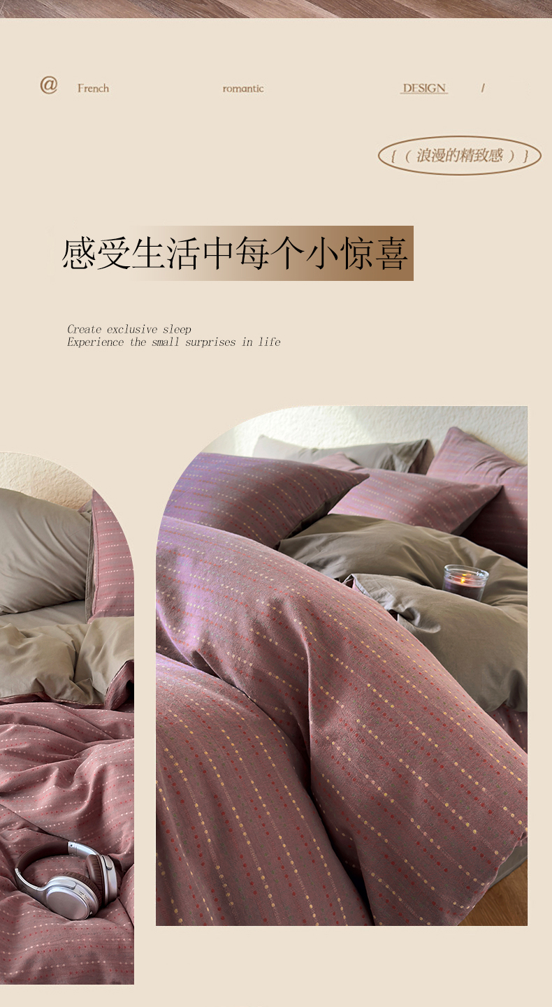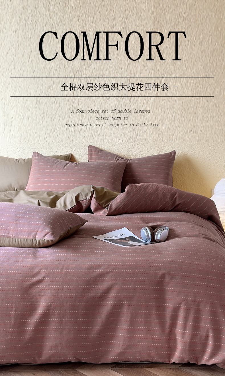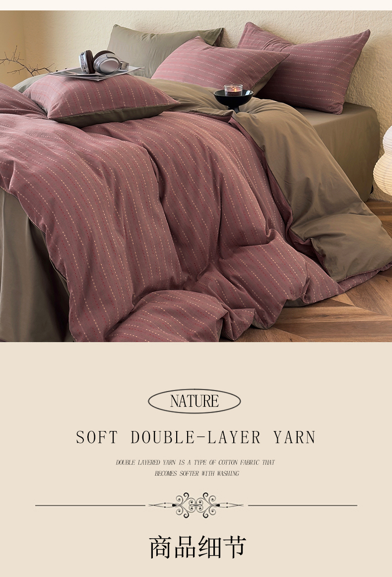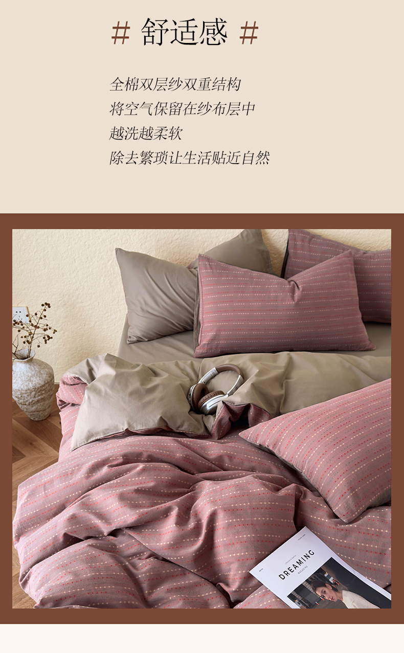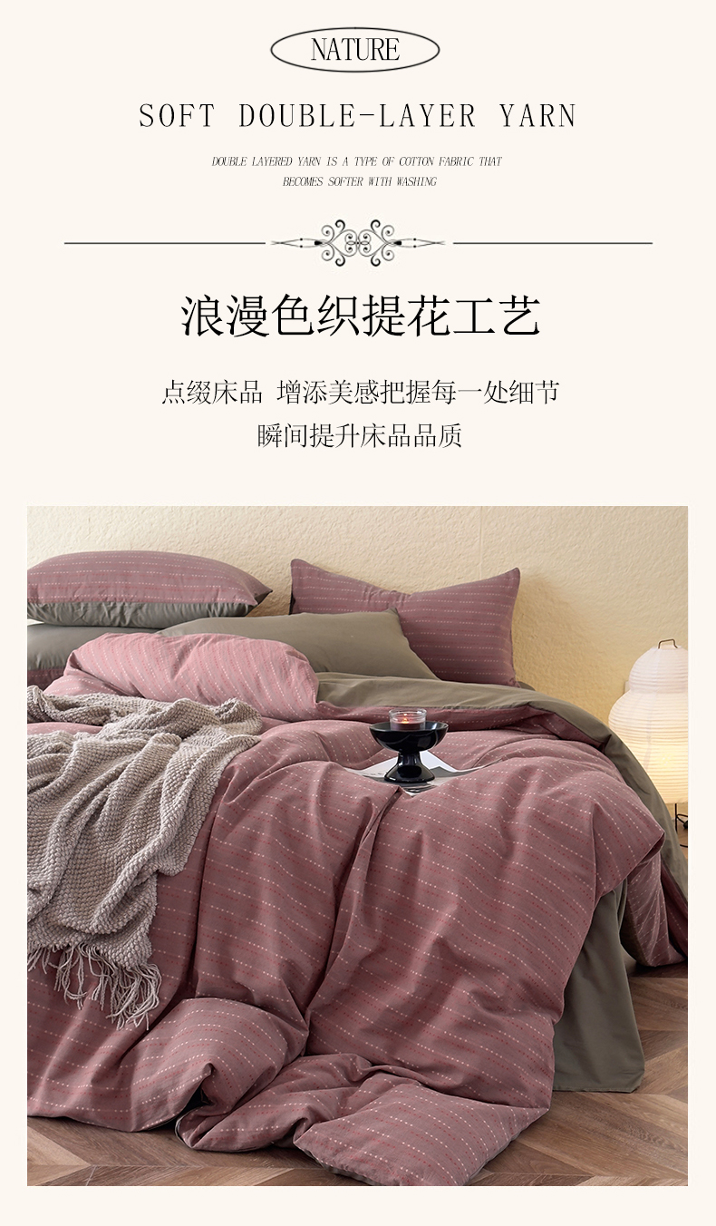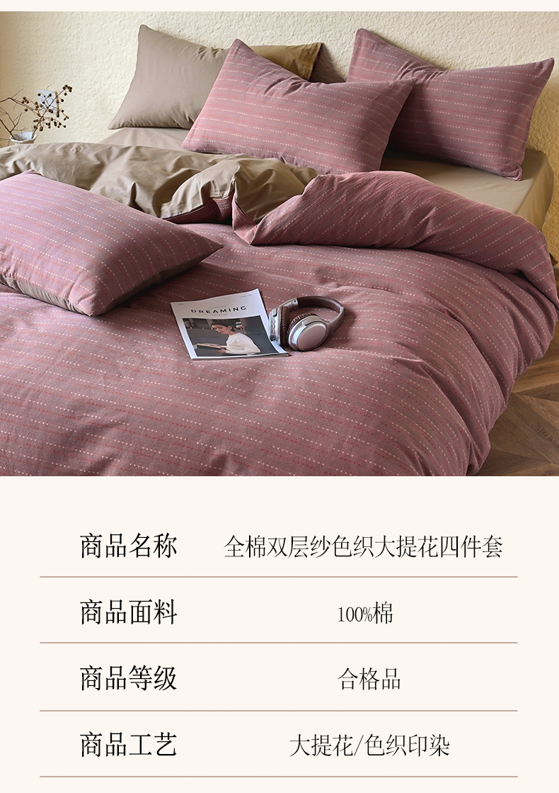 当前位置: 91家纺网 > 商品网购 > 床品套件 > 四件套 > 双层纱四件套 > 琪格格纺织 2025新款全棉纯棉双层纱提花四件套 双层纱-时光里-豆沙
