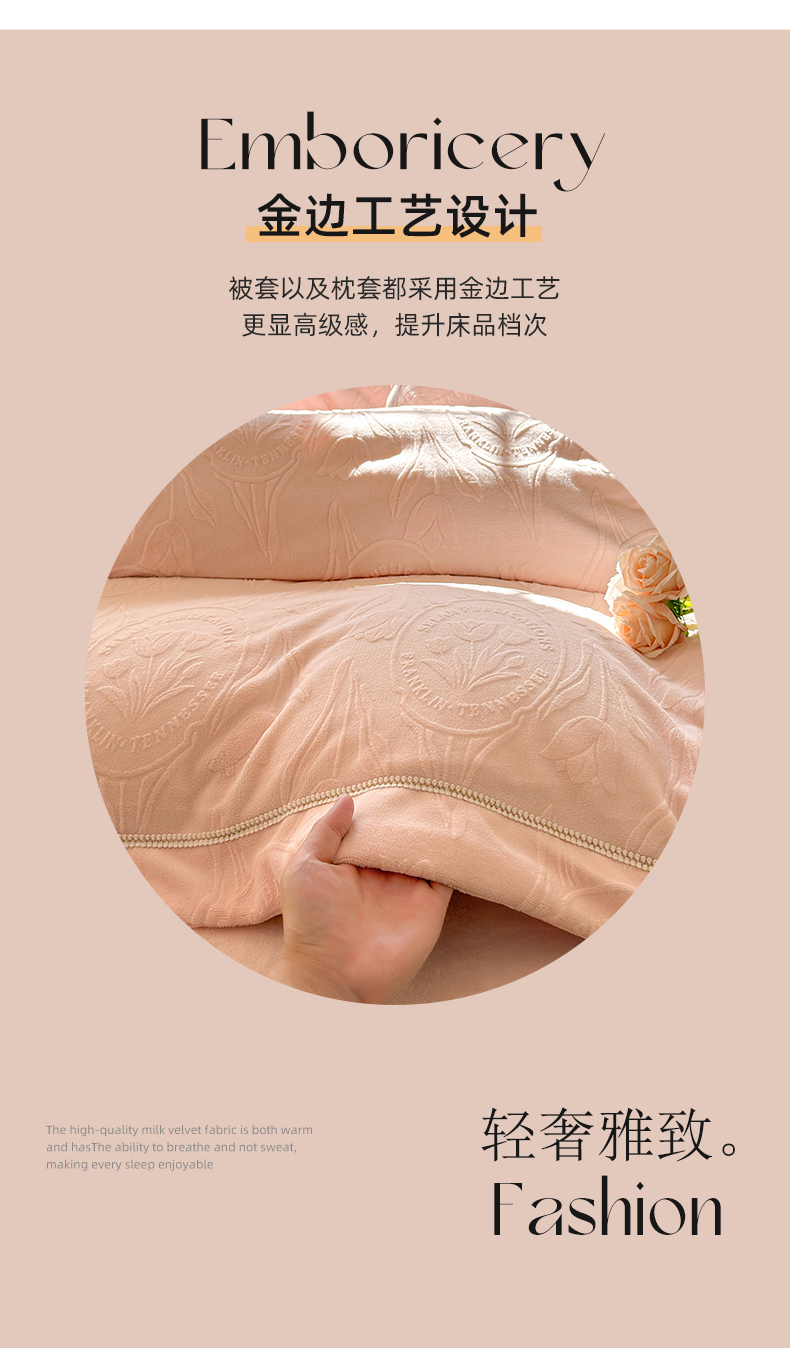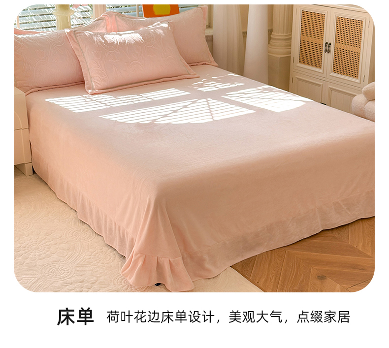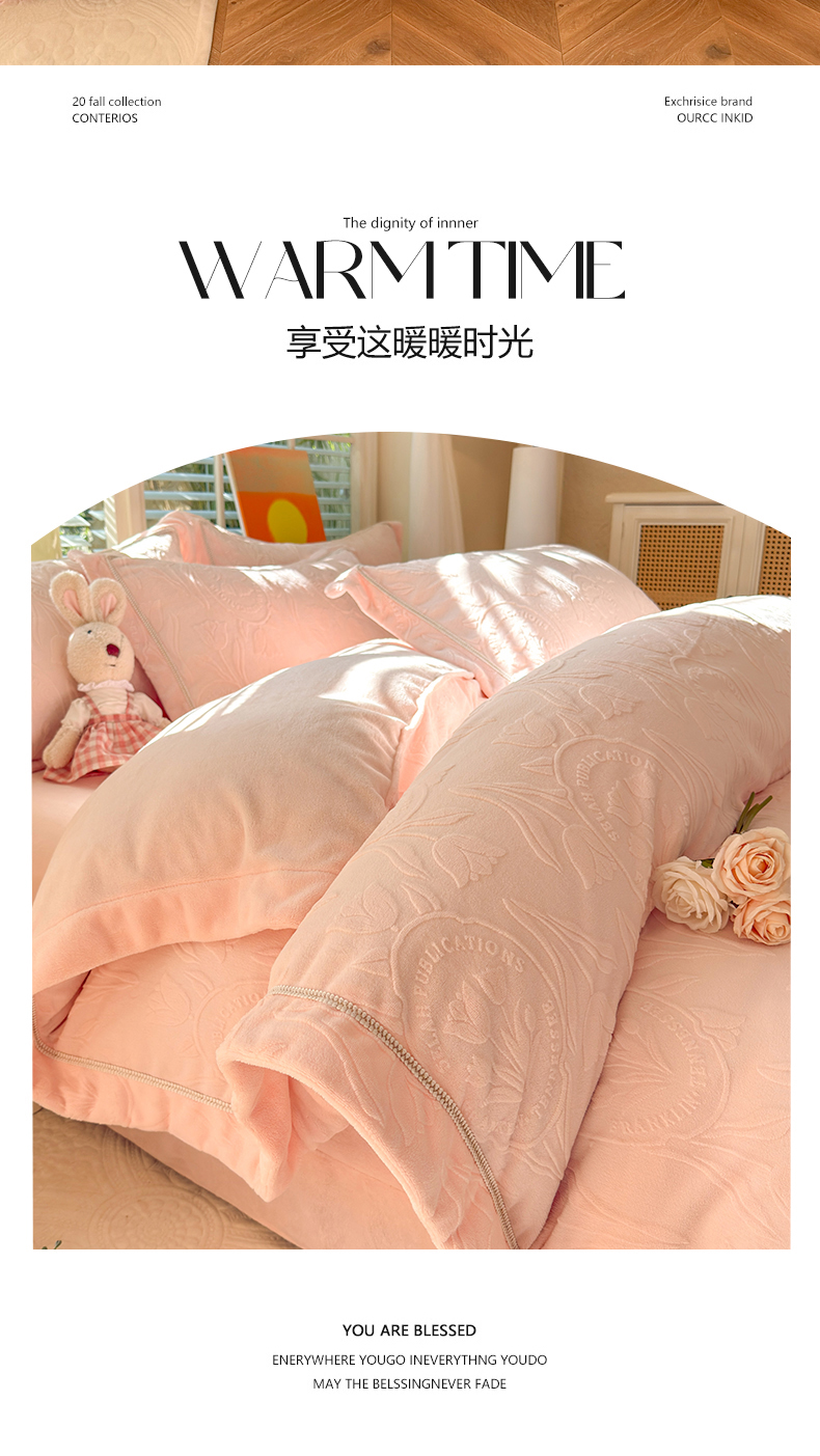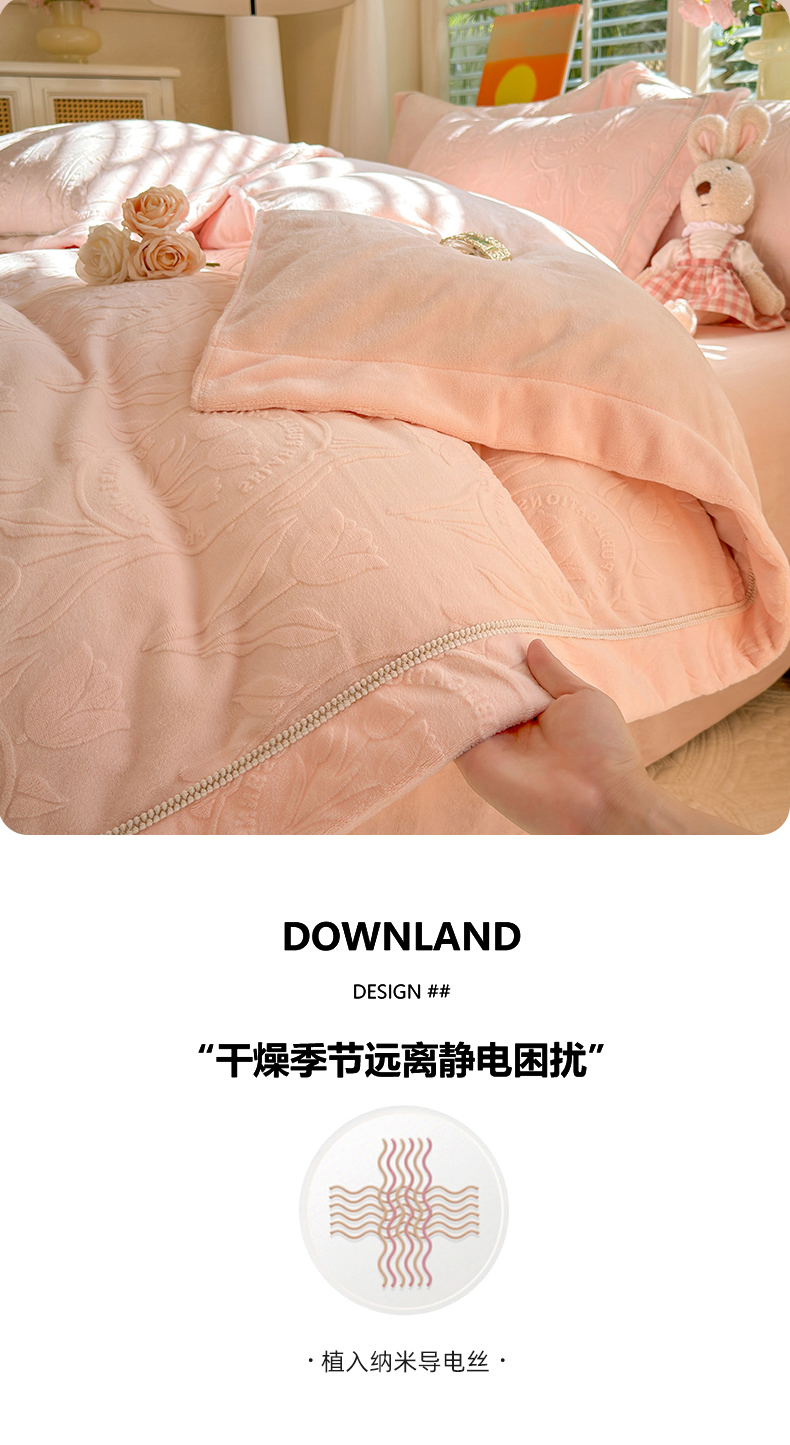 商品名称:艾唯希家纺 2025新款全消光雕花绒织带款四件套牛奶绒-雕花织带系列 郁金香-粉