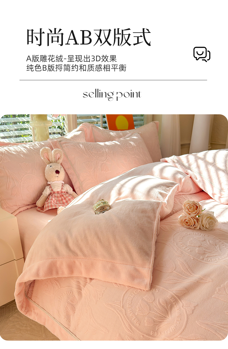 (总)艾唯希家纺 2025新款小兔毛全消光牛奶绒工艺四件套-绒樱桃系列,绒樱桃-粉,绒樱桃-驼