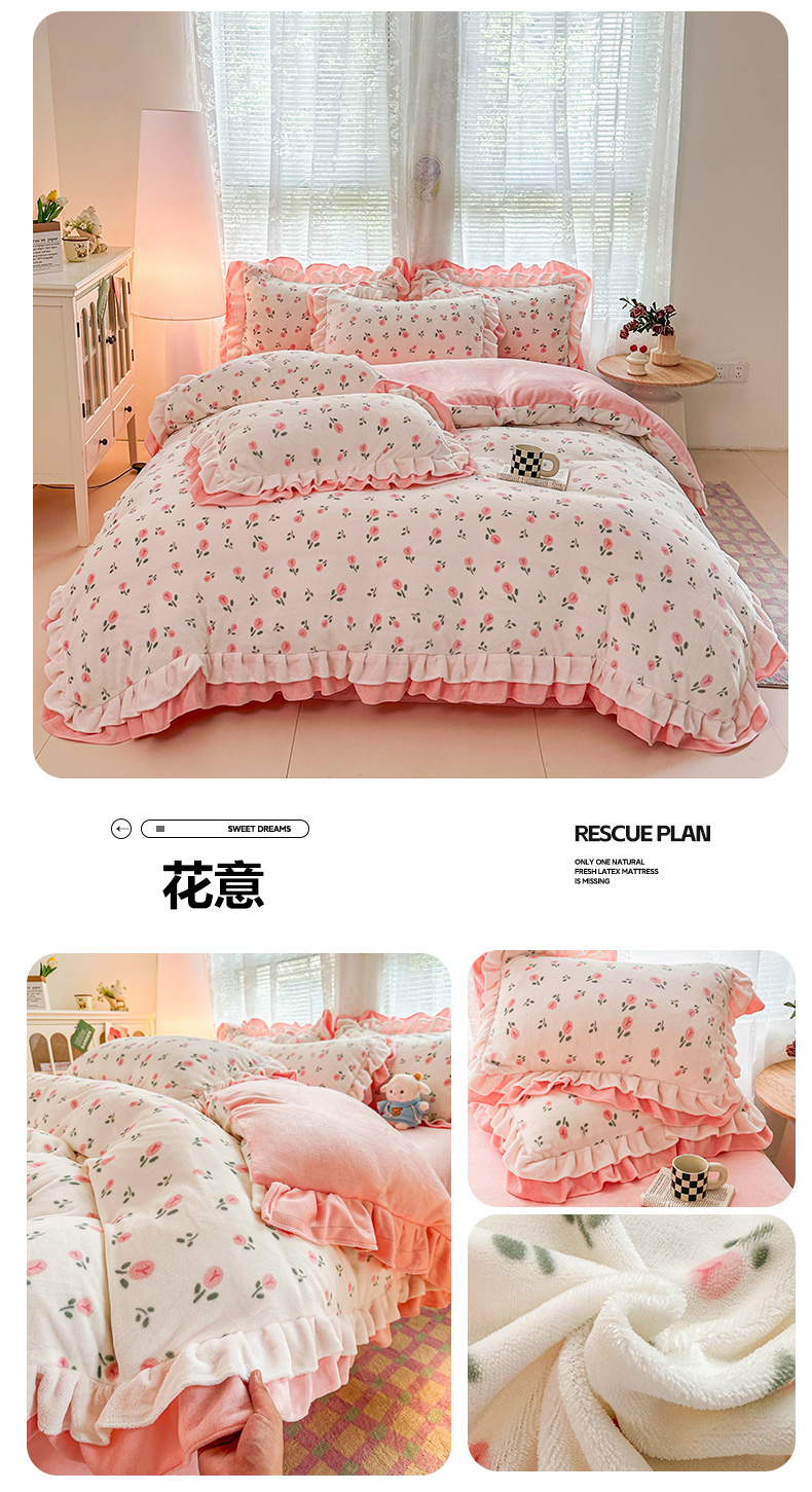 当前位置: 91家纺网 > 商品网购 > 床品套件 > 四件套 > 牛奶绒四件套 > 安哆啦家纺 2025新款小清新双层花边款高克重牛奶绒四件套 小草莓