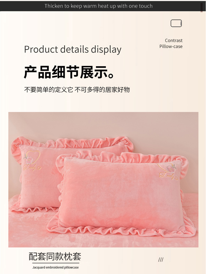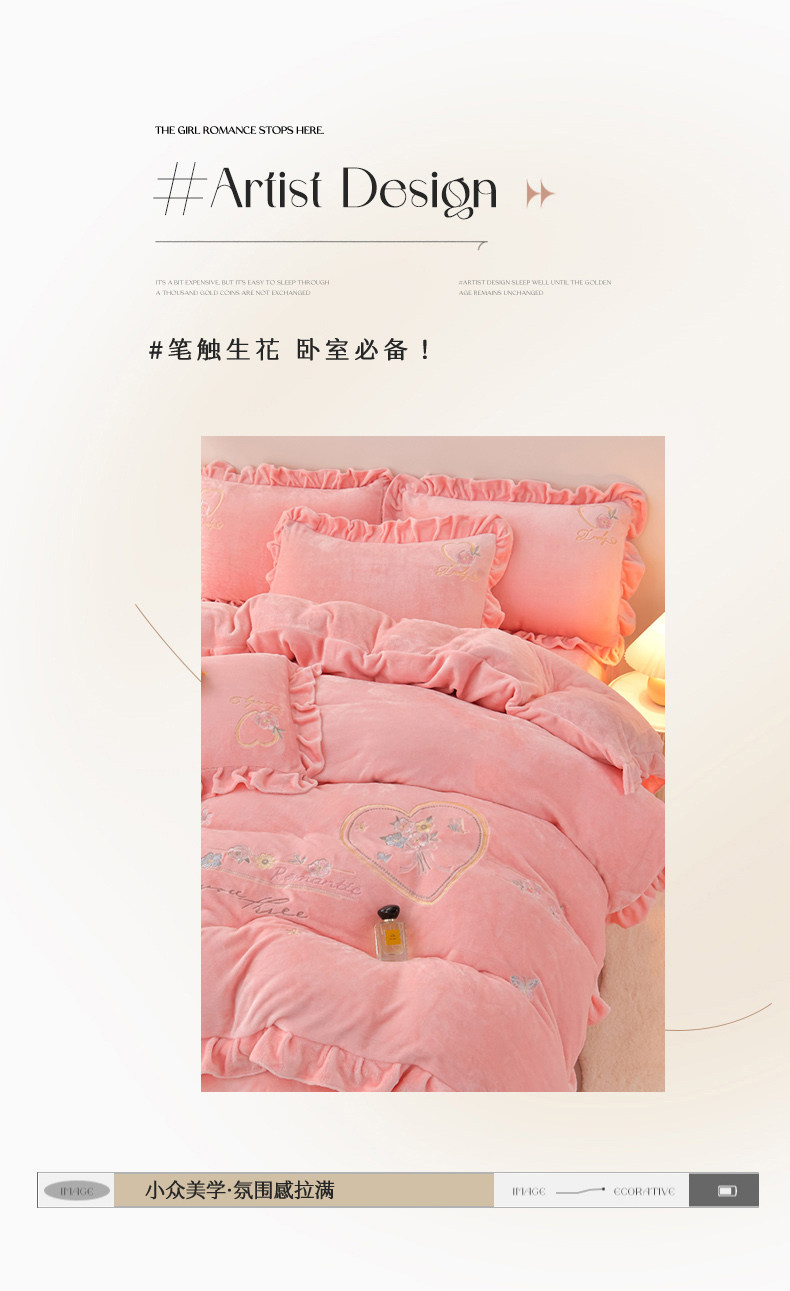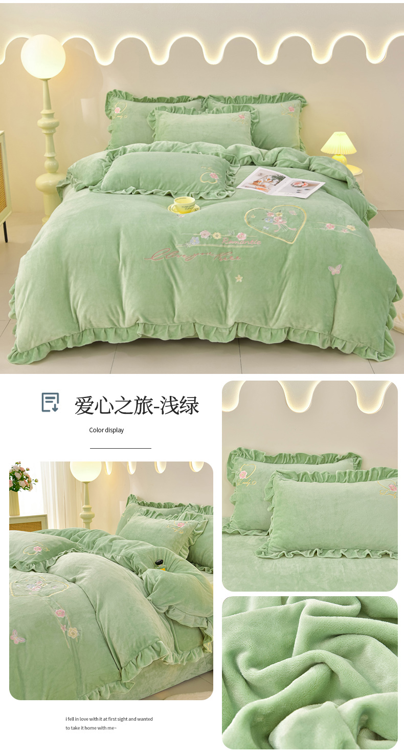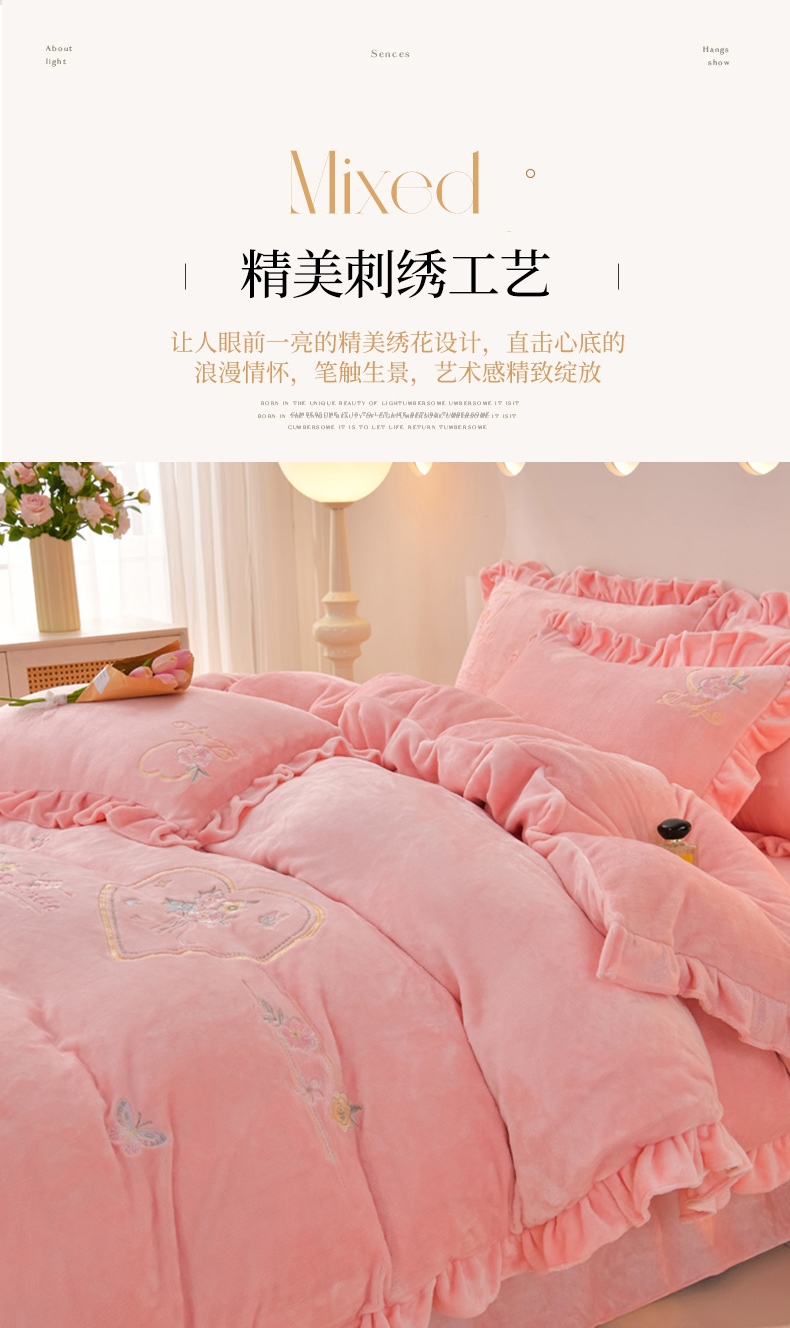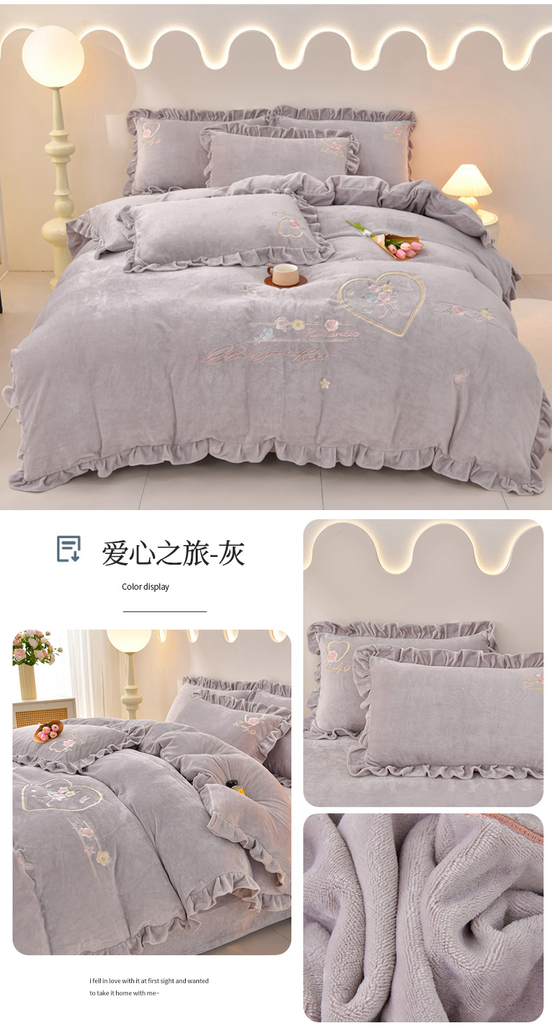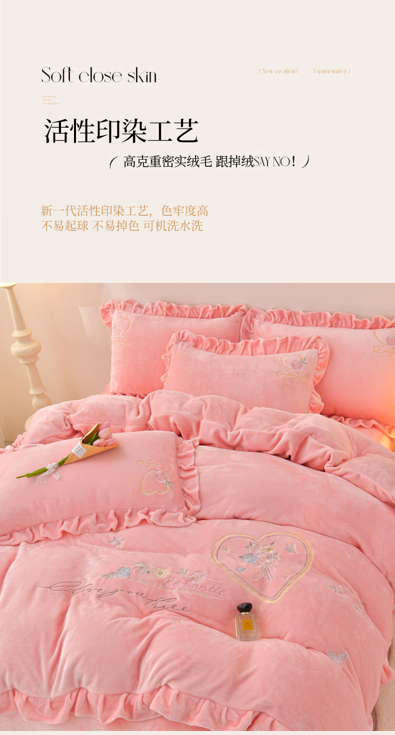 商品名称:畅畅家纺 2025新款亲肤舒适冬季刺绣花边保暖牛奶绒四件套-爱心之旅 爱心之旅-浅粉