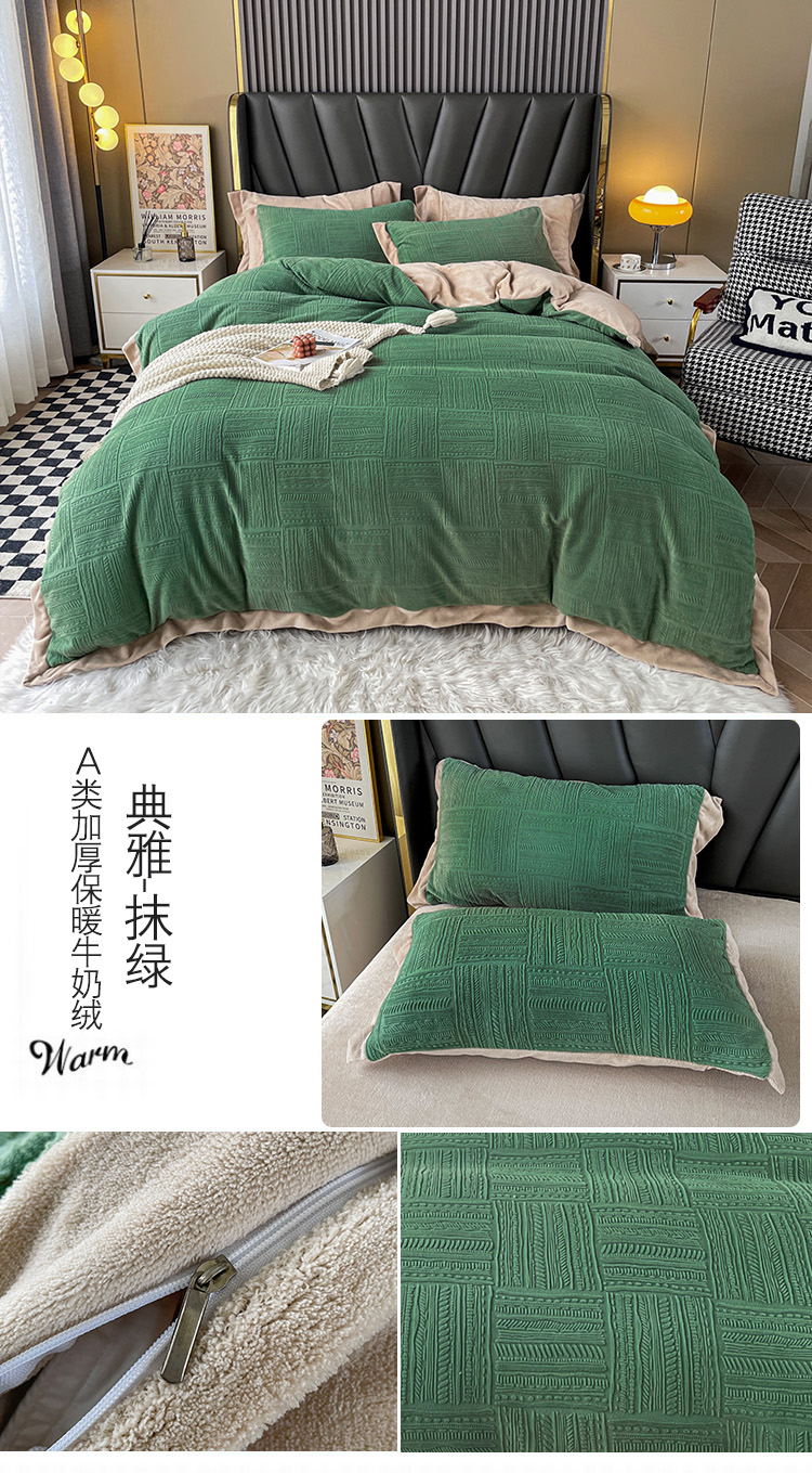 (总)2024新款ins风小红书推荐高克重纯色双拼牛奶绒四件套,莓莓生椰,抹茶芝士,奶白豆沙,奶白拿铁,浅蓝芝士,炭烤起司,芋泥奶紫,月光雾蓝