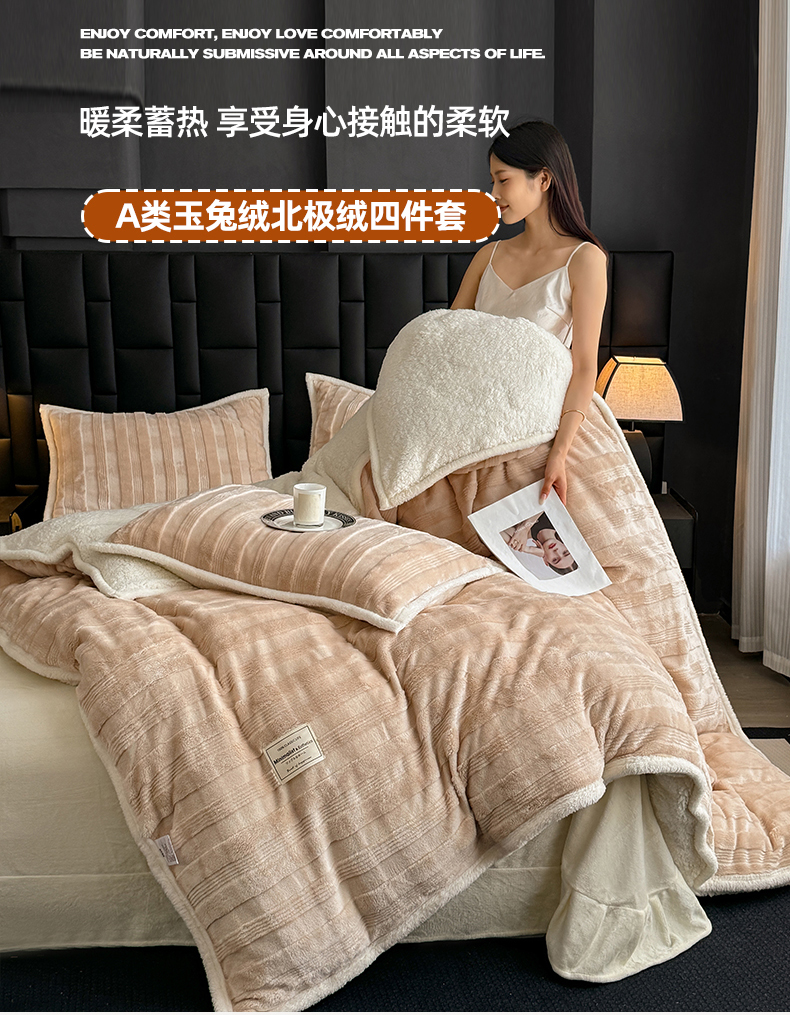 当前位置: 91家纺网 > 商品网购 > 床品套件 > 四件套 > 其它四件套 > 青竹苑 2025新款A类玉兔绒北极绒纯色四件套 玉兔咖【双面加绒】