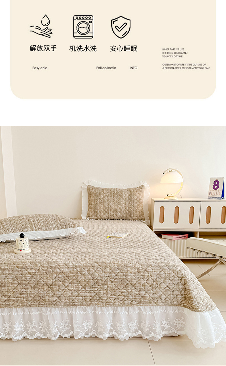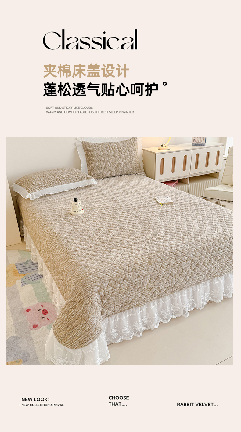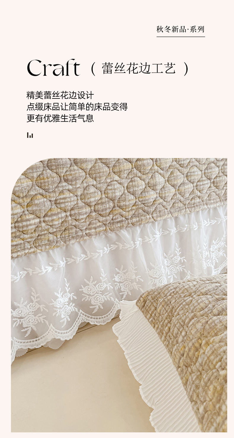 商品名称:冬然家纺 2025新款高克重牛奶绒蕾丝花边床盖系列 肌理纹-咖