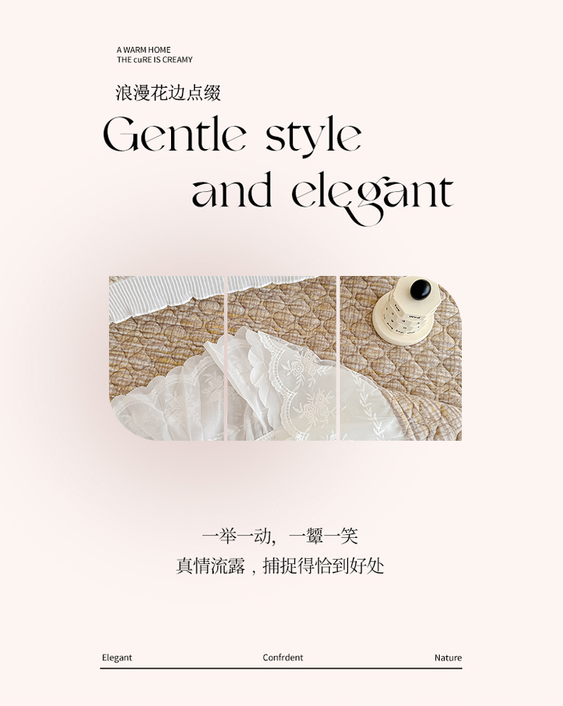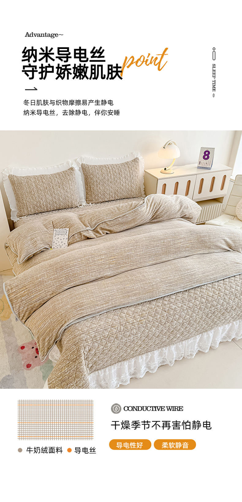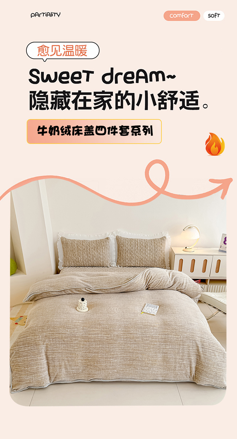 商品名称:冬然家纺 2025新款高克重牛奶绒蕾丝花边床盖系列 肌理纹-咖