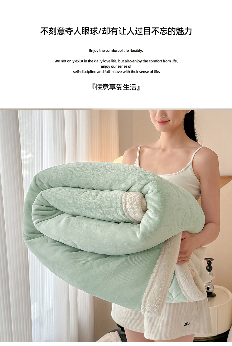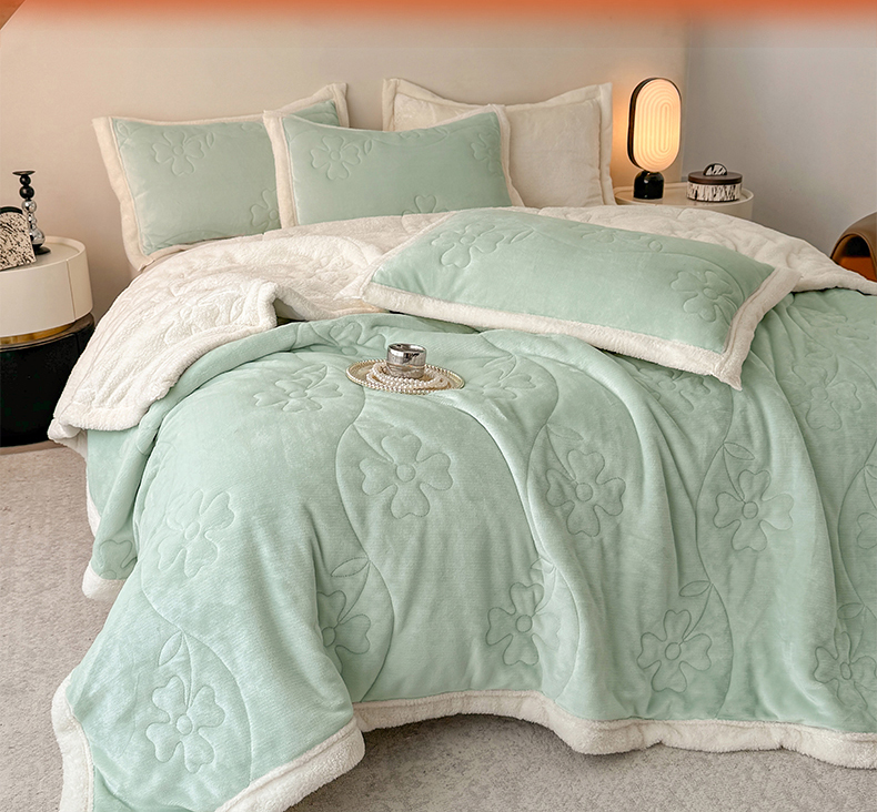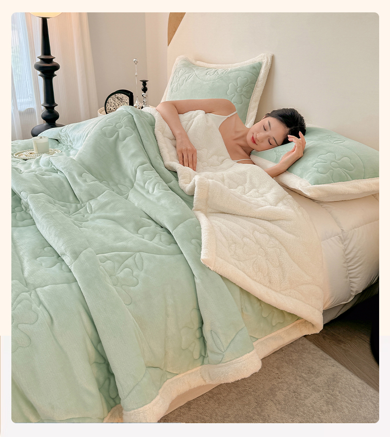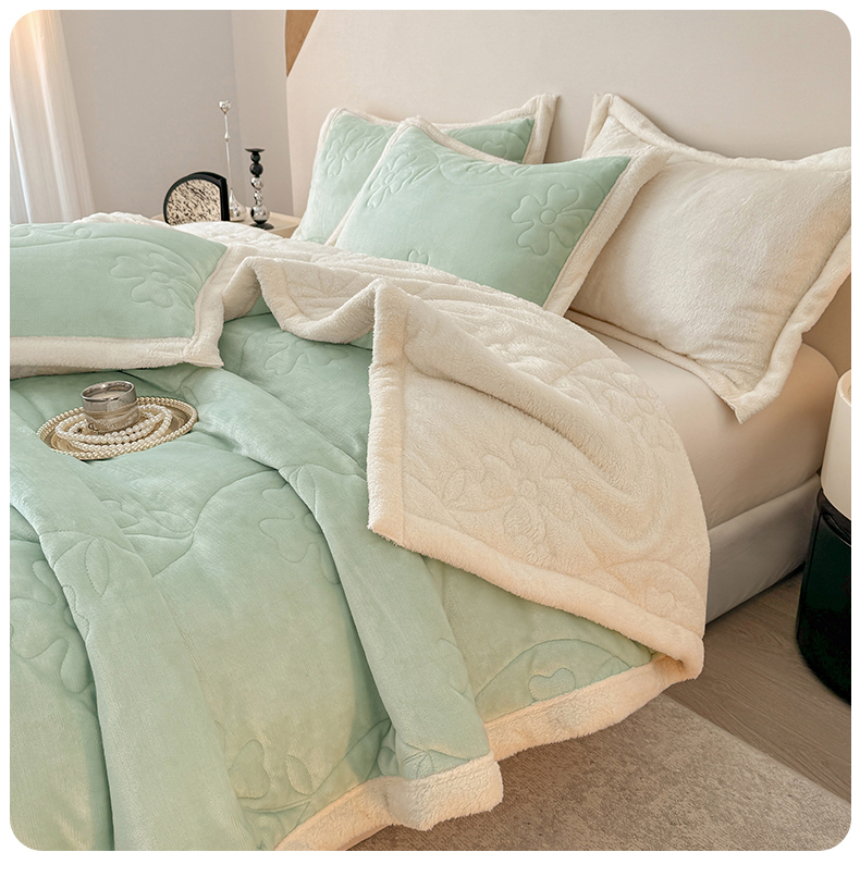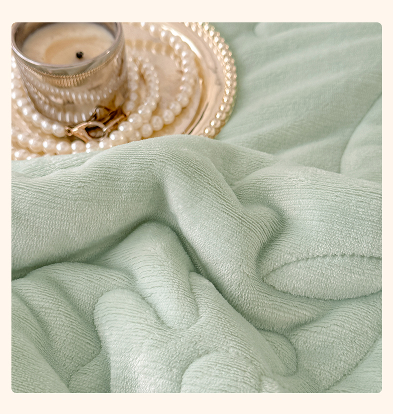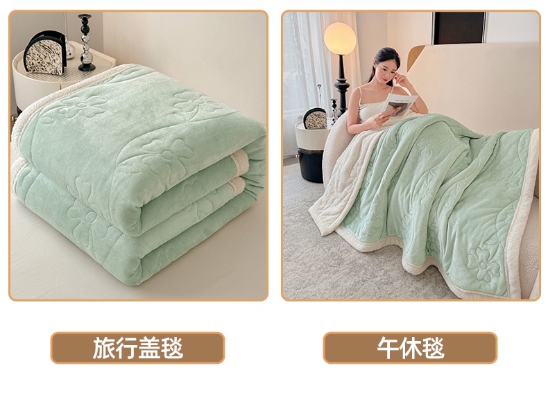 商品名称:青竹苑 2025新款A类婴儿绒北极绒羽丝棉三层夹棉盖毯多功能盖毯 翠绿