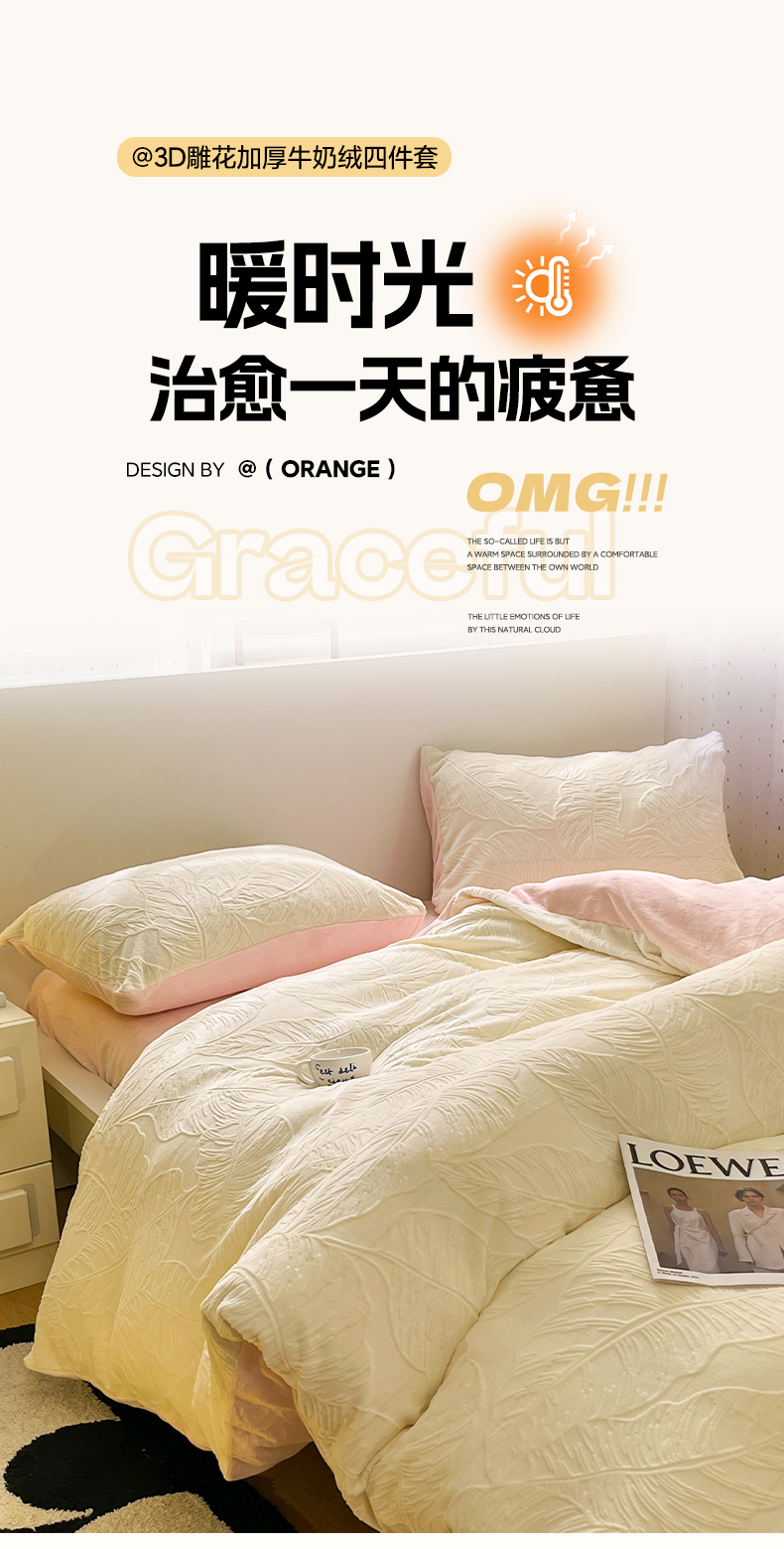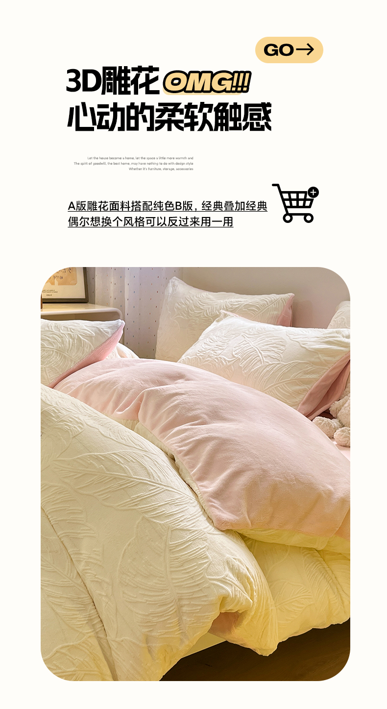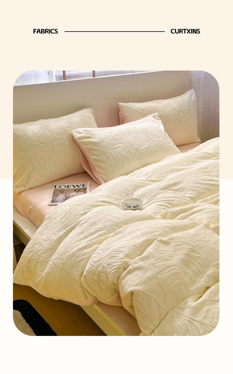 (总)如一 2025年3D立体雕花牛奶绒四件套,芭蕉叶-白咖,花漾-粉,编织纹-天蓝,繁花-粉,编织纹-白咖,缤纷-粉,编织纹-白橘,繁花-天蓝,花漾-黄,华夫格白,华夫格黄,肌理纹-杏,千鸟格粉,千鸟格灰,编织纹-粉,编织纹-灰,芭蕉叶蓝,编织纹-蓝灰