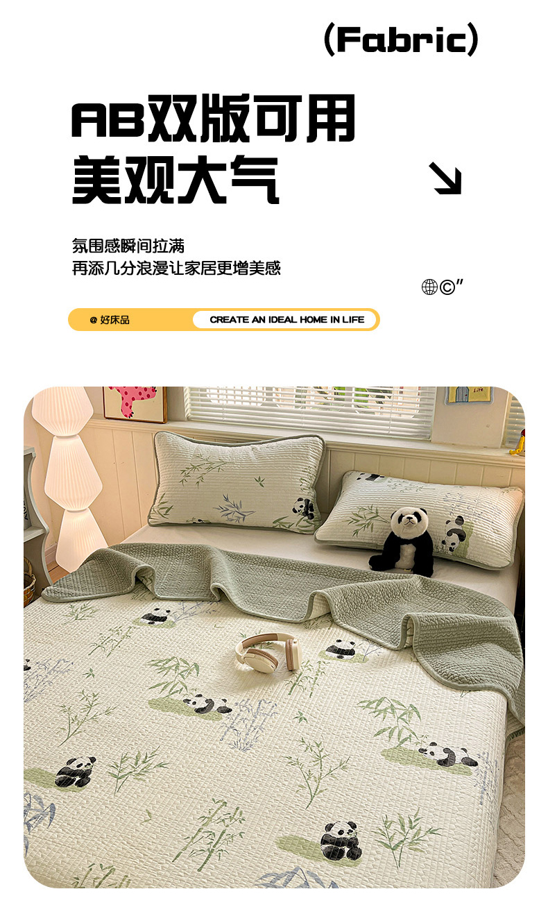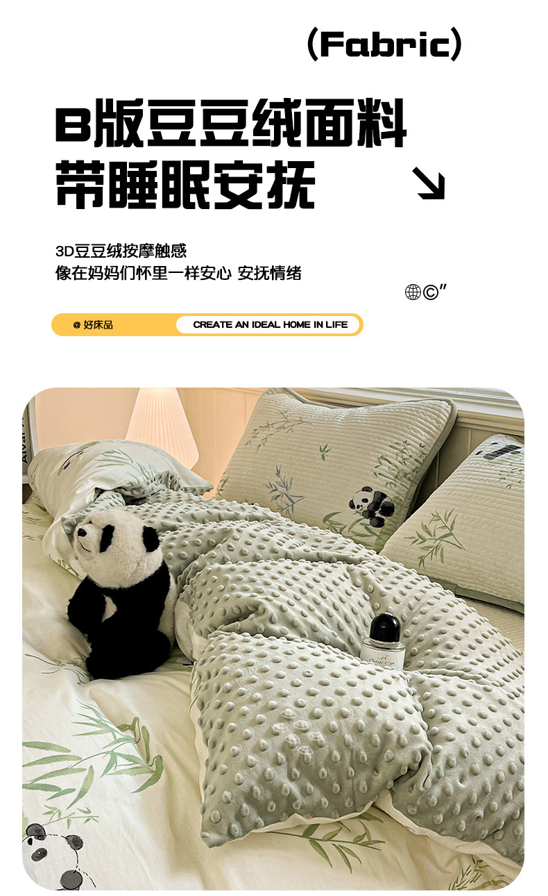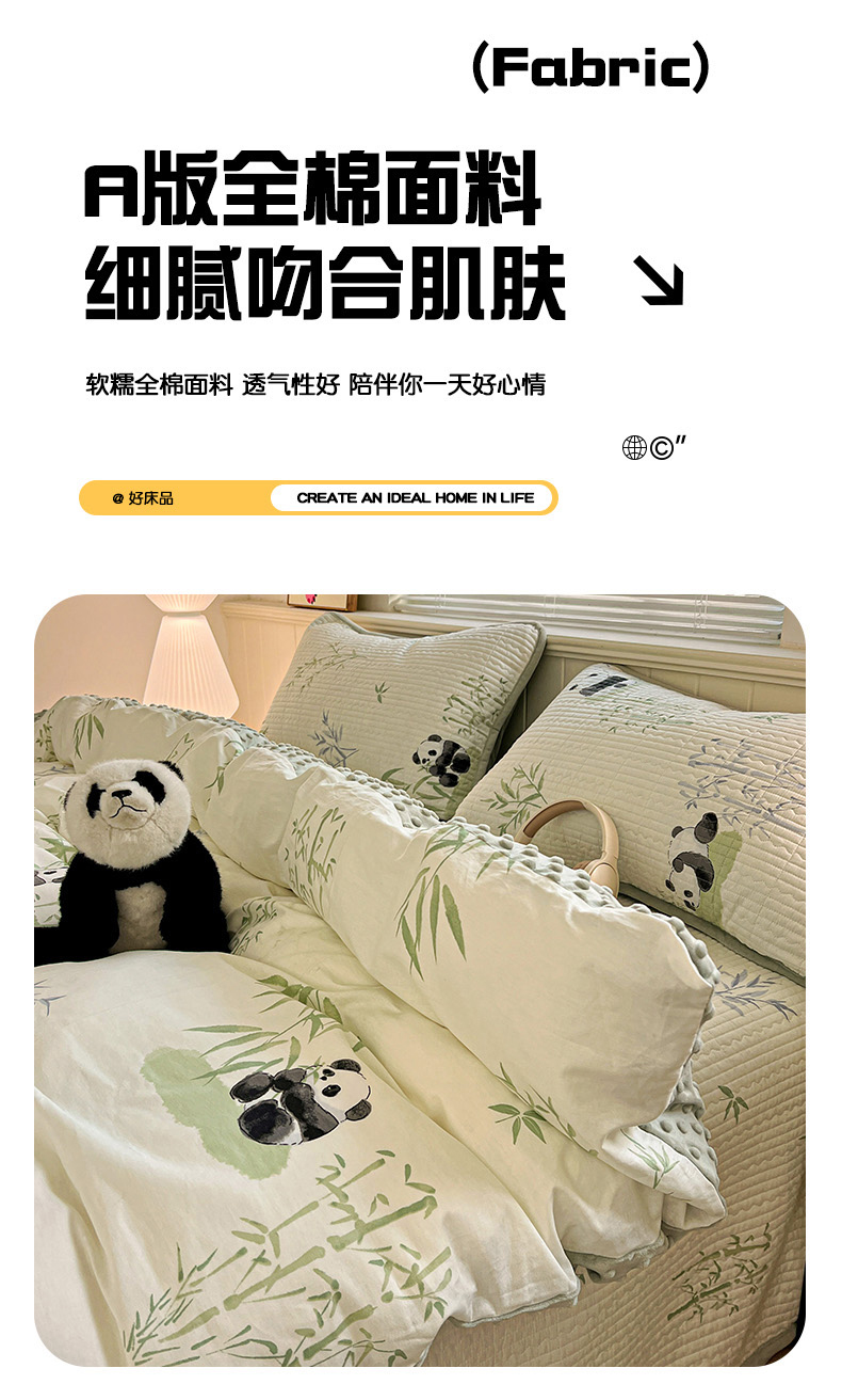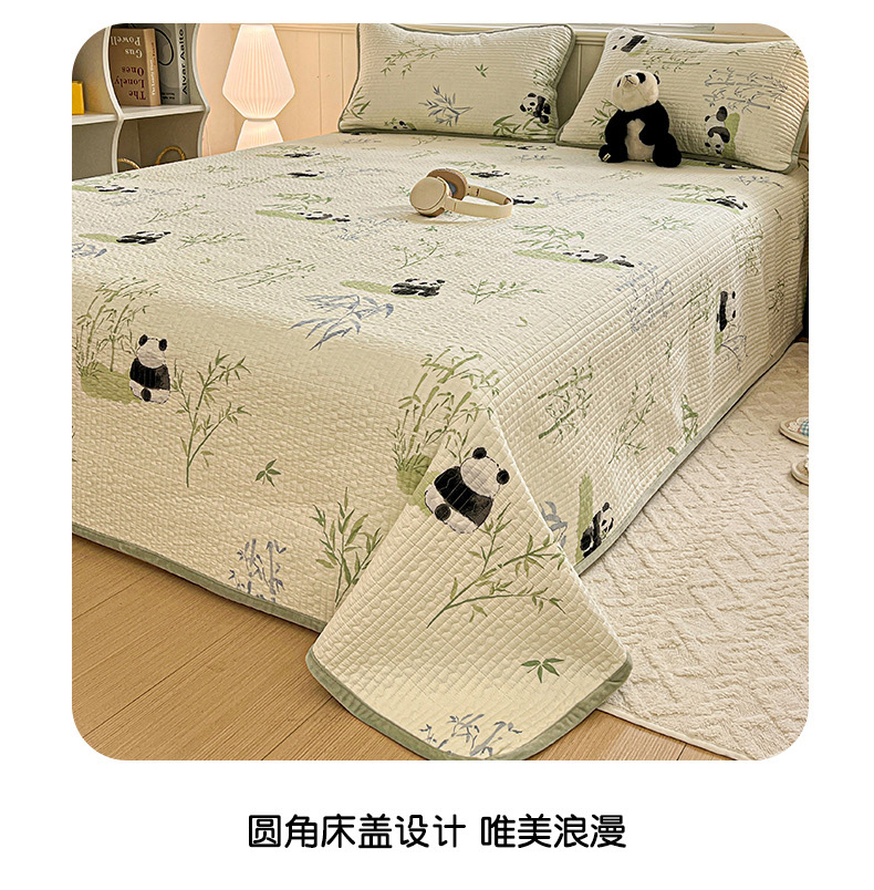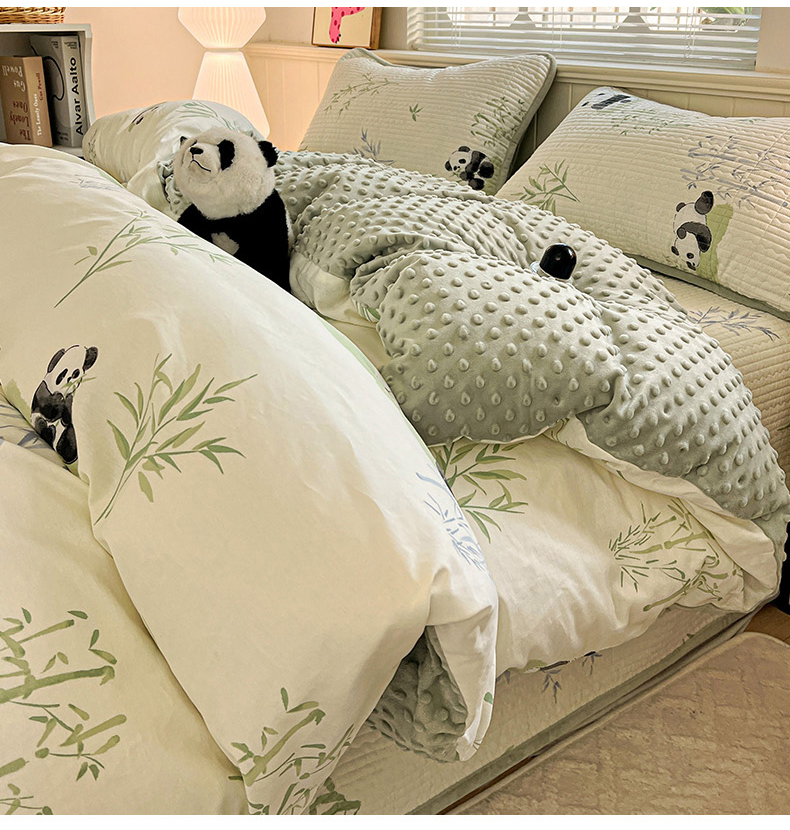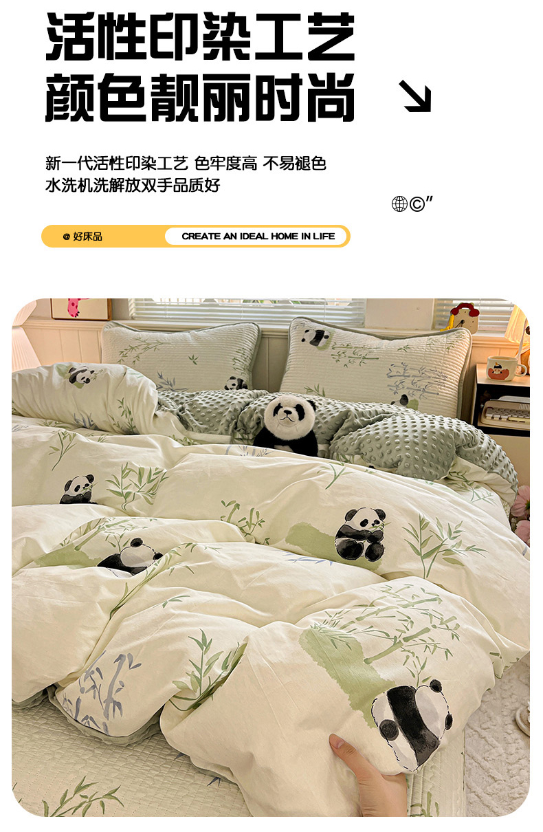 商品名称:漫时光 2025新款正面纯棉反面宝宝绒印花夹棉砂洗床盖四件套 小熊猫