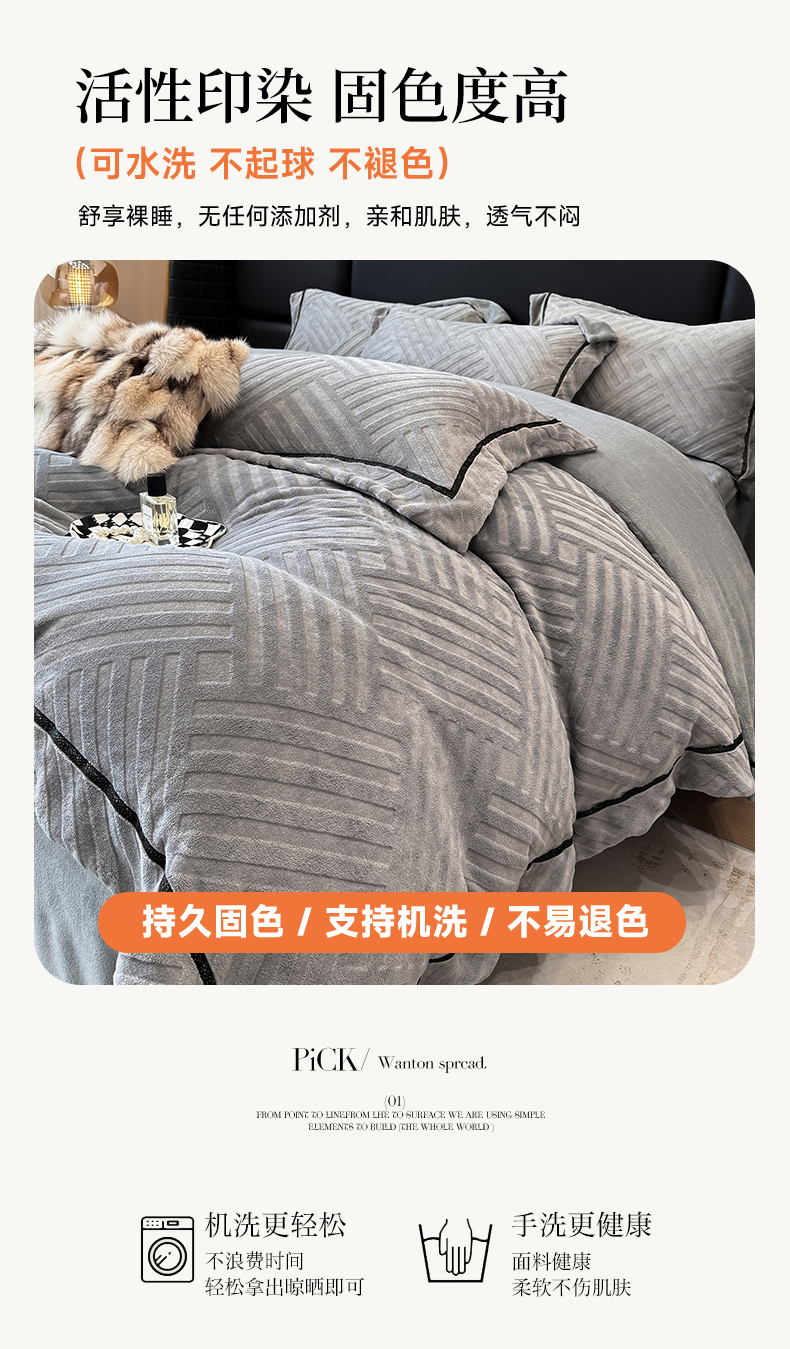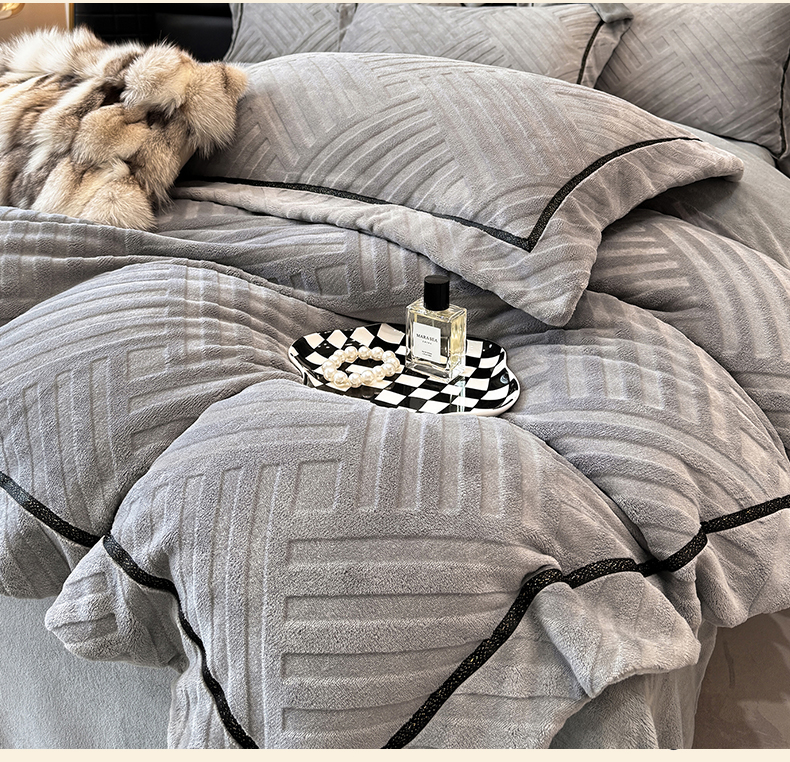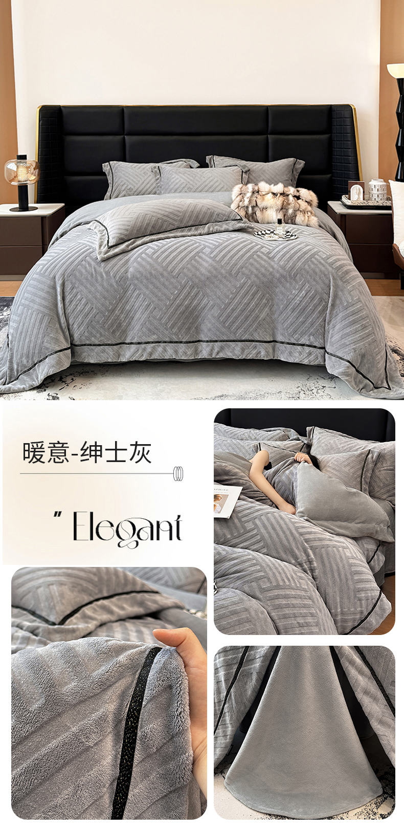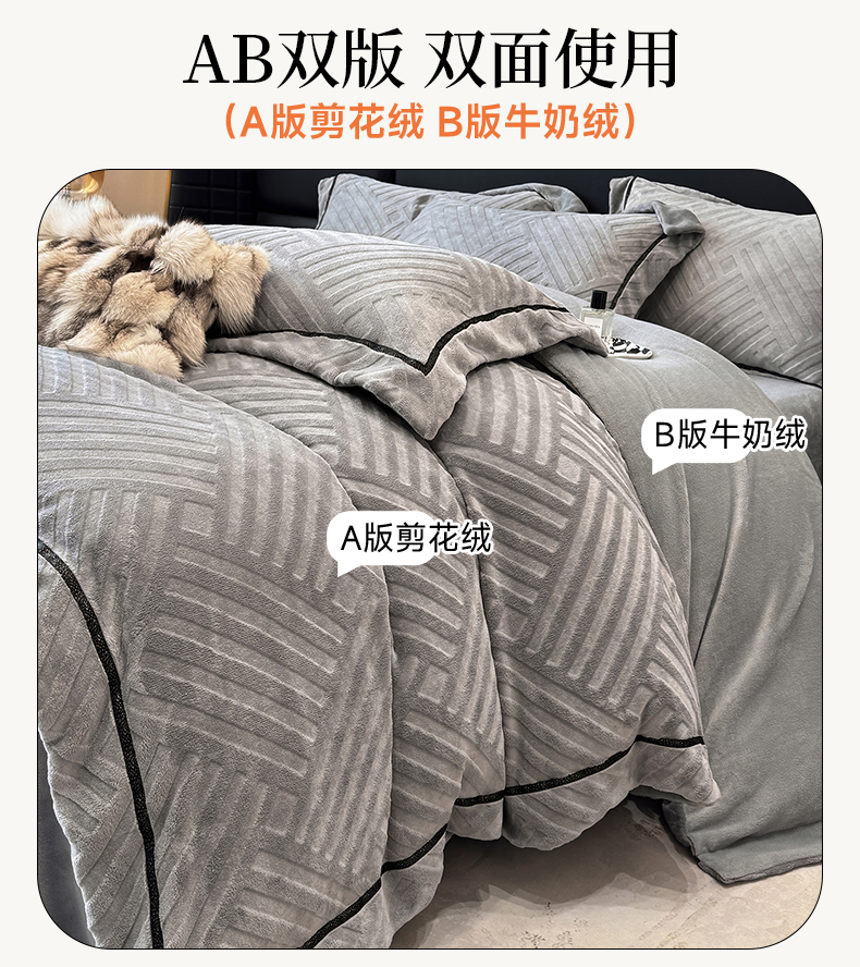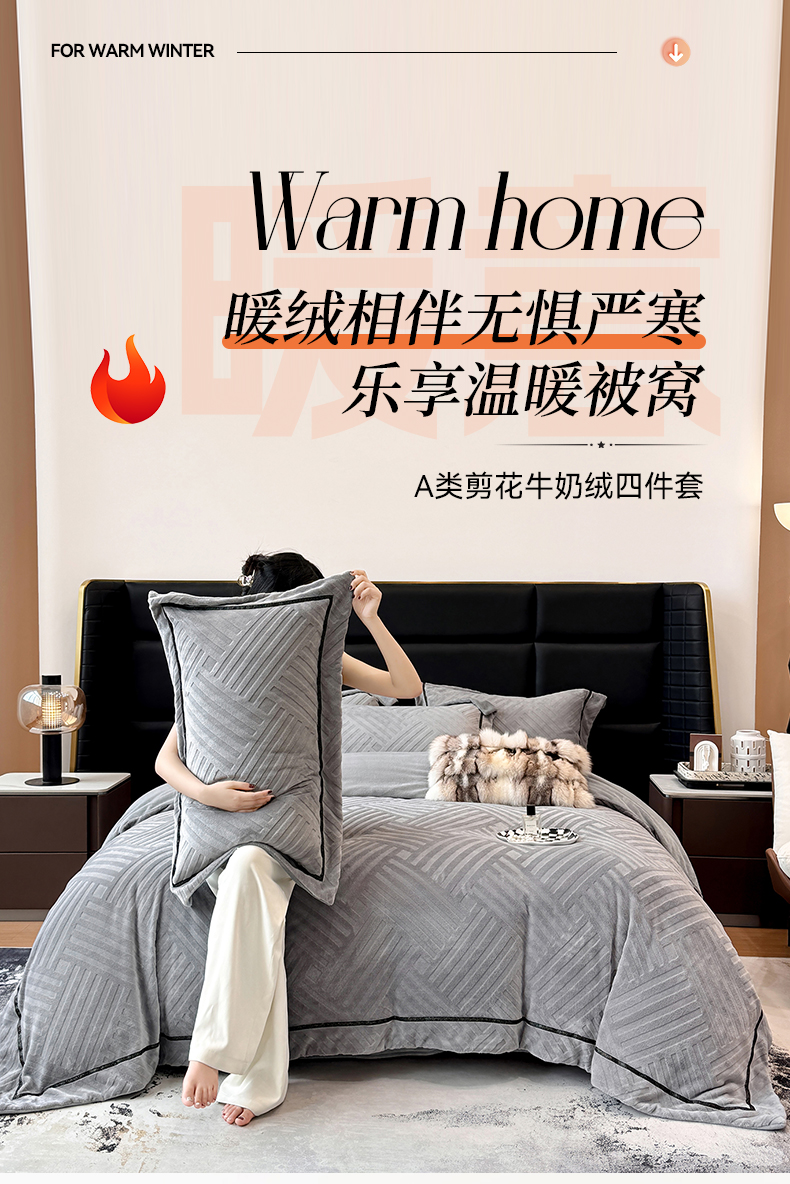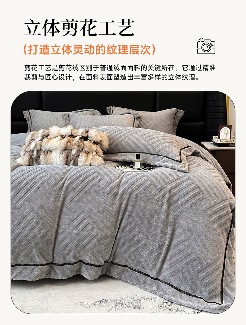 商品名称:家居1号家纺 2025新款230克全消光牛奶绒剪花四件套-暖意 暖意-绅士灰