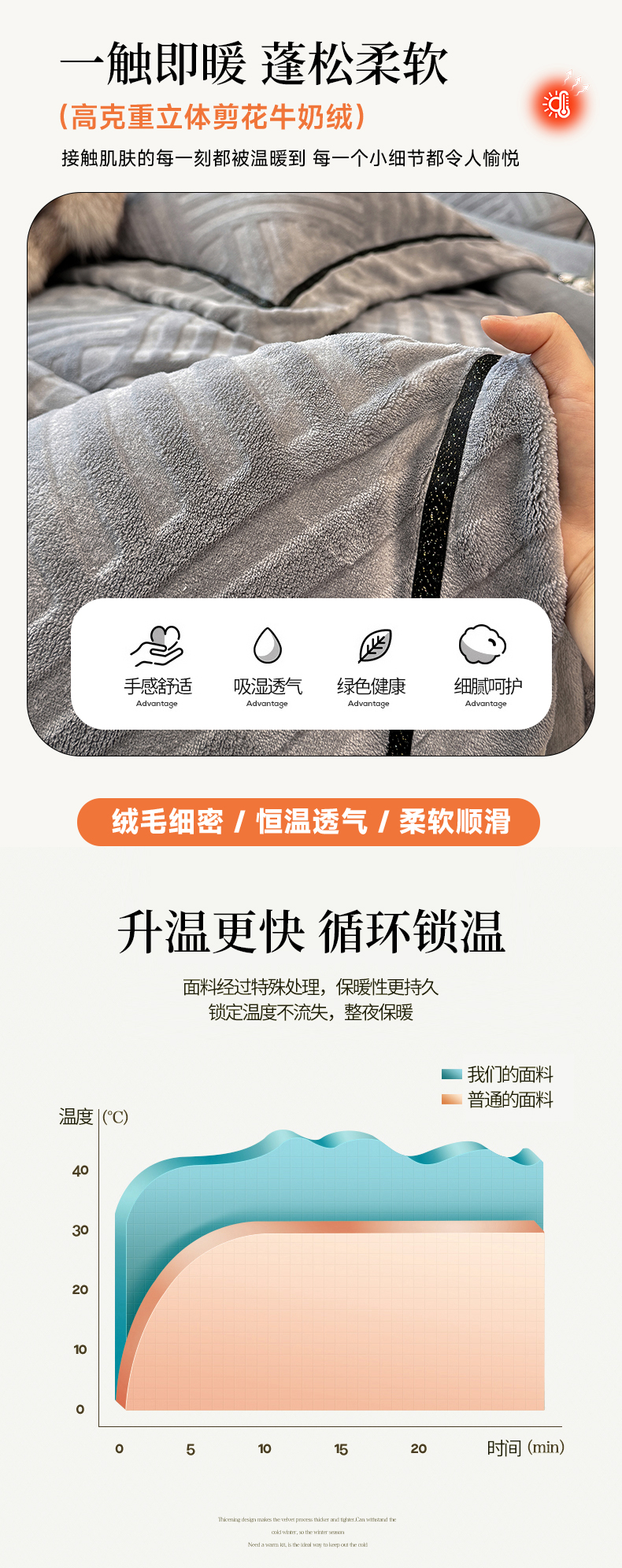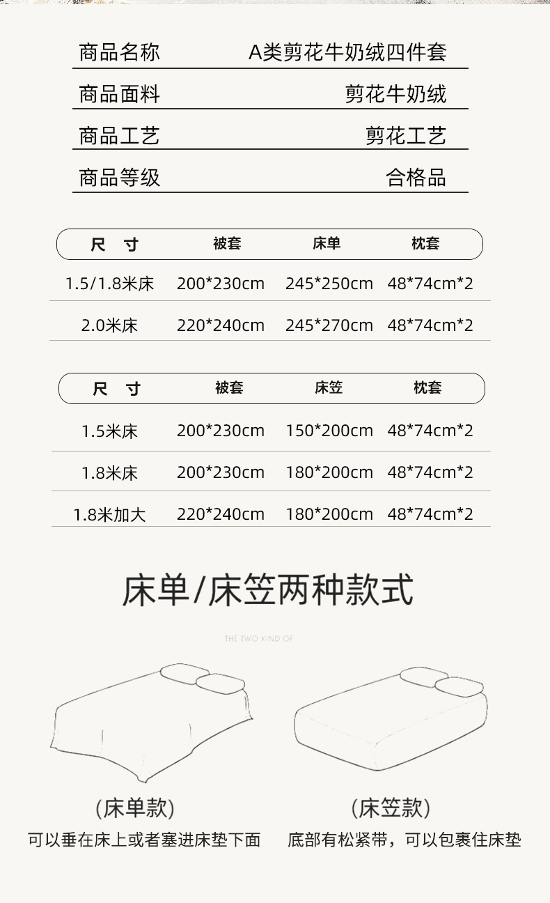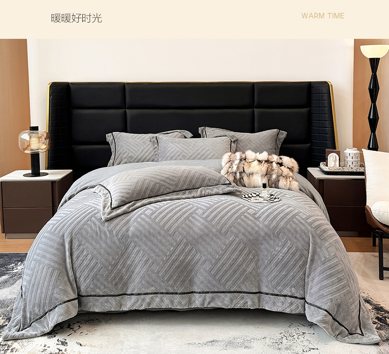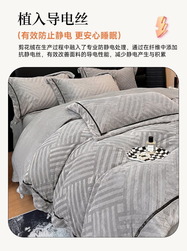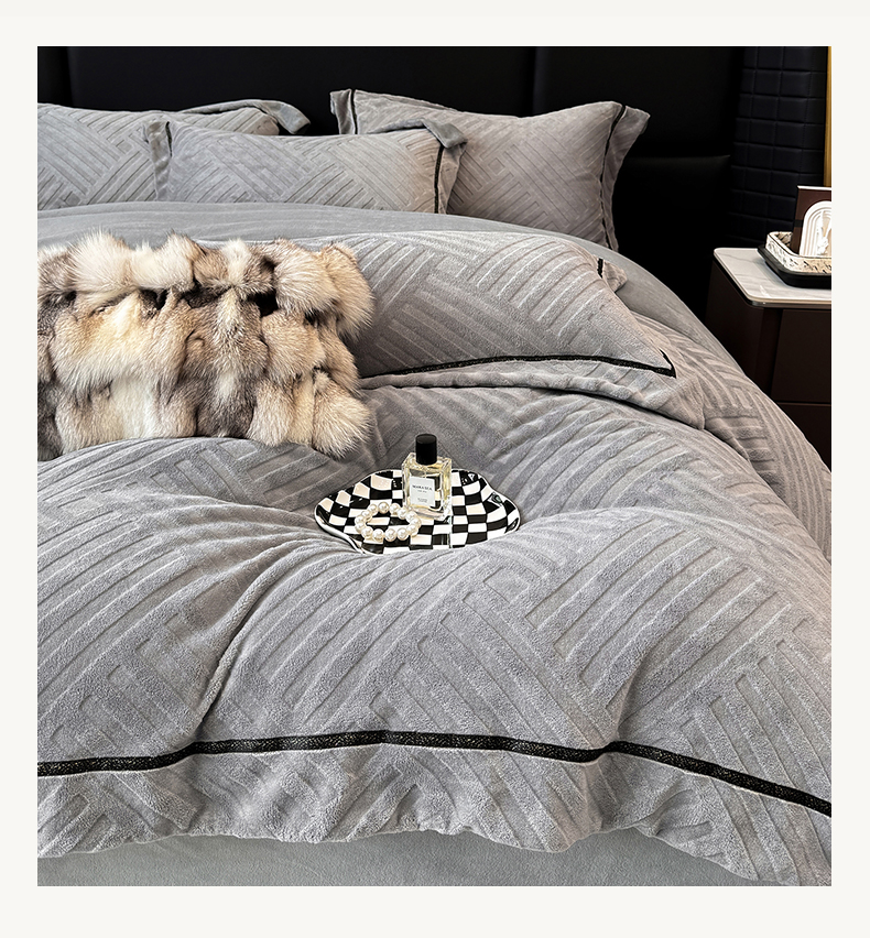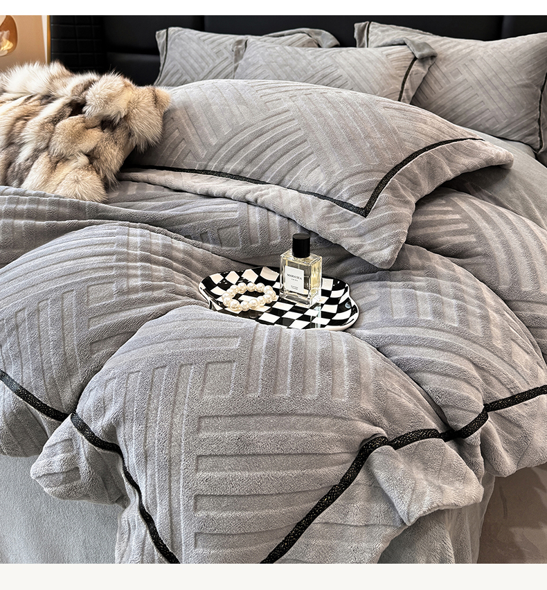 商品名称:家居1号家纺 2025新款230克全消光牛奶绒剪花四件套-暖意 暖意-绅士灰
