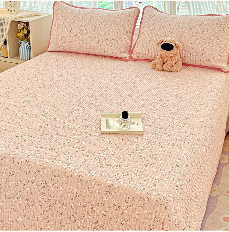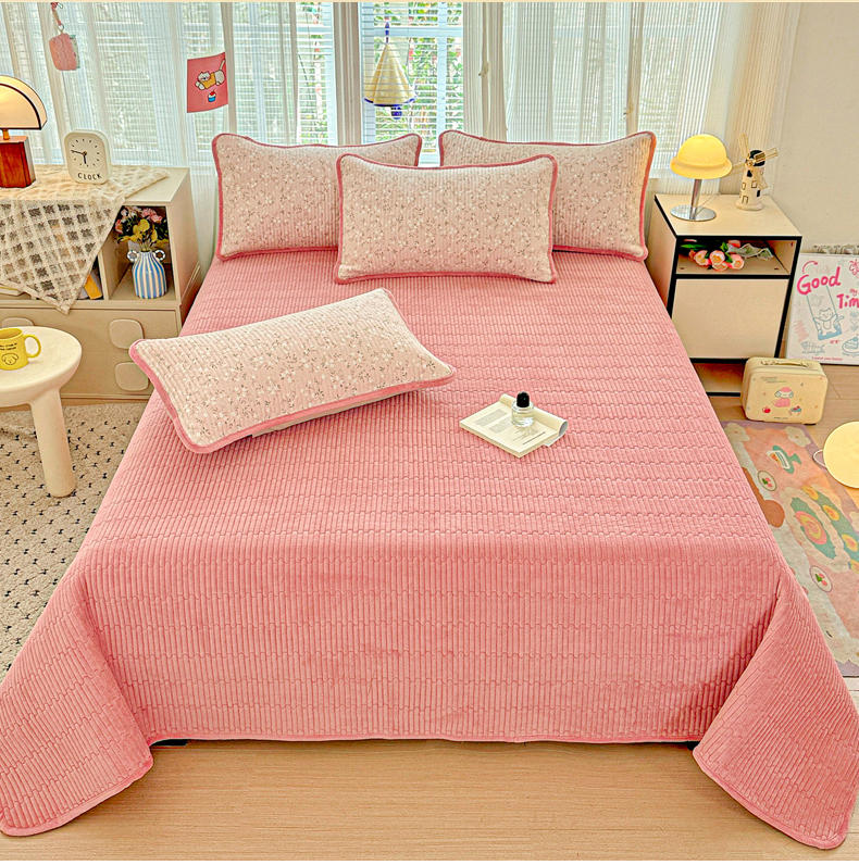 • 91家纺网 家纺一手货源 找家纺 恒尚居 2025新款全棉牛奶绒床盖四季可用纯棉夹棉床单床褥垫三件套-秋冬款系列一 樱花灿灿【A纯棉-B牛奶绒】